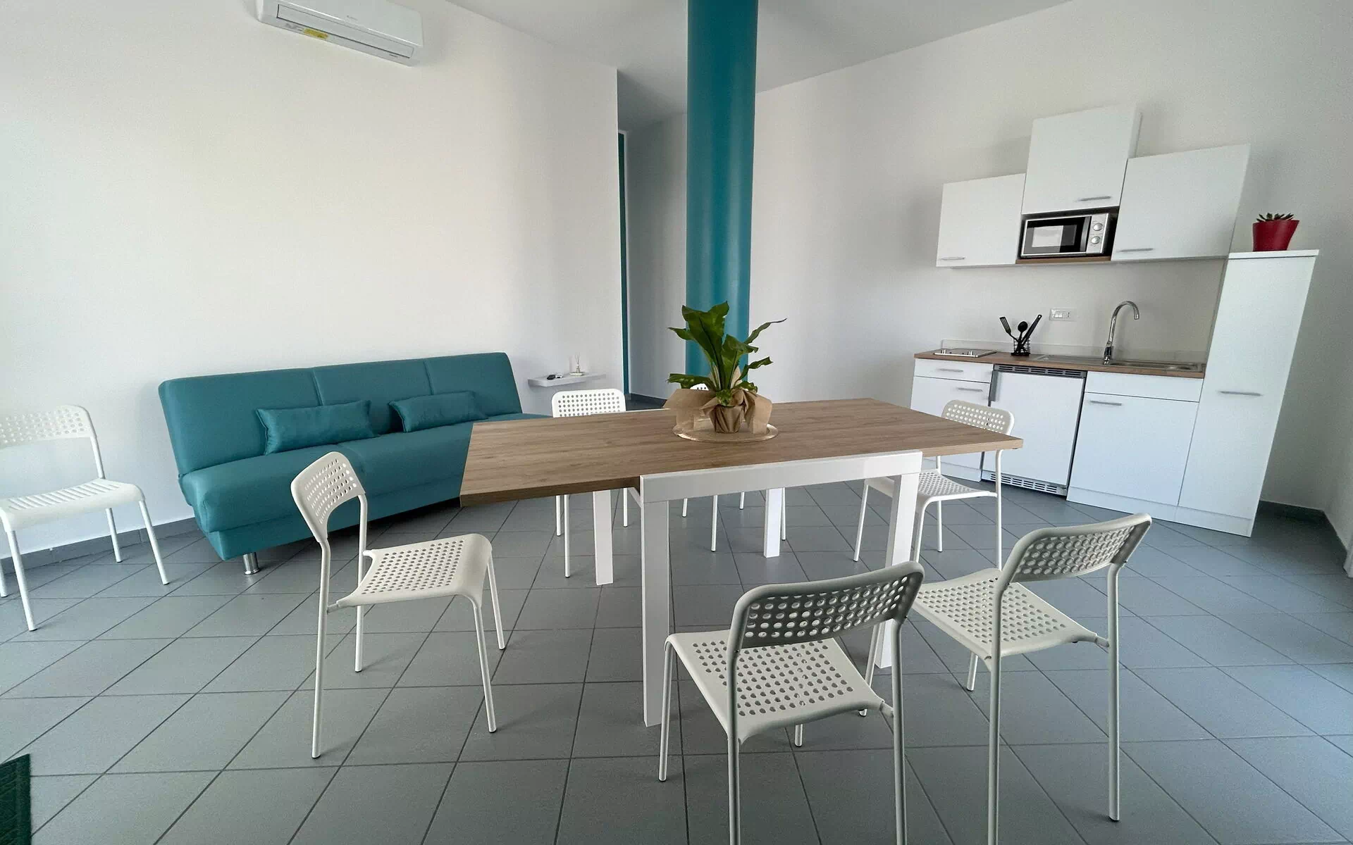 gut ausgestattete Küche, Sofa bed, WiFi Internet, Italienische Kaffeemaschine, Mikrowelle, Herd, Esstisch, TV, Klimaanlage
