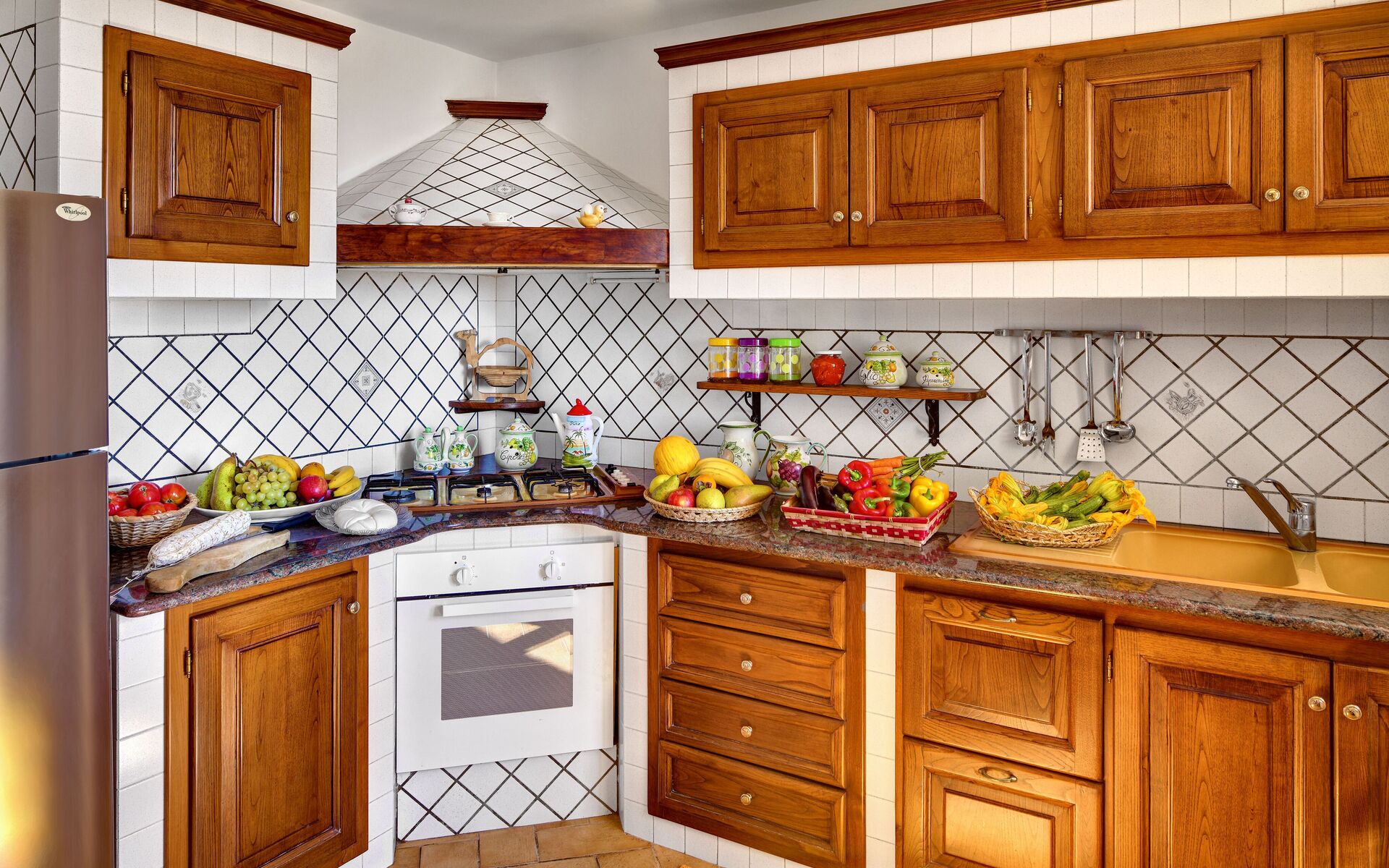 Die Küche ist komplett ausgestattet mit Backofen, Gasherd, Toaster, Wasserkocher, Kühlschrank und allen Utensilien, die erforderlich sind, um sicherzustellen, dass die saisonalen Bio-Produkte, die Sie im örtlichen Obst- und Gemüseladen finden, in eine außergewöhnliche Mahlzeit verwandelt werden können. Angrenzend an die Küche über einen kleinen Bogen befindet sich das Esszimmer mit Treppen, die in die obere Ebene führen. Vom Esszimmer aus führt der Wohnbereich mit großem Flachbildfernseher in L-Richtung weiter.