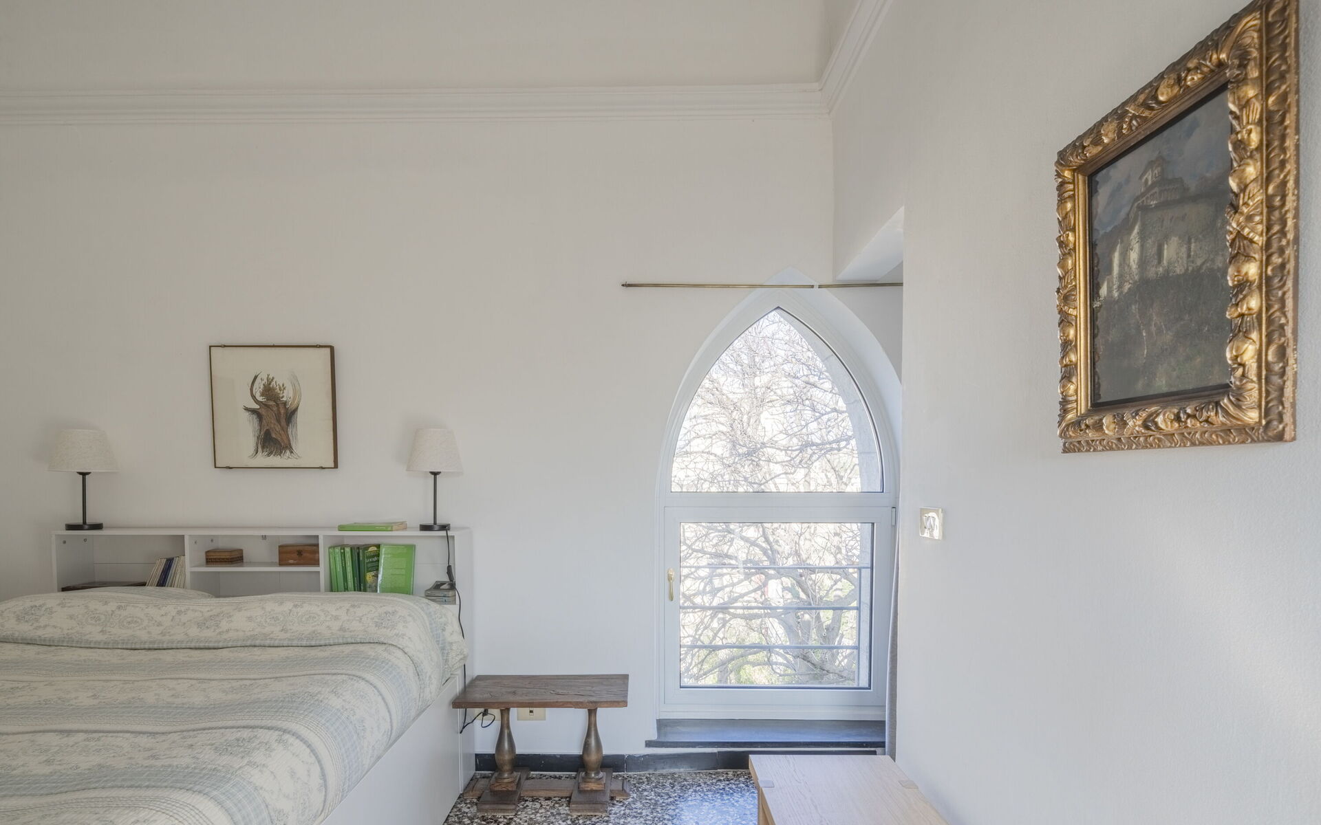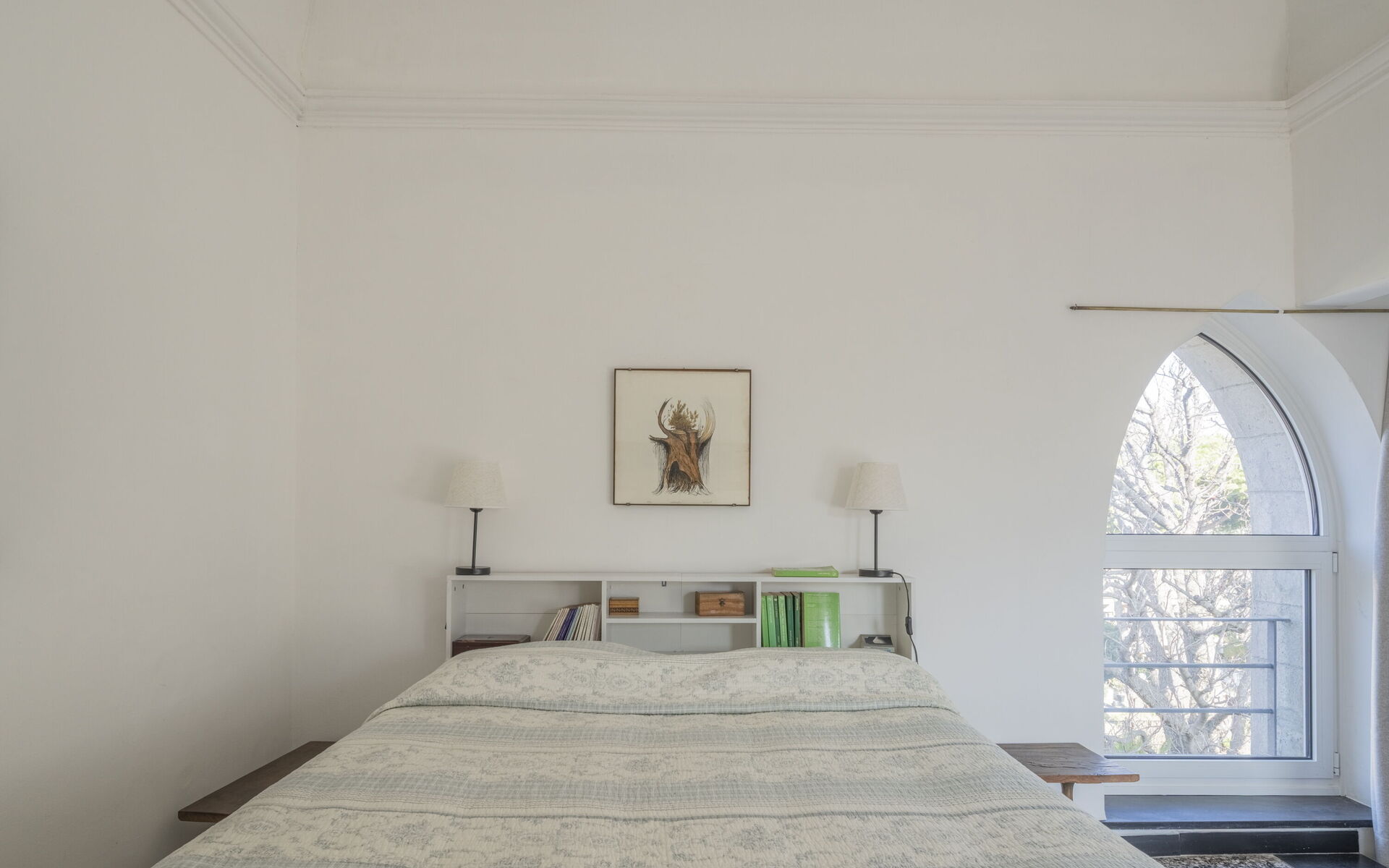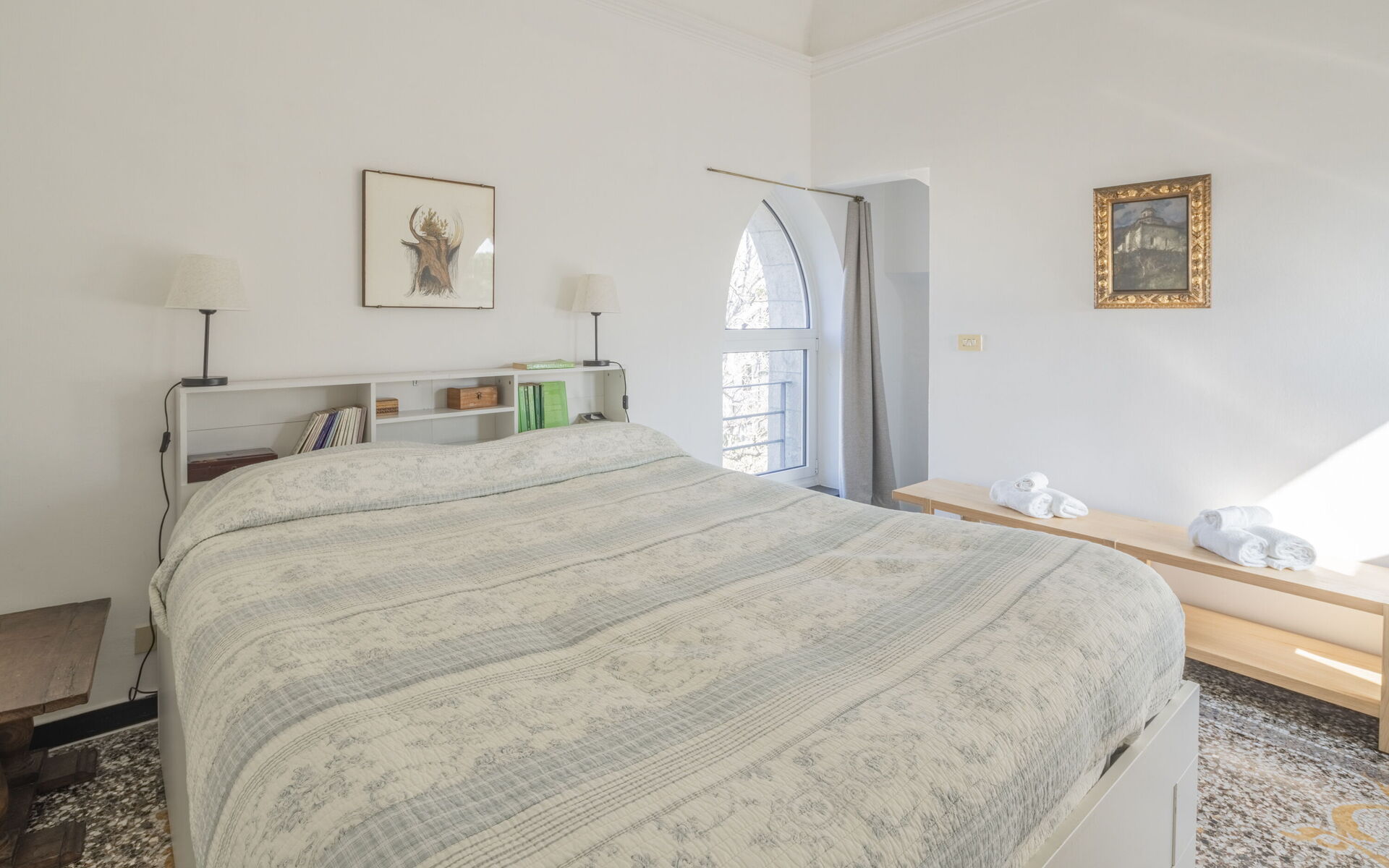 Die oberste Etage beherbergt das Hauptschlafzimmer – ein gemütlicher und einladender Raum, der auf die überdachte Terrasse führt, wo man einen herrlichen 360-Grad-Panoramablick auf die umliegende Landschaft genießen kann.