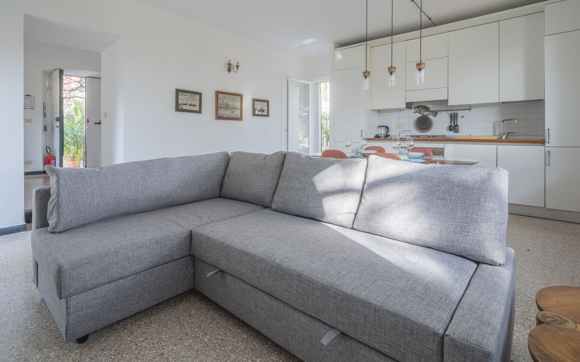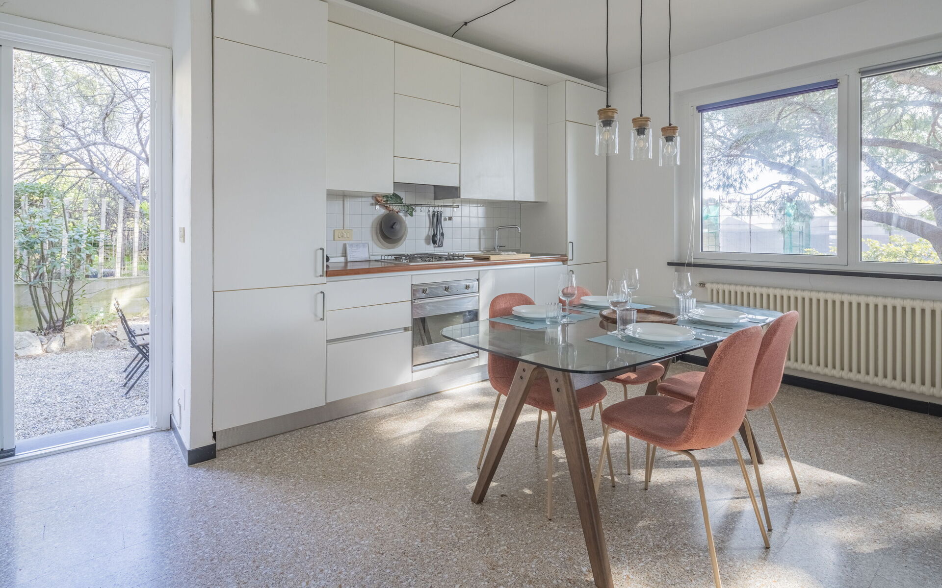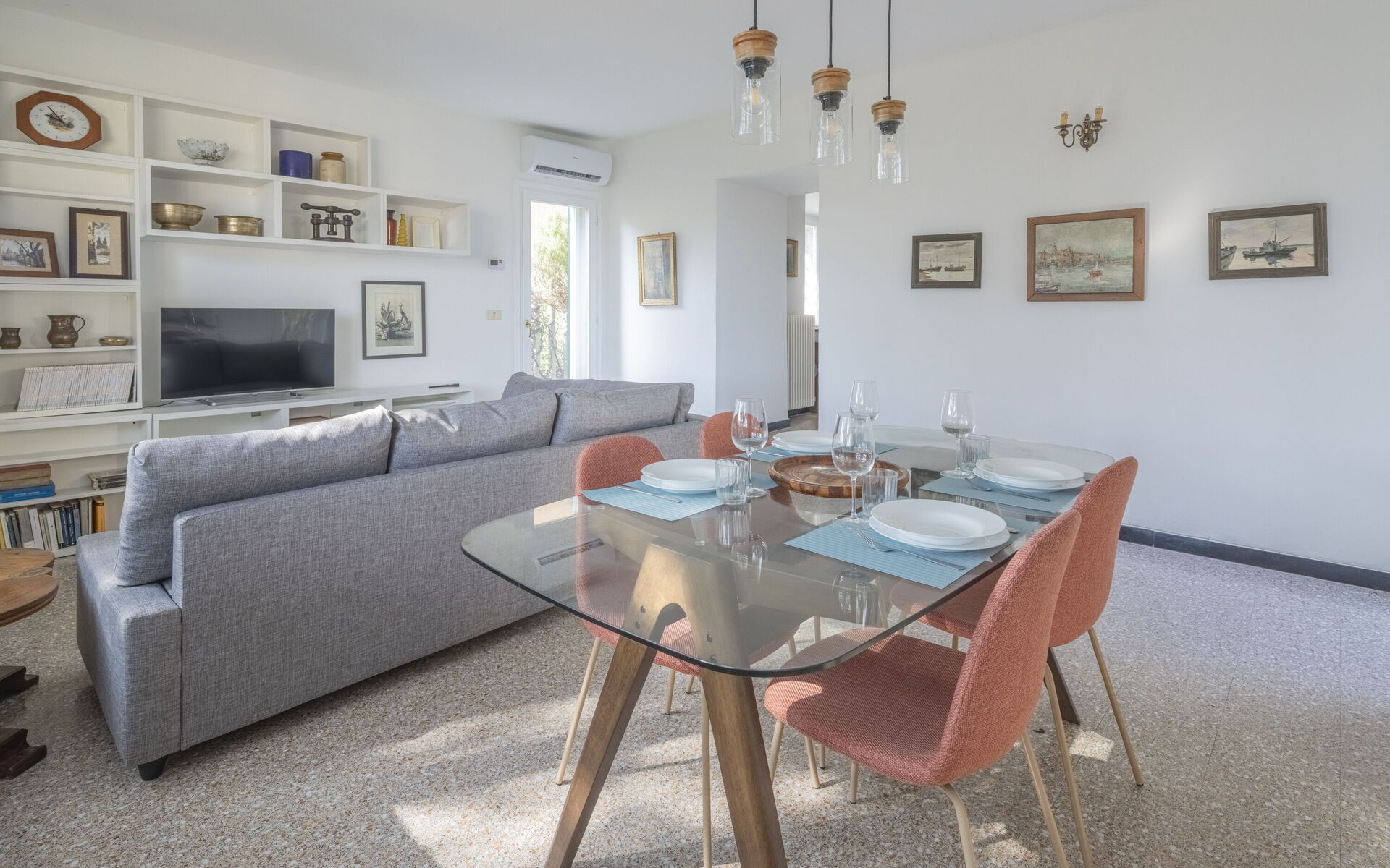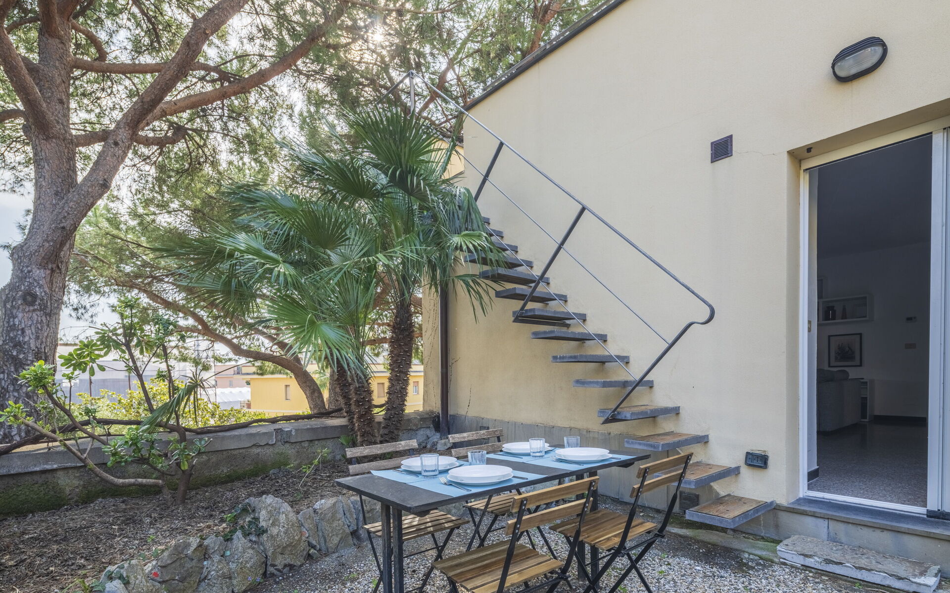 Klimaanlage, Doppel-Schlafsofa, Ofen, Tiefkühler, Kühlschrank, WiFi Internet, Waschmaschine, Italienische Kaffeemaschine, Herd, CO2 Detektor, Rauchmelder, Esstisch, Ausgang auf den Garten