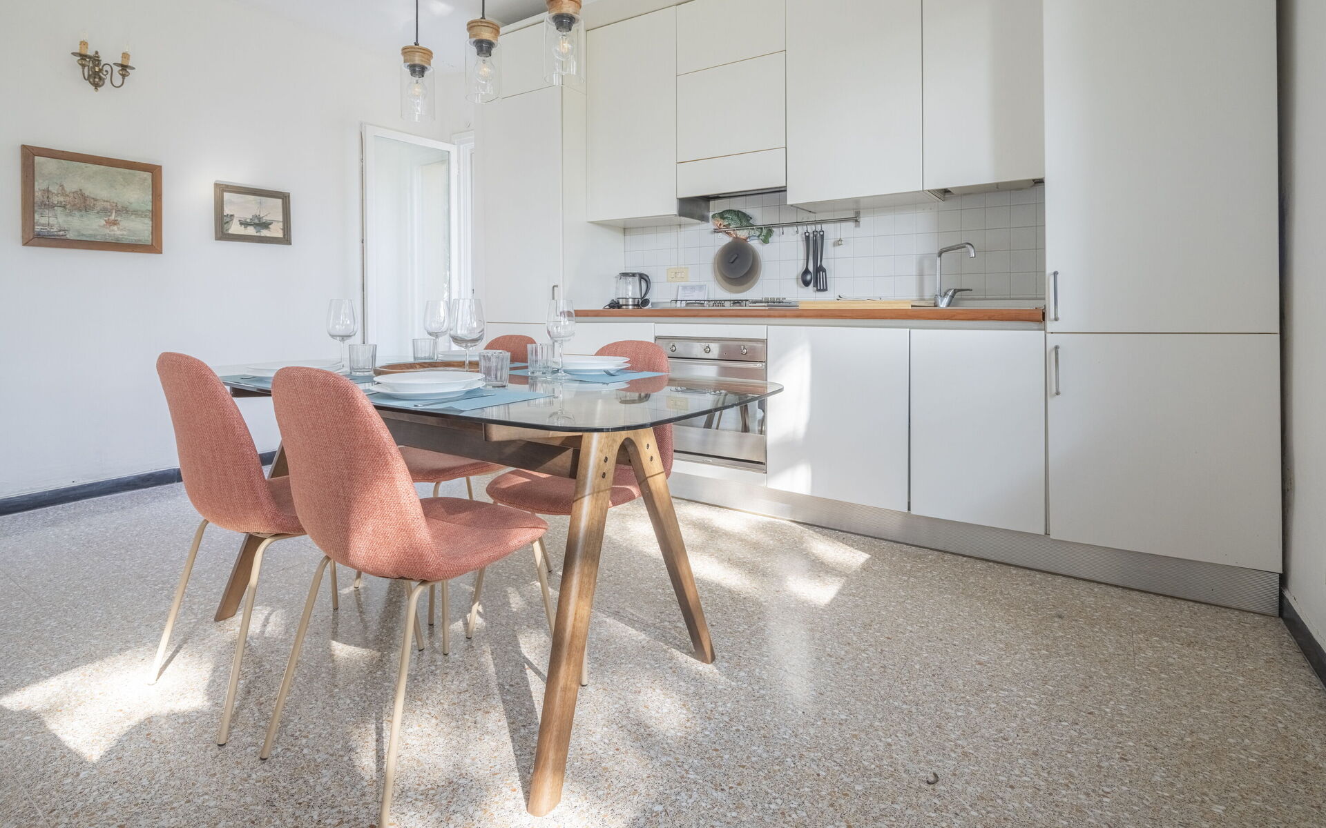 Die Lage vereint die Nähe zum Stadtzentrum mit der Ruhe eines Wohnviertels, umgeben von viel Grün und Stille, und nur wenige Schritte vom Meer (Promenade Corso Italia) sowie vom charakteristischen Fischerdorf Boccadasse entfernt.