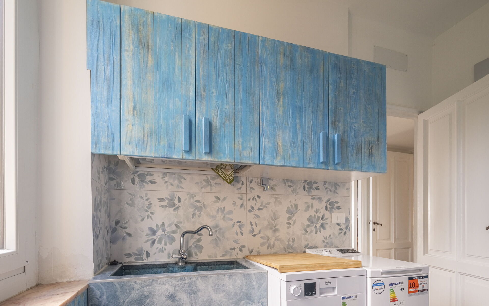 gut ausgestattete Küche, Bügeleisen, Ofen, Tiefkühler, Kühlschrank, Internet, WiFi Internet, Spülmaschine, Waschmaschine, Italienische Kaffeemaschine, Mikrowelle, Herd, Ausgang auf den Balkon