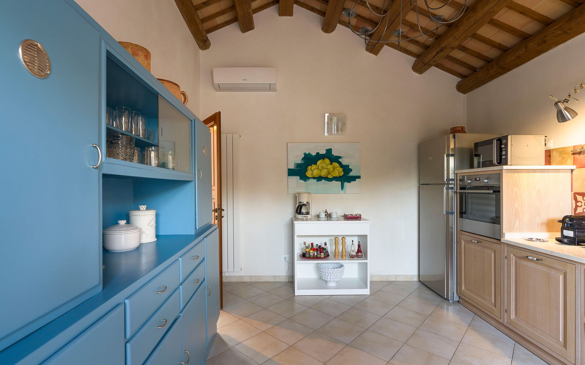 Klimaanlage, gut ausgestattete Küche, Ofen, Tiefkühler, Kühlschrank, Internet, WiFi Internet, Spülmaschine, Italienische Kaffeemaschine, Mikrowelle, CO2 Detektor, Rauchmelder, Esstisch, Toaster