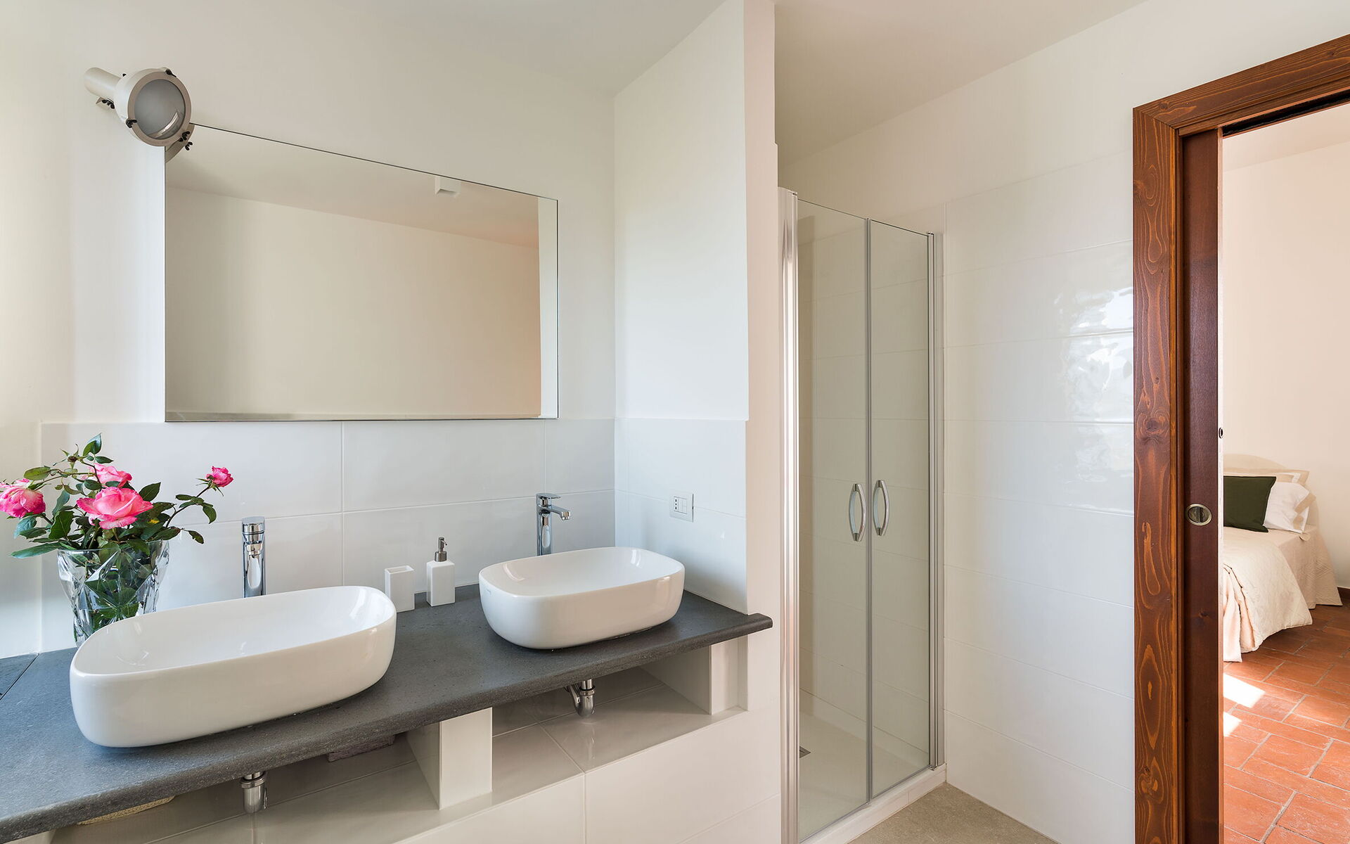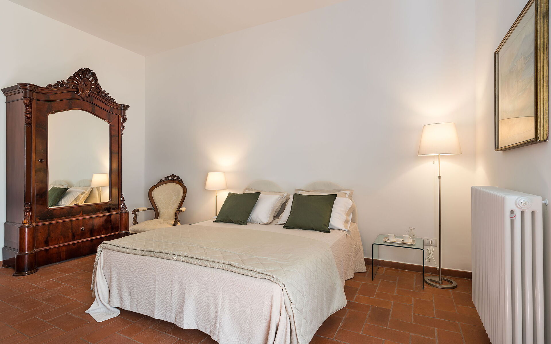 Klimaanlage, Fön, Bidet, Krippe, Dusche, Internet, WiFi Internet, Doppelwaschbecken, Waschmaschine, Doppelbett, Sessel, Ausgang auf die Terrasse, WC
