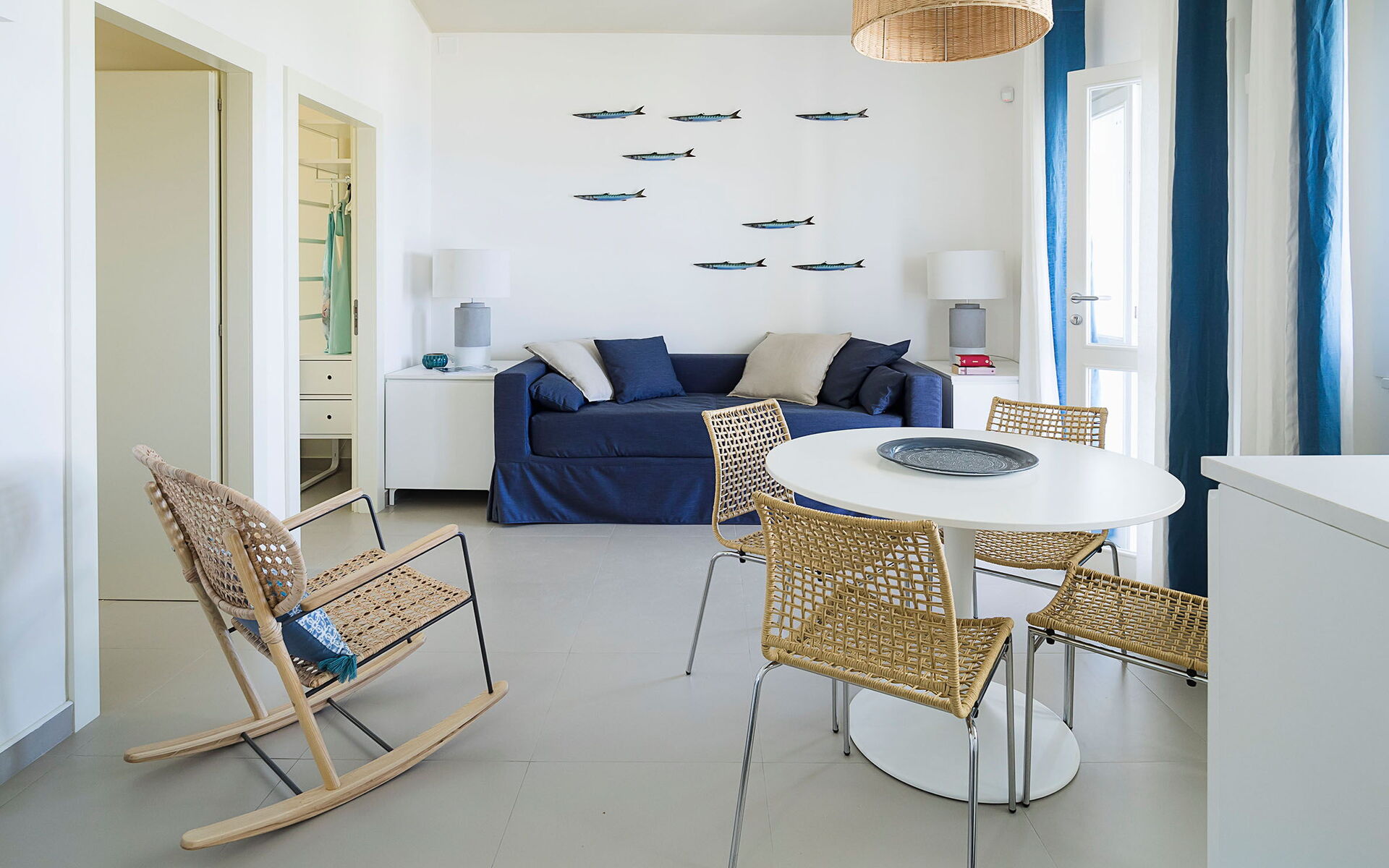 Klimaanlage, gut ausgestattete Küche, Bügeleisen, Ofen, Tiefkühler, Kühlschrank, Internet, WiFi Internet, Spülmaschine, Italienische Kaffeemaschine, Mikrowelle, Herd, Rauchmelder, Kinderhochstuhl, Toaster, Fliegengitter