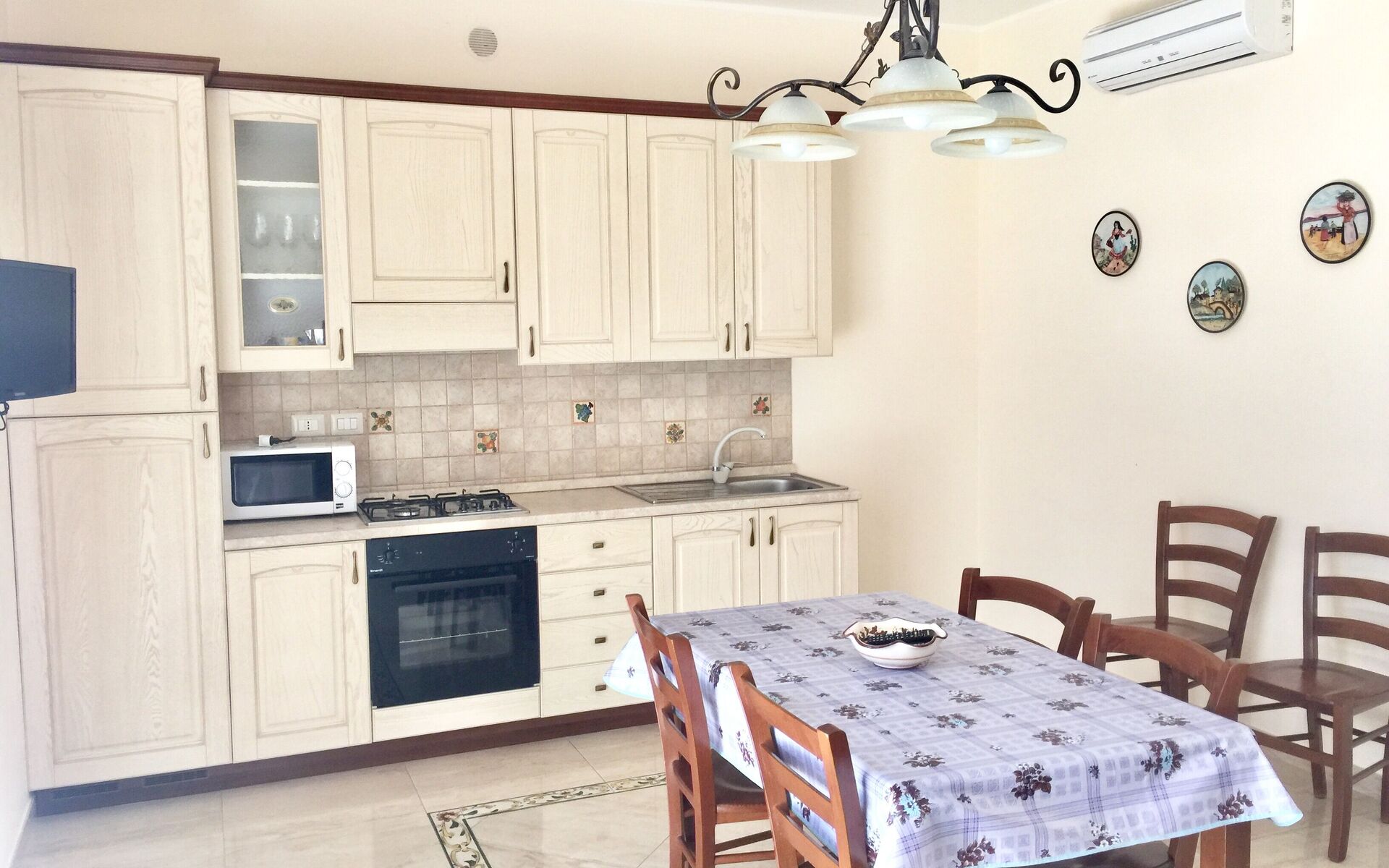 gut ausgestattete Küche, Doppel-Schlafsofa, Ofen, Tiefkühler, Kühlschrank, Mikrowelle, Esstisch, TV, Satelliten-TV
