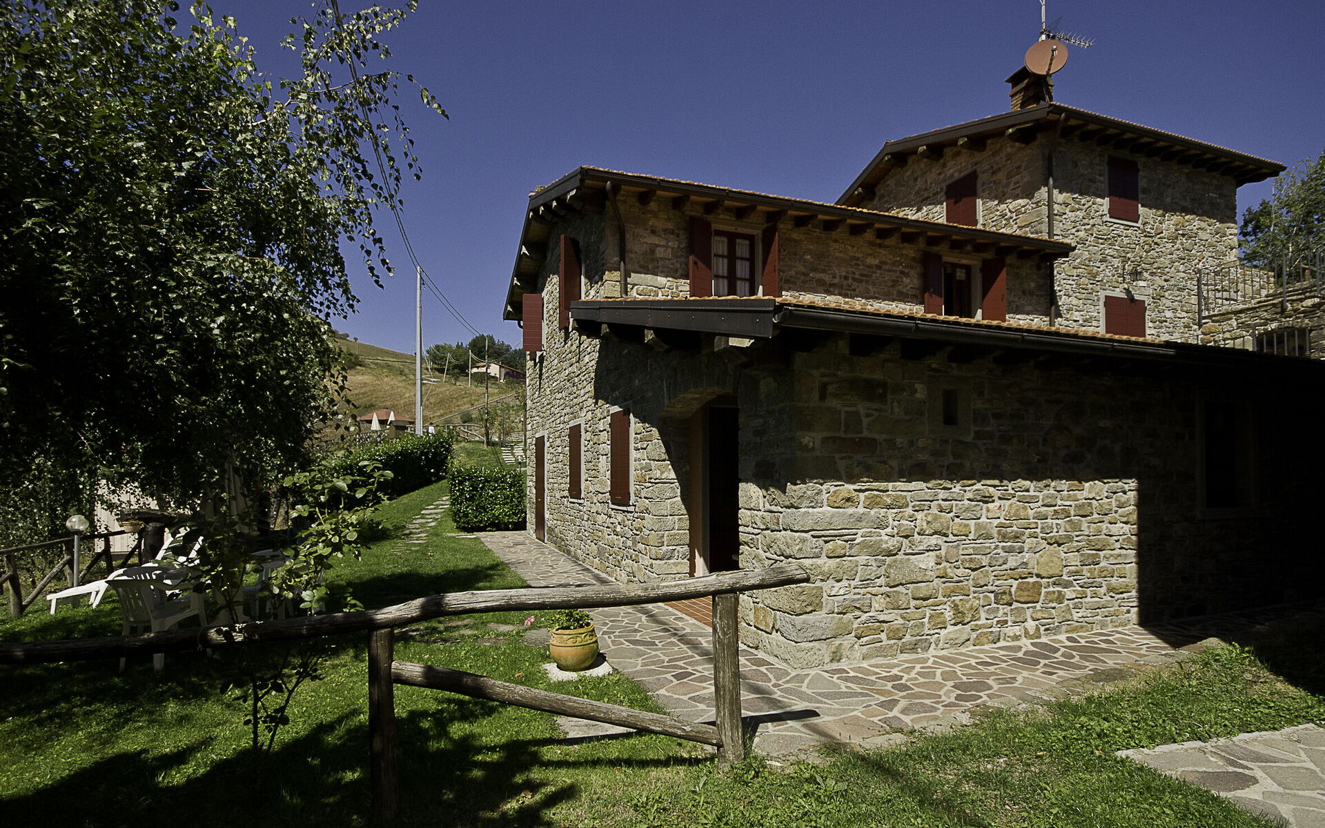 La casa è in una posizione magnifica, su un crinale con vista sui monti. Gli ampi spazi interni, il prato e la piscina la rendono adatta anche ai bambini.