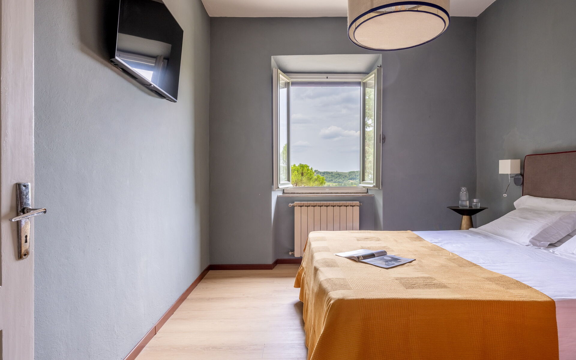 Diese gemütliche Wohnung befindet sich im ersten Stock und bietet funktionale Räumlichkeiten, die ideal für einen Urlaub im Chianti sind. Das geräumige Wohnzimmer ist mit einem Sofa, einem Flachbildfernseher und einem praktischen Esstisch ausgestattet, an dem Sie Ihre Mahlzeiten in Gesellschaft genießen können. Die Kochnische verfügt über einen Induktionsherd. Der Schlafbereich besteht aus zwei geräumigen Doppelzimmern, einem eigenen Bad mit Dusche und einem Fernseher.
