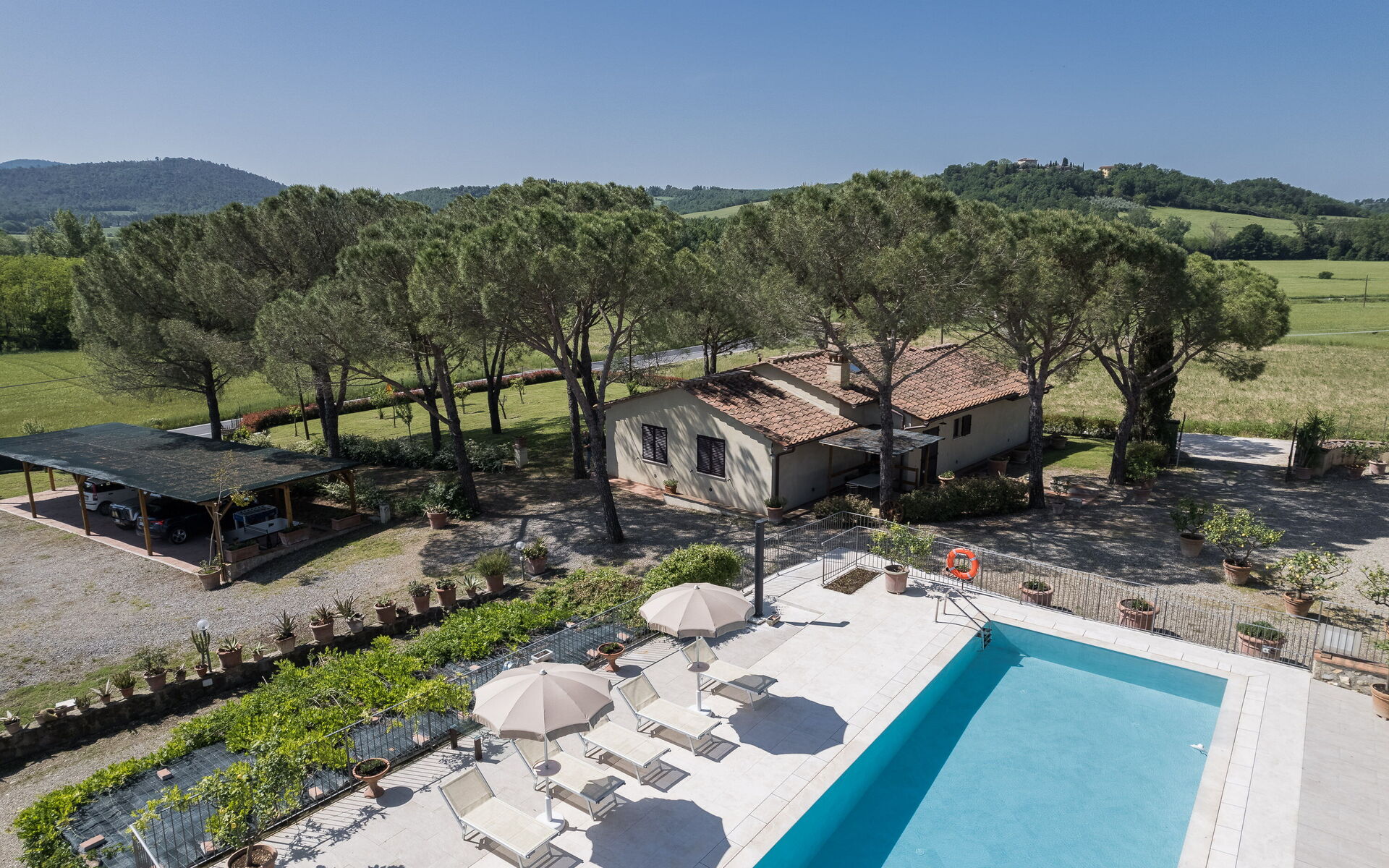 Von hier aus können Sie leicht Tagesausflüge in die weltberühmte Kunstmetropole Florenz unternehmen, und auch Geschäfte, ein Golfplatz und ein Restaurant befinden sich in der Nähe. Etwa 4 Autominuten vom Alta Val d'Elsa River Park und etwa 2 Autominuten von den römischen Bädern von Le Caldane entfernt.