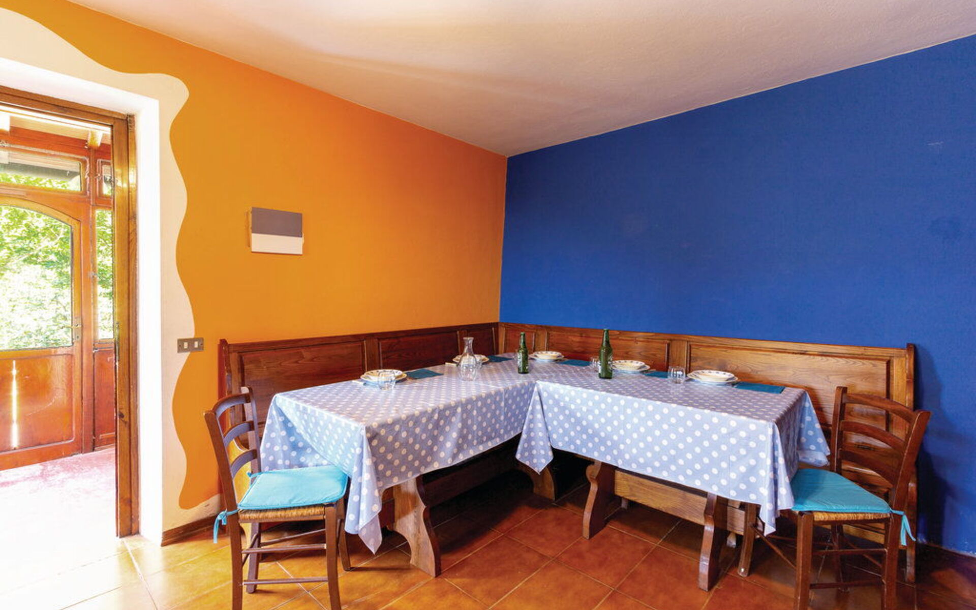 gut ausgestattete Küche, Ofen, Tiefkühler, Kühlschrank, WiFi Internet, Spülmaschine, Italienische Kaffeemaschine, Mikrowelle, Esstisch, TV, Ausgang auf den Garten, Sofa, Waschmaschine