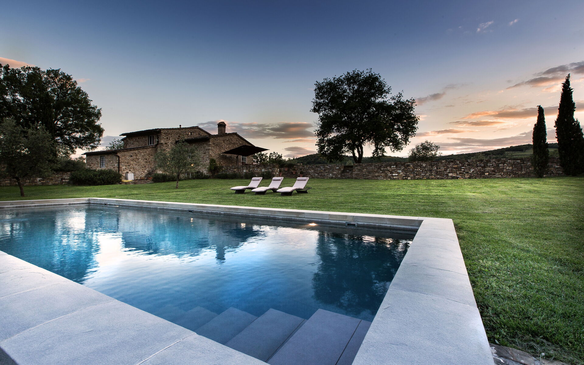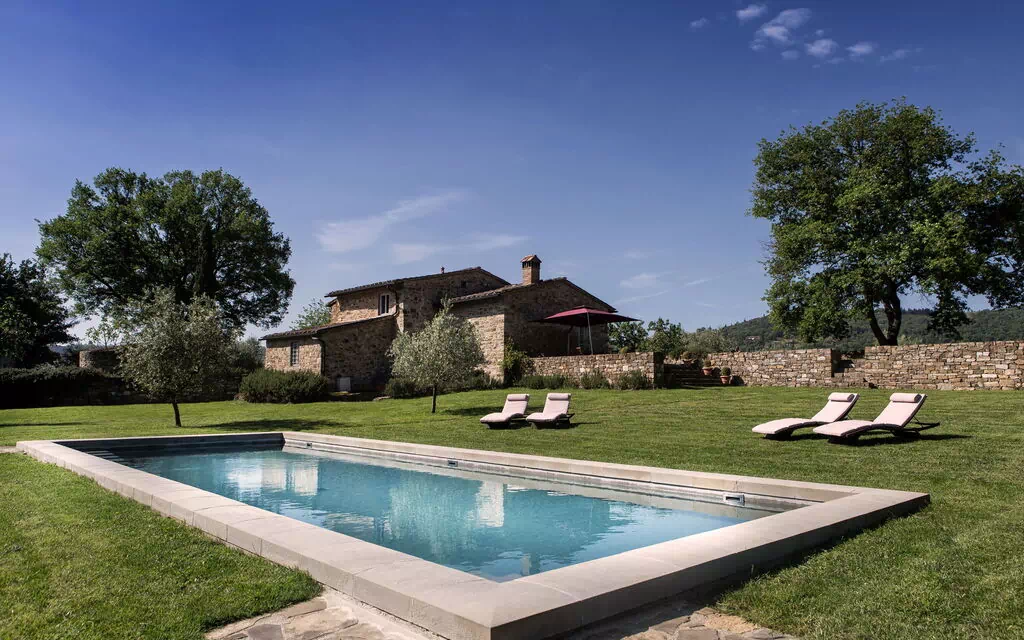 Ein steinerner Weg verbindet die drei Haupthäuser mit einem schönen Panoramaschwimmbad, in dem man auf bequemen Liegen in der Sonne entspannen kann. In der Nähe vervollständigt ein gut ausgestatteter Fitnessraum das Wellness-Angebot mit Duschen und einem türkischen Bad für eine regenerierende Erfahrung im Kontakt mit der Natur. Ein exklusives Refugium, in dem die Zeit langsamer vergeht und die Schönheit der toskanischen Landschaft sich mit Komfort und Authentizität verbindet. Platz zum Kochen im Freien.