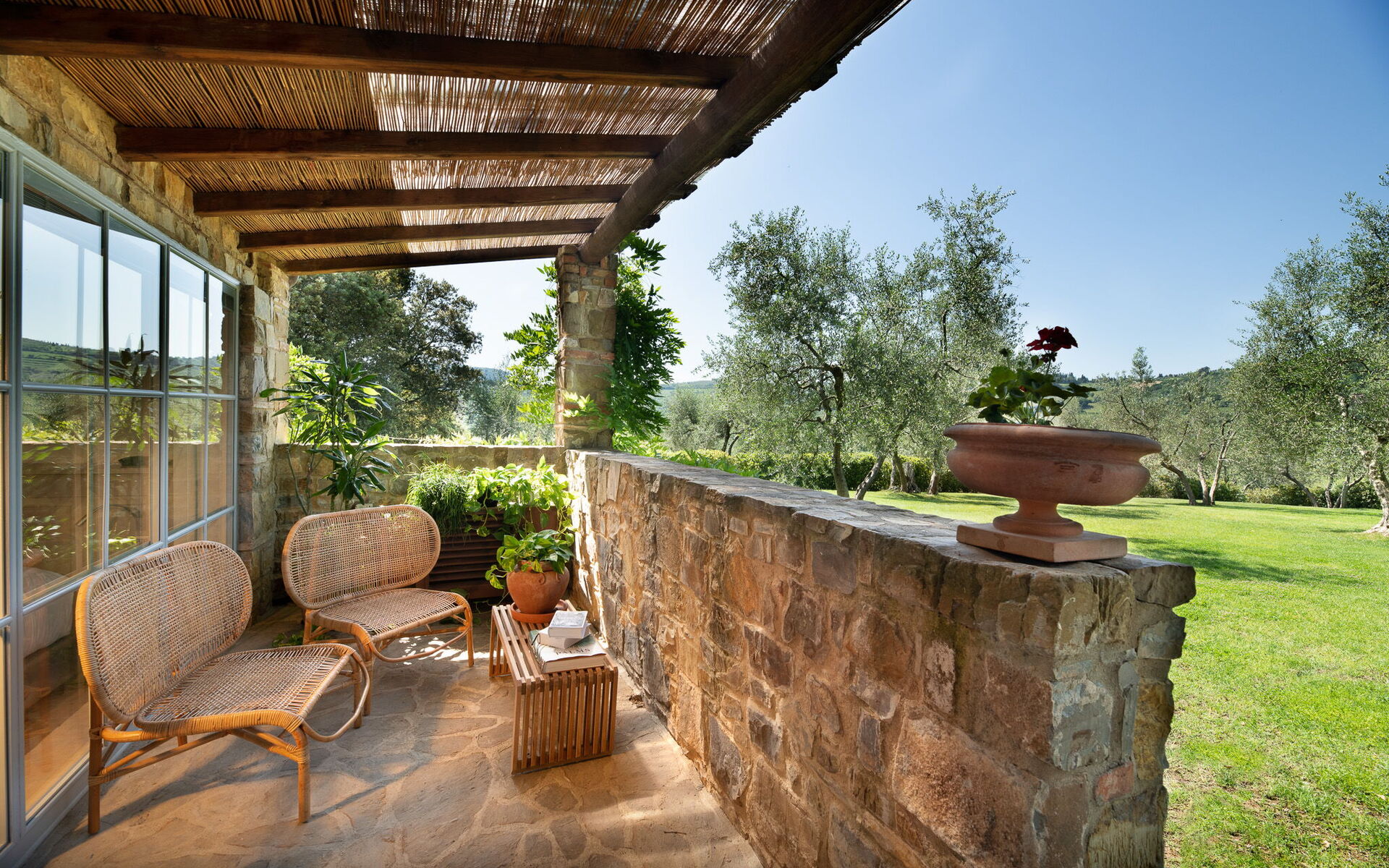 Nur wenige Schritte von der Hauptvilla entfernt, die über sechs Zimmer verfügt, befinden sich drei charmante Nebengebäude: