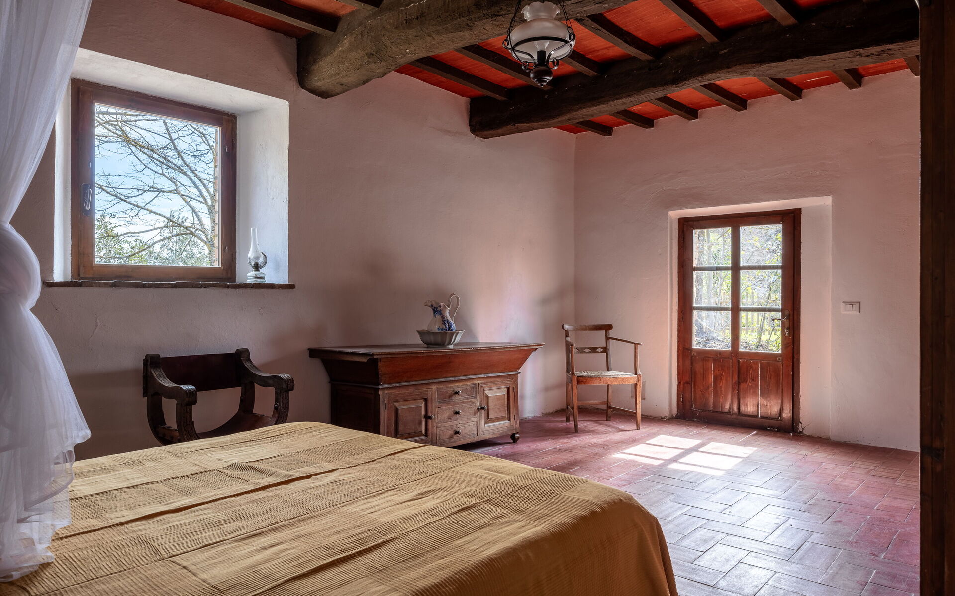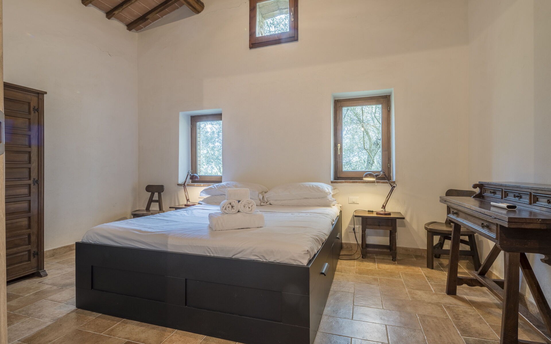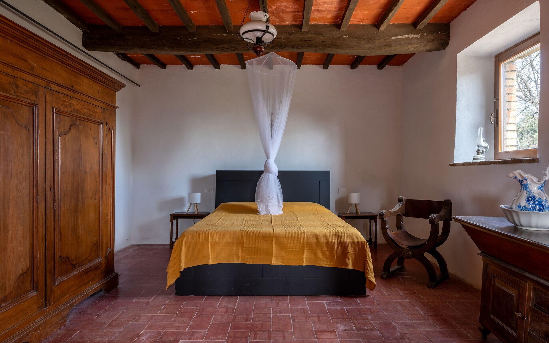 Die Lage ist ideal, um die Toskana zu erkunden: San Gimignano ist 30 Minuten entfernt, Siena 40 Minuten, Volterra 50 Minuten und Florenz etwa eine Stunde, ebenso wie die reizvollen Dörfer des Val d’Elsa. Der Panoramapool direkt vor dem Haupthaus lädt zu Momenten voller Ruhe und Wohlbefinden ein.