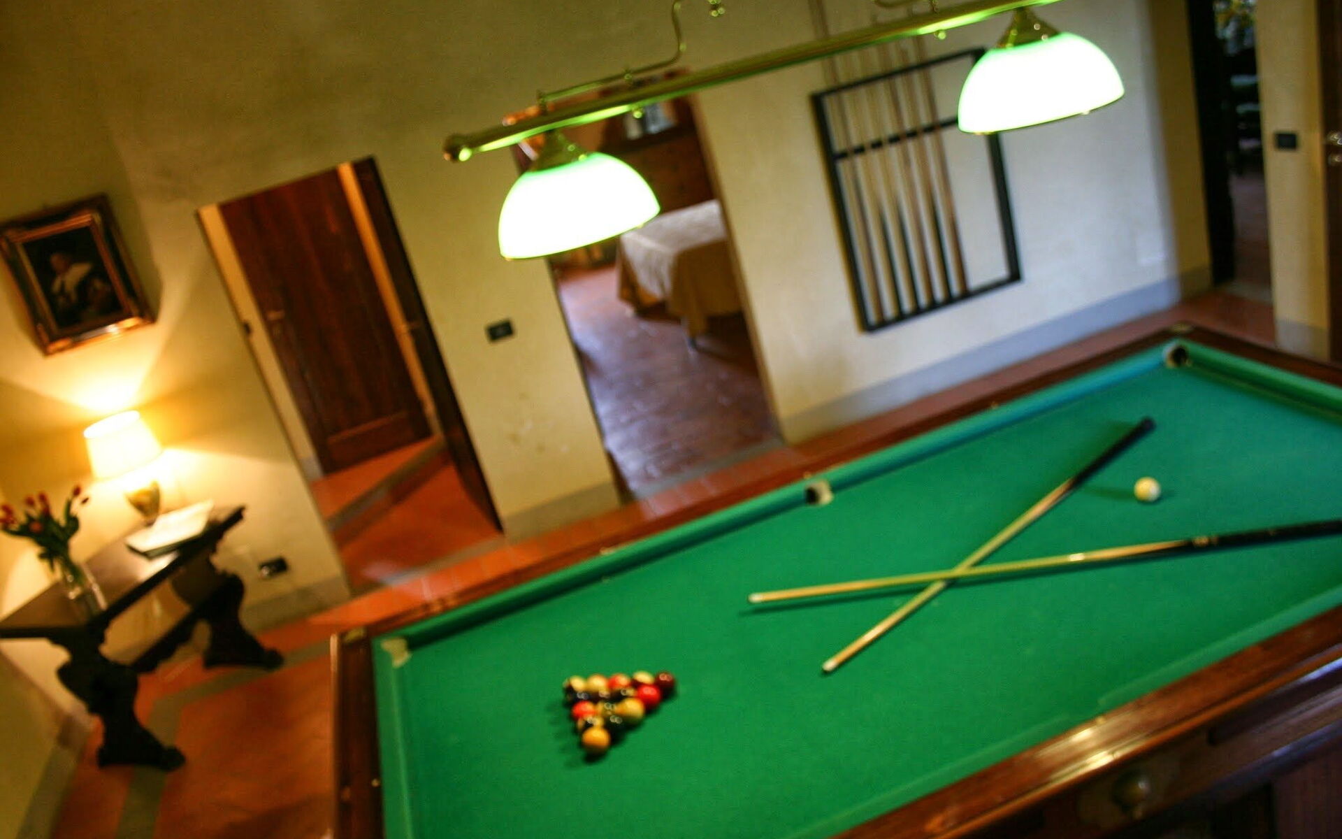In der ersten Etage: Vorraum; Wohnbereich; Küche mit vier elektrischen Kochfelder, Ofen, Kühlschrank mit Gefrierfach; Geschirrspüler; Wohnbereich/Esszimmer mit SAT-TV; Billardzimmer; 3 Doppelbettzimmer, jeweils mit Badezimmer und Dusche (WC/Bidet); 1 Doppelbettzimmer; 1 Badezimmer mit Badewanne (WC/Bidet); Terrasse.