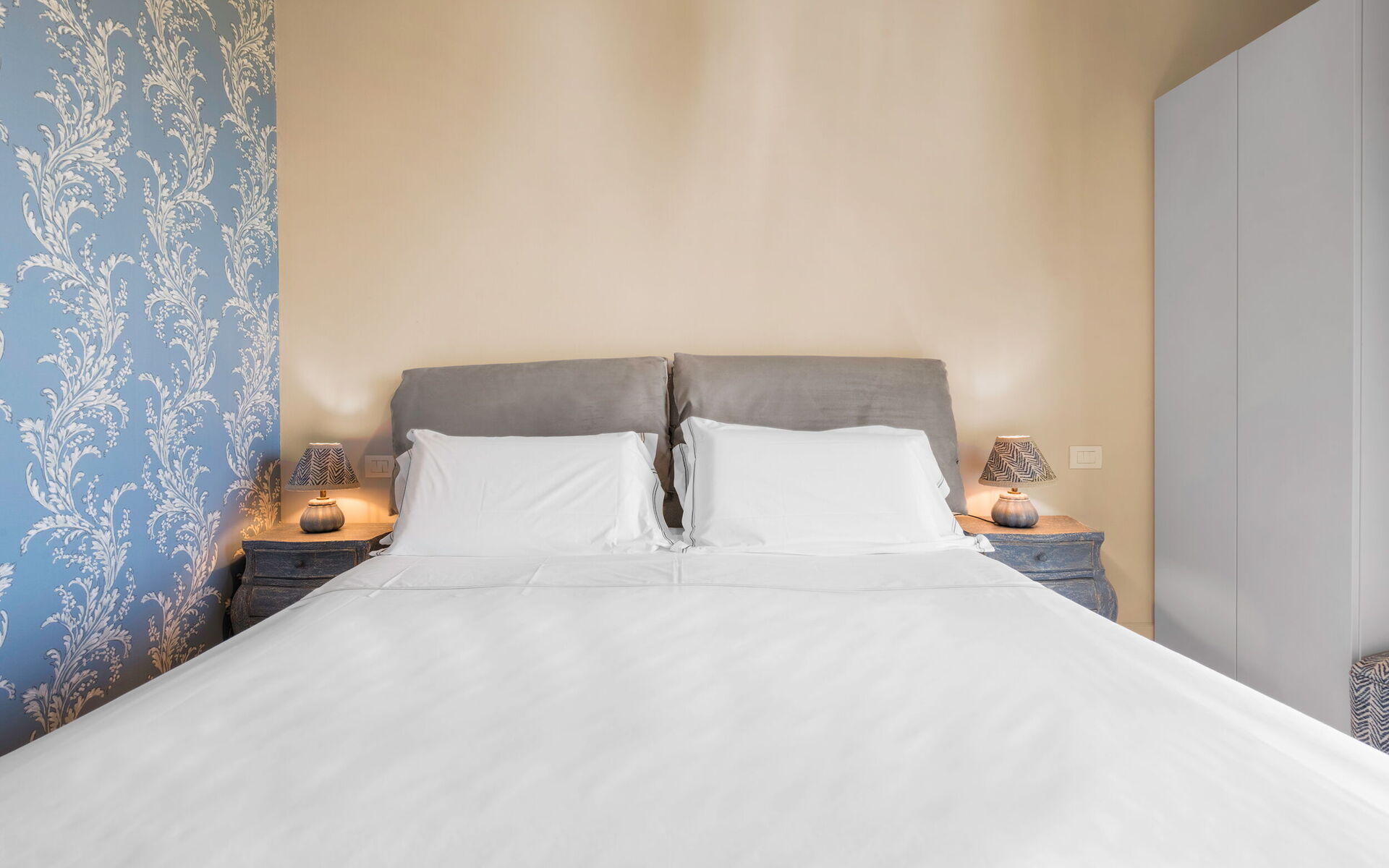 Im Obergeschoss befinden sich zwei geschmackvoll eingerichtete Schlafzimmer, jeweils mit eigenem Bad und französischem Balkon, von dem Sie die frische Morgenluft und die Aussicht auf die umliegende Landschaft genießen können. Das zweite Schlafzimmer verfügt über ein ausziehbares Futon-Sofa, das bequem eine weitere Person beherbergen kann.