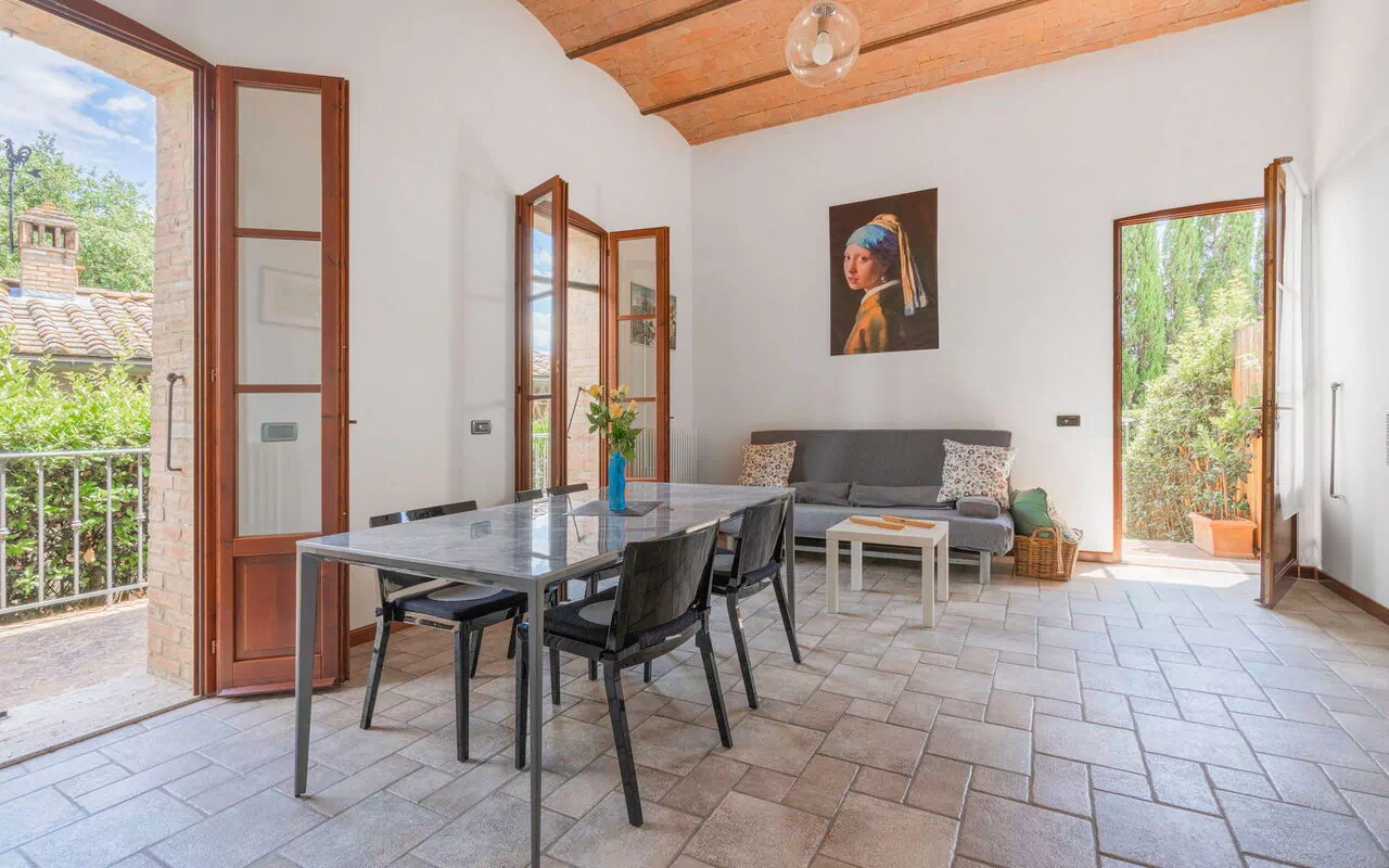 Schöne Wohnung mit eigenem Eingang und privatem Garten mit Liegestühlen und Sonnenschirm, ideal zum Entspannen an der frischen Luft. Kommen Sie und entdecken Sie den Charme eines historischen Gebäudes mit allen Annehmlichkeiten der Moderne: die Räume sind gut gepflegt und geschmackvoll eingerichtet, der gesamte Wohnkomplex wurde renoviert und gab neues Leben zu dem, was einst ein großer Bauernhof war.