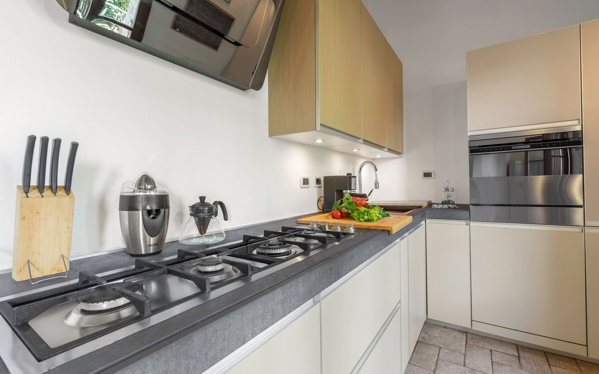 gut ausgestattete Küche, Bügeleisen, Ofen, Tiefkühler, Kühlschrank, WiFi Internet, Spülmaschine, Italienische Kaffeemaschine, Herd, Rauchmelder, Kinderhochstuhl, Ausgang auf den Garten