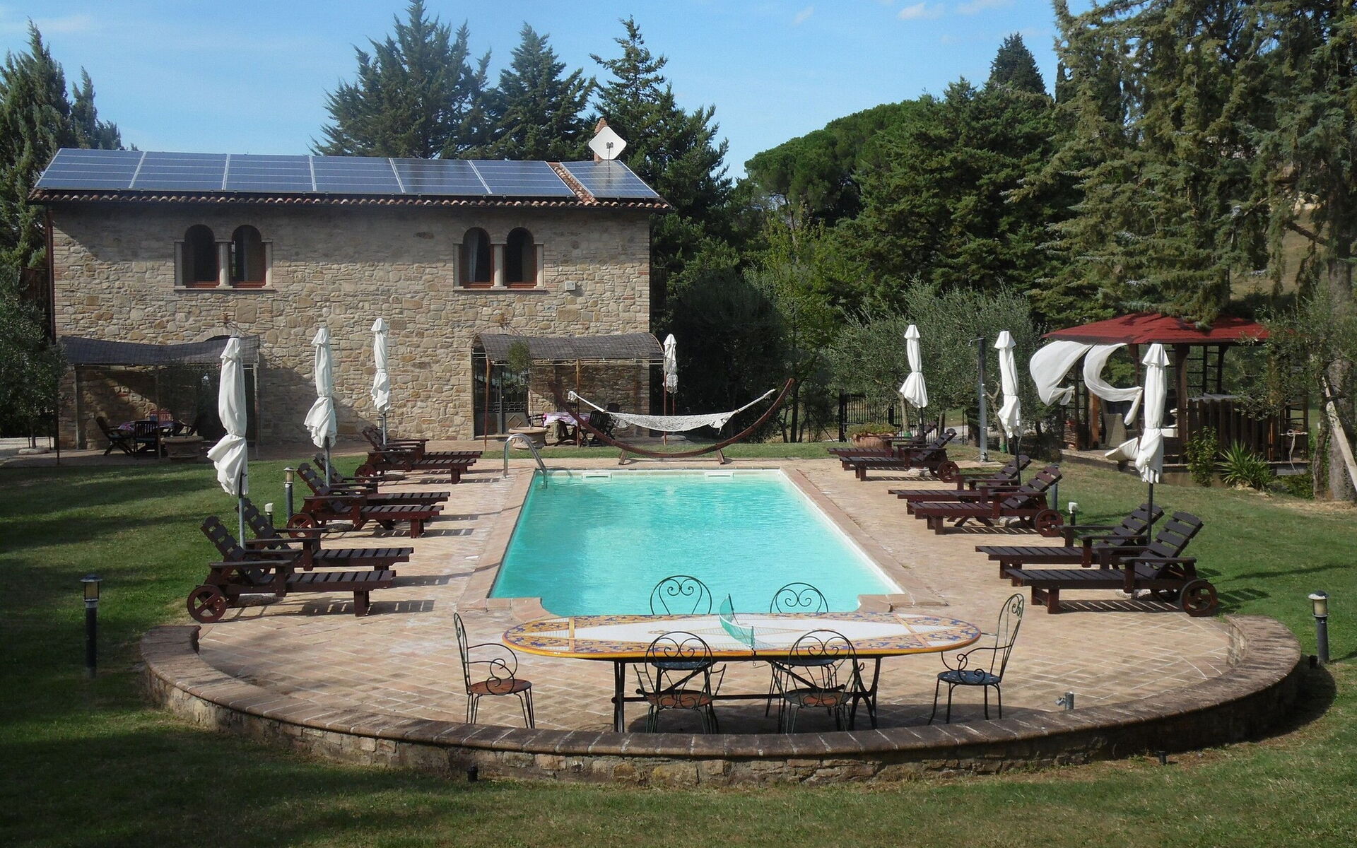 Verbringen Sie einen erholsamen Urlaub in einem bezaubernden Anwesen, bestehend aus einer Hauptvilla und einem Gästehaus, umgeben von einem üppigen Garten. Die großzügigen Außenbereiche sind auf den Komfort der ganzen Familie ausgelegt: Ein herrlicher privater Pool (14x5 m) mit Sonnenliegen und Sonnenschirmen lädt zum Entspannen unter der toskanischen Sonne ein, während ein eigener Spielbereich die Kleinen sicher unterhält.