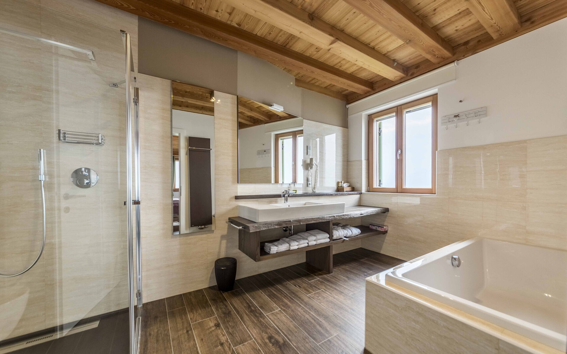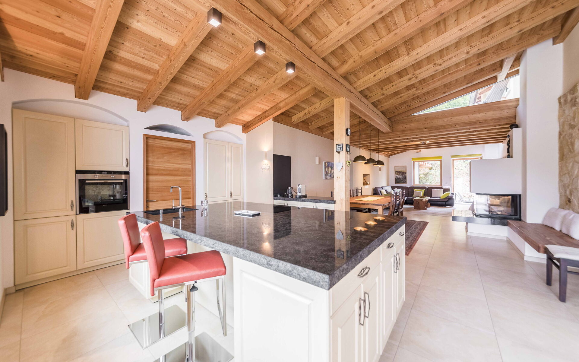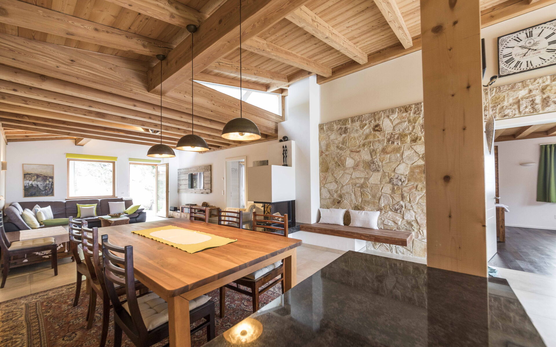Auf der ersten Etage befinden sich 2 Schlafzimmer mit eigenem Bad, während der Schlafbereich im Obergeschoss 2 weitere Schlafzimmer bietet, alle mit Seeblick und mit Gemeinschaftsbad. Auch die Umgebung hier ist wirklich einzigartig: Holzbalken, wie im Rest des Hauses, für die Decken, aber auch Holz für die Böden und die meisten Möbel. Eine perfekte Mischung, die die gesamte Umwelt wirklich umweltfreundlich macht.