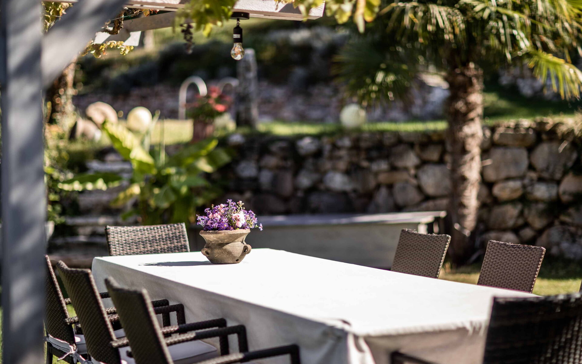 Schließe deine Augen und atme tief ein. Spüren Sie den berauschenden Duft aromatischer Kräuter, das Grillenlied und das Gurgeln des Wassers und genießen Sie die süßen Früchte des Gartens. Die Ruhe der Natur beruhigt den Geist, bringt Sie der Harmonie und den schönen Dingen des Lebens näher!