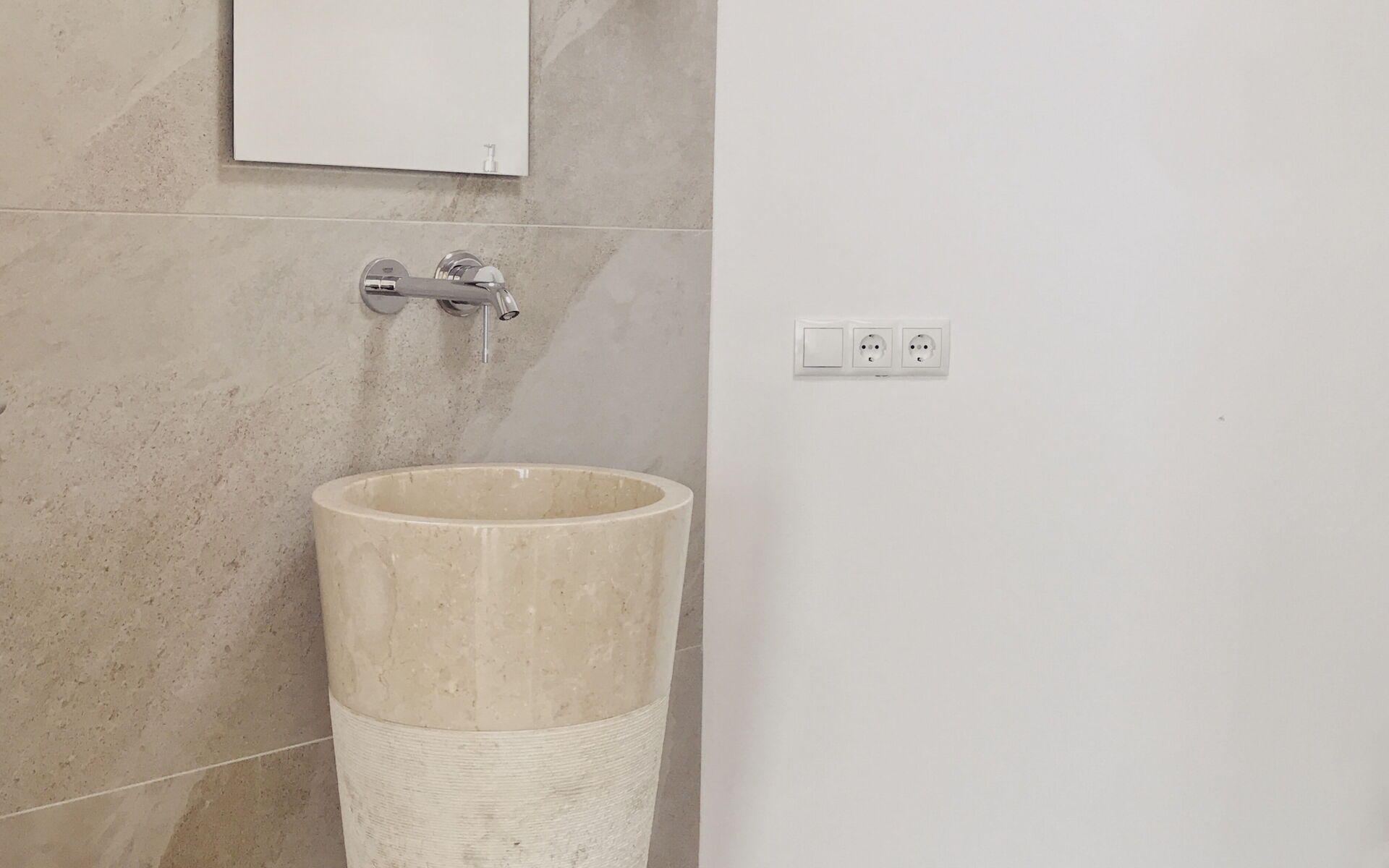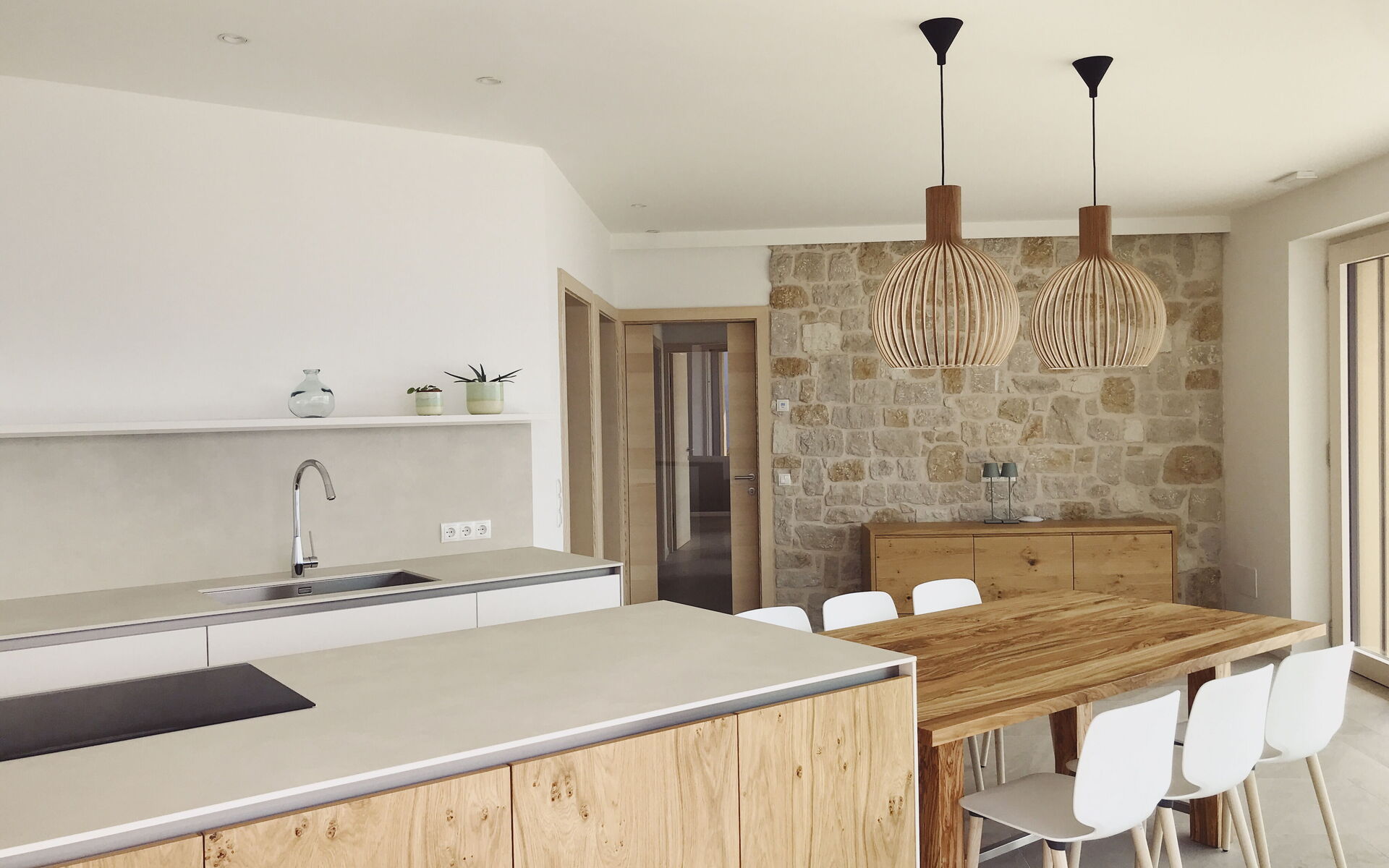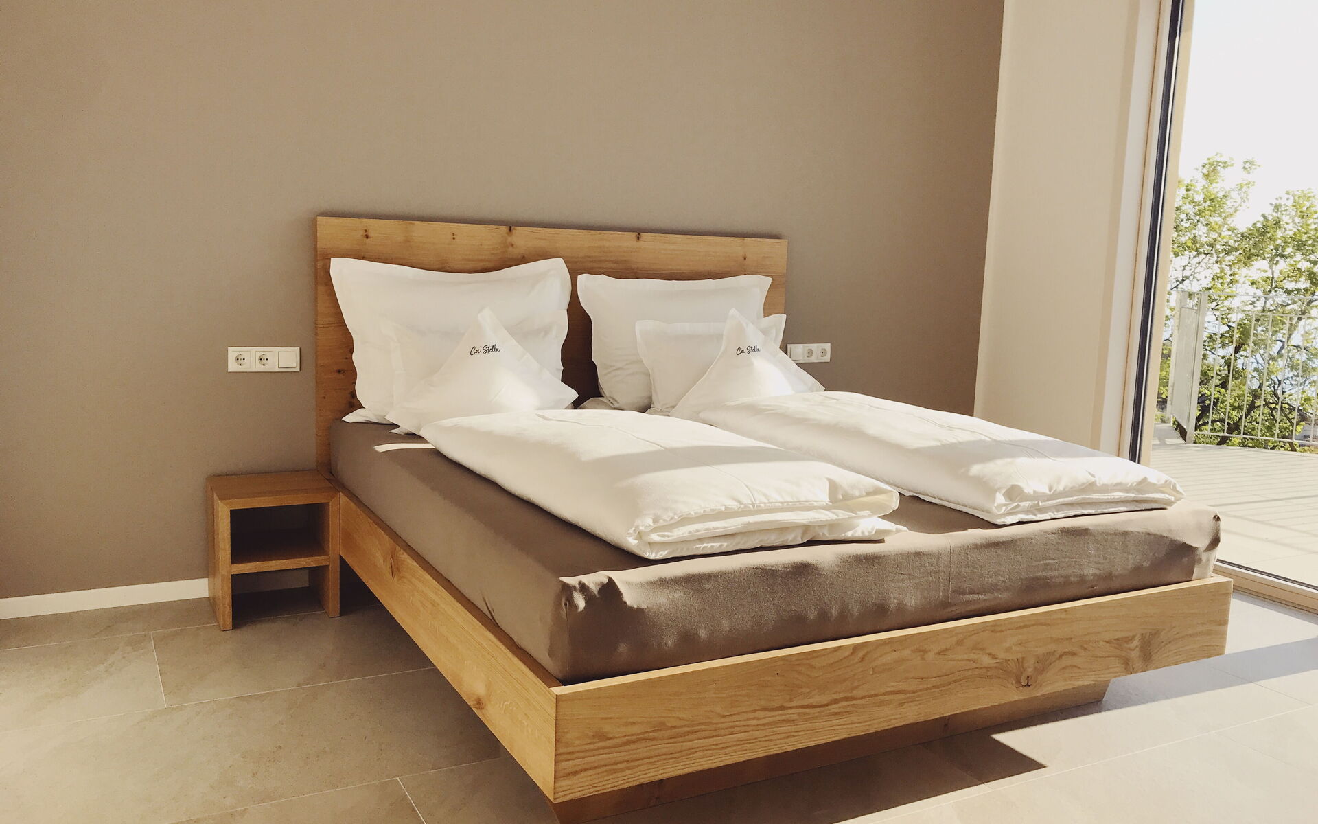 Die Lage ist modern und die Einrichtung ist sehr minimal, aber beeindruckend. Die Zimmer sind in der Tat von Holzmöbeln und neutralen Farben dominieren zusammengesetzt. Das große Wohnzimmer mit Sofa hat Zugang zur Terrasse und ermöglicht es Ihnen, das herrliche Panorama zu genießen.