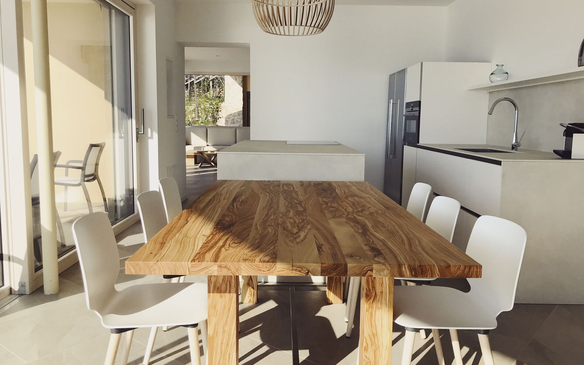 Die Veranda mit Esstisch und Sesseln ist ideal, um im Freien zu essen und die Aussicht zu genießen.
