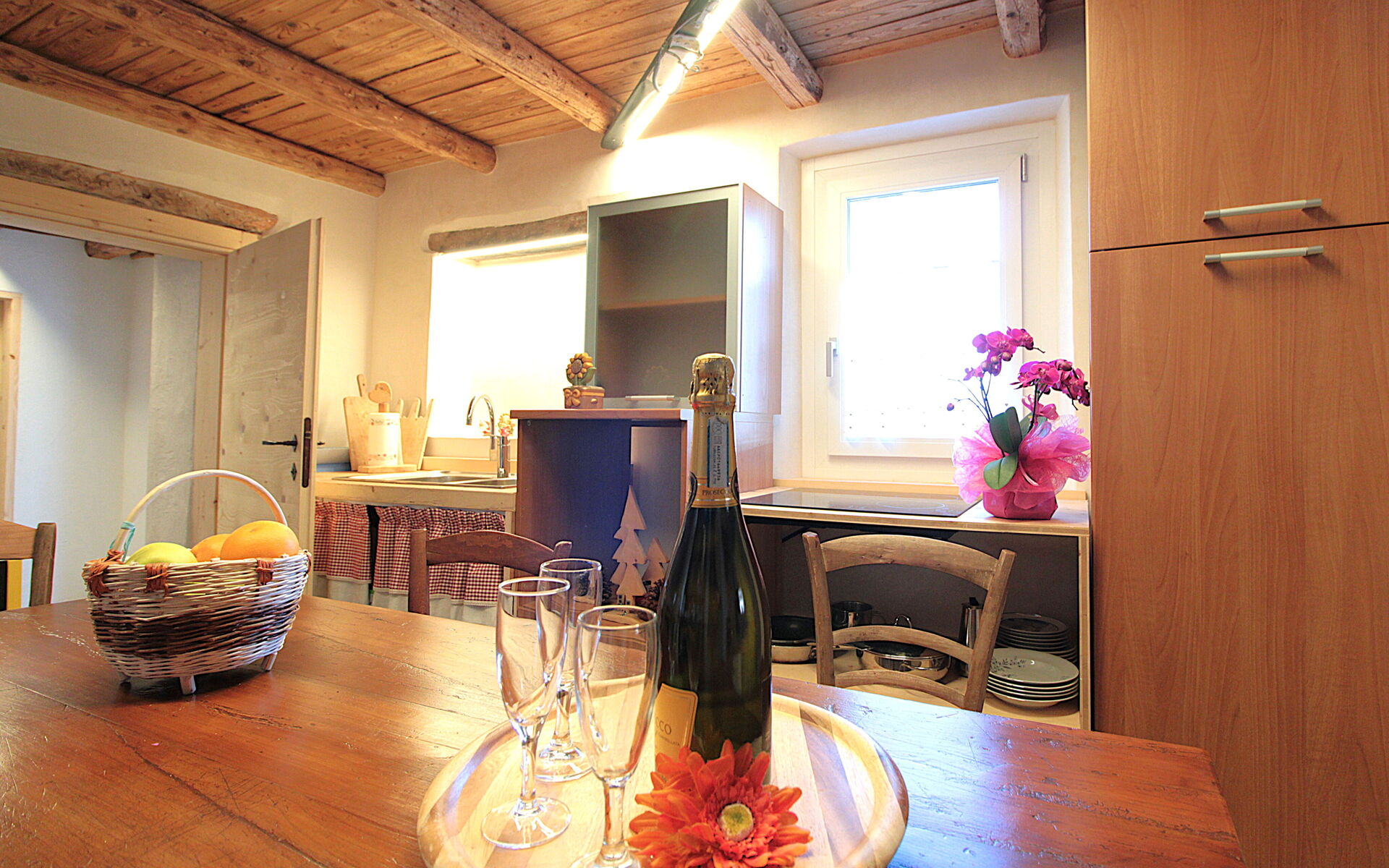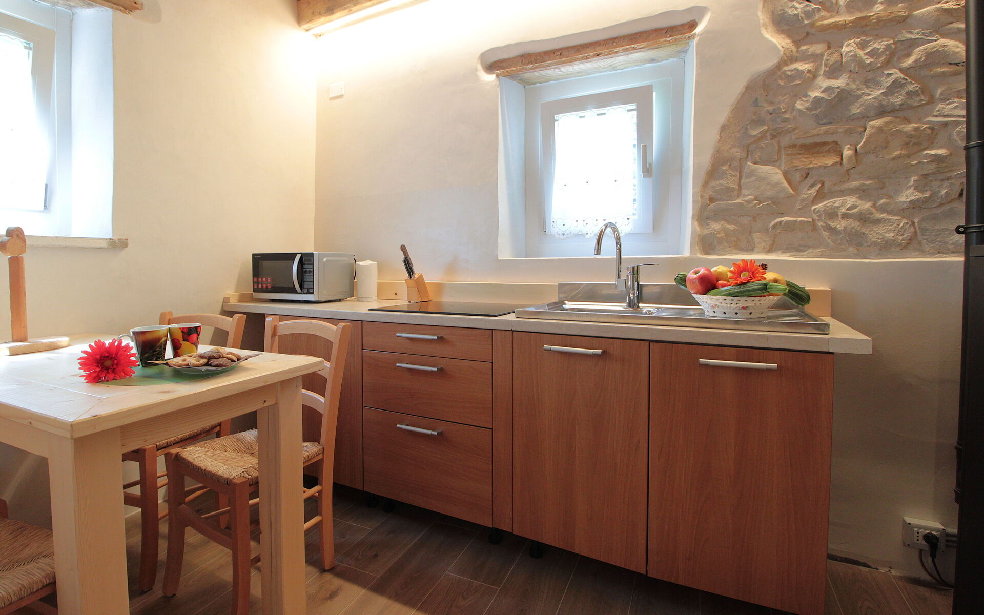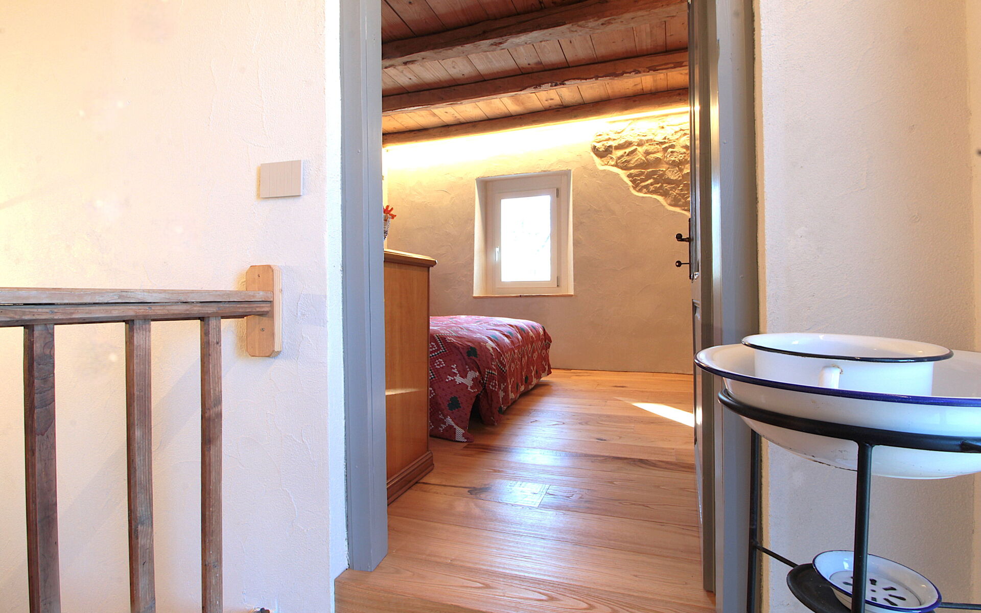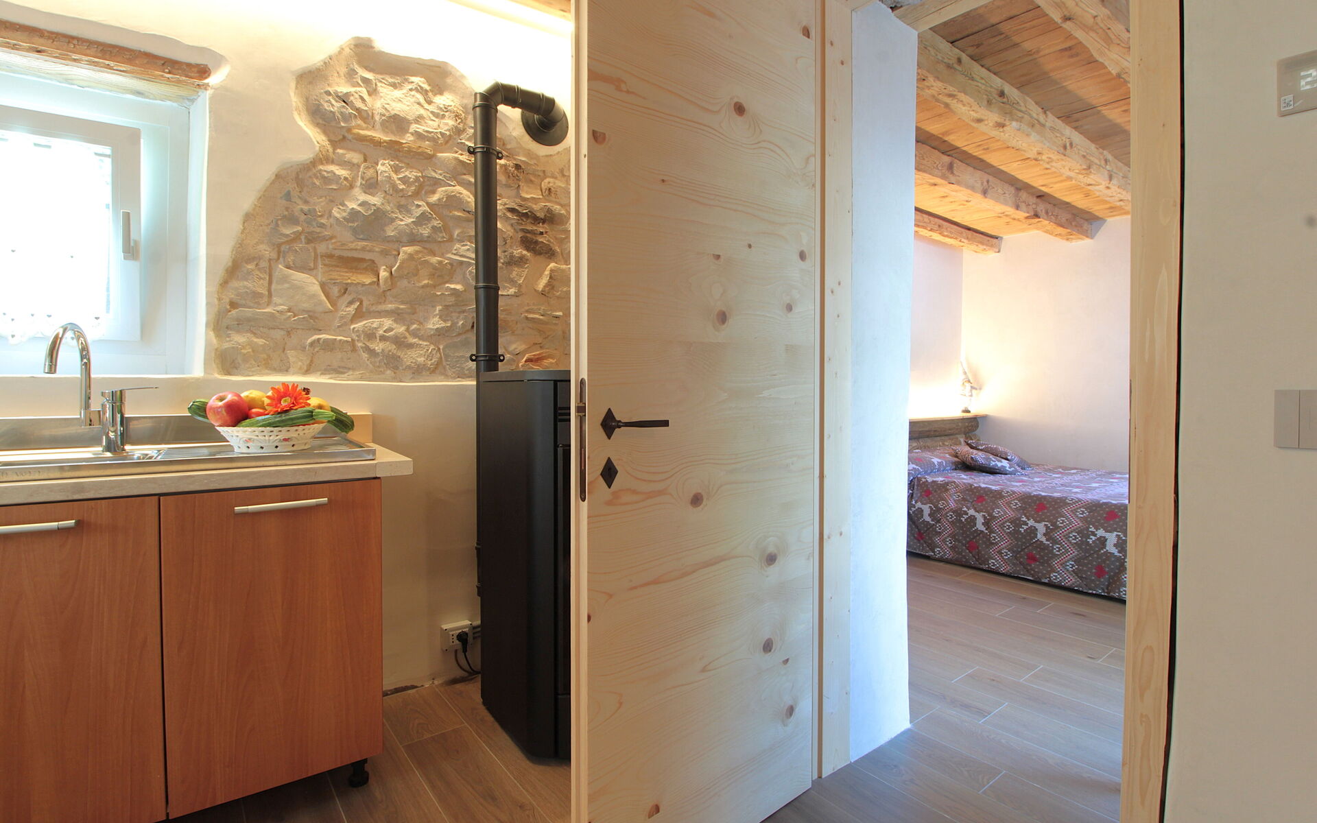 - die Küche , das Esszimmer mit einer zweiten Küche a il larin (eine Feuerstelle, um die man sitzen und über den Tag reden kann), ein Badezimmer mit Dusche und ein Schlafzimmer.