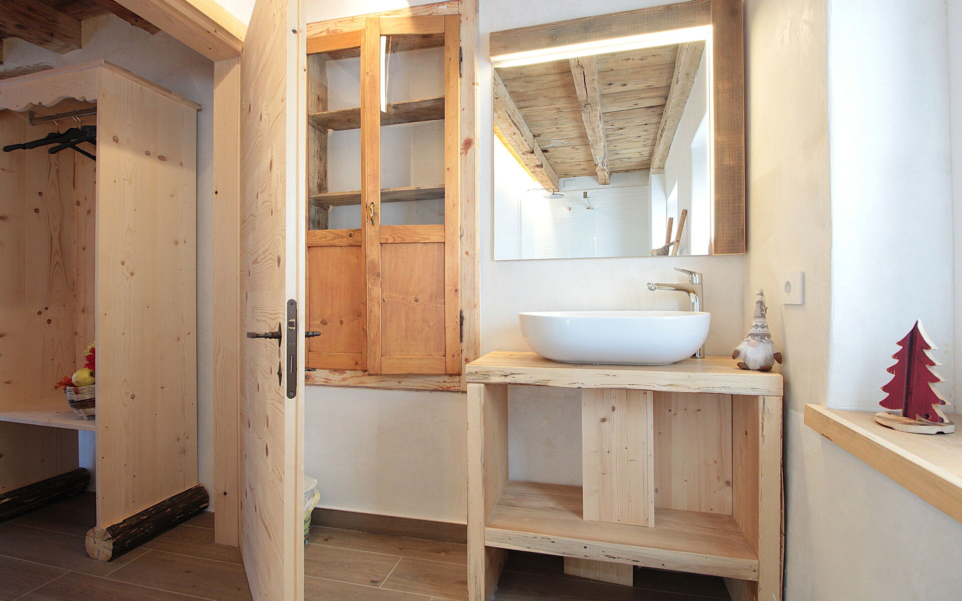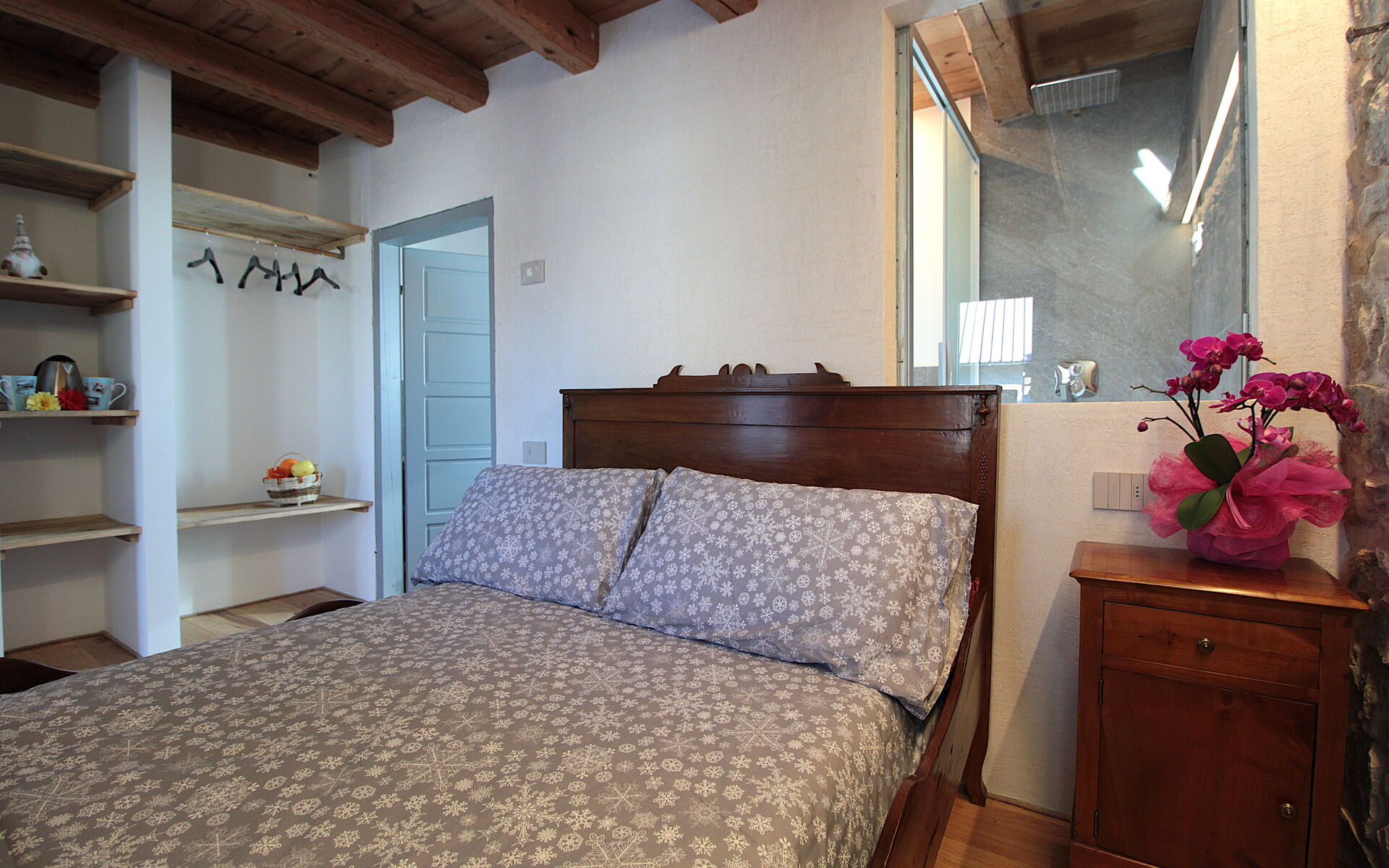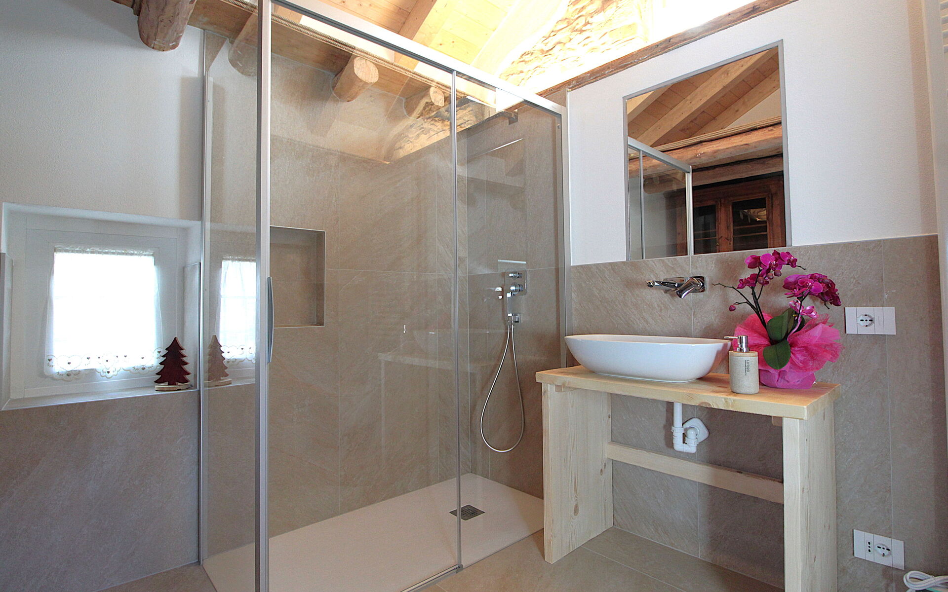 - die Küche , das Esszimmer mit einer zweiten Küche a il larin (eine Feuerstelle, um die man sitzen und über den Tag reden kann), ein Badezimmer mit Dusche und ein Schlafzimmer.