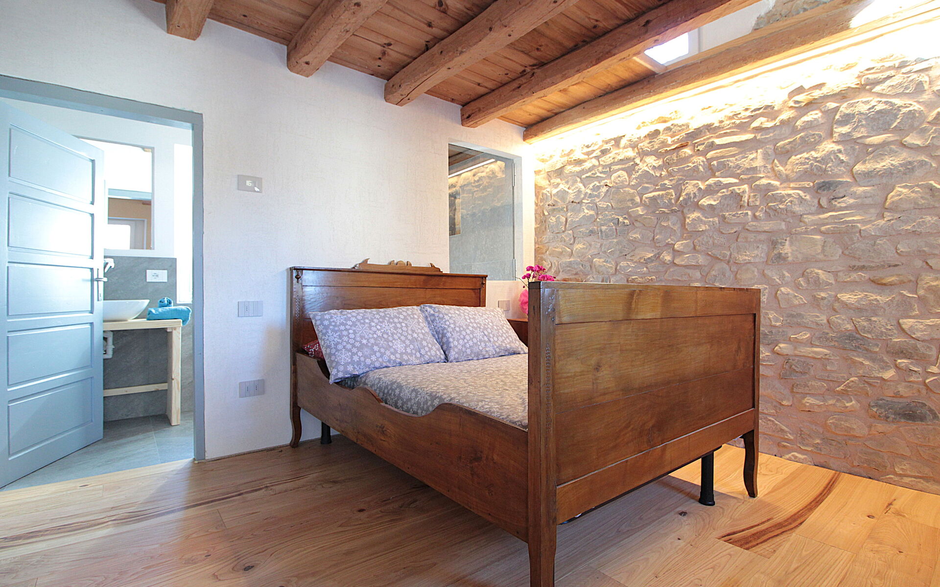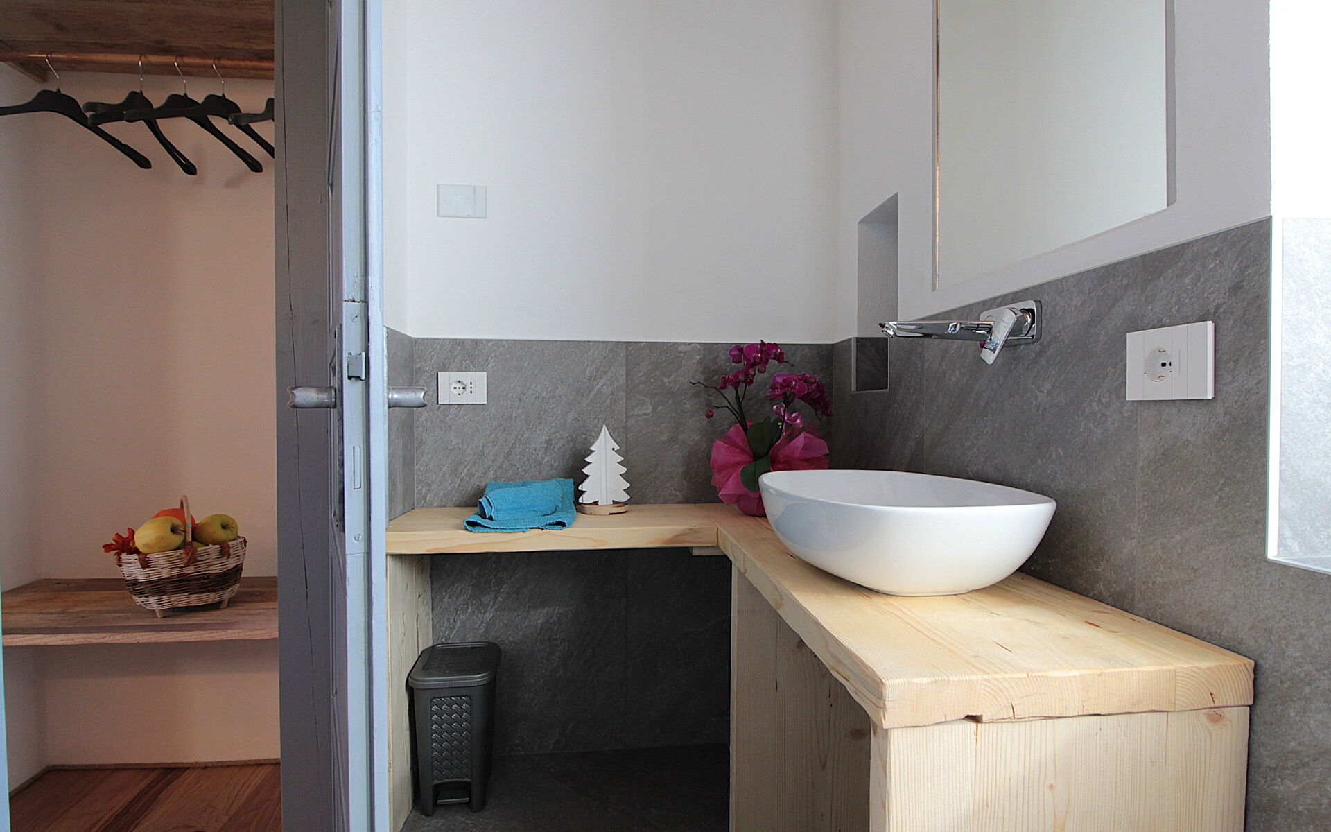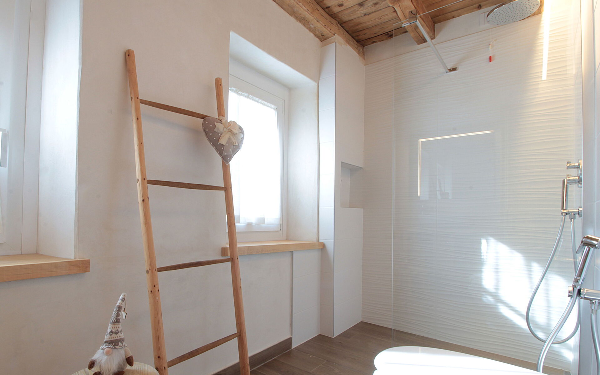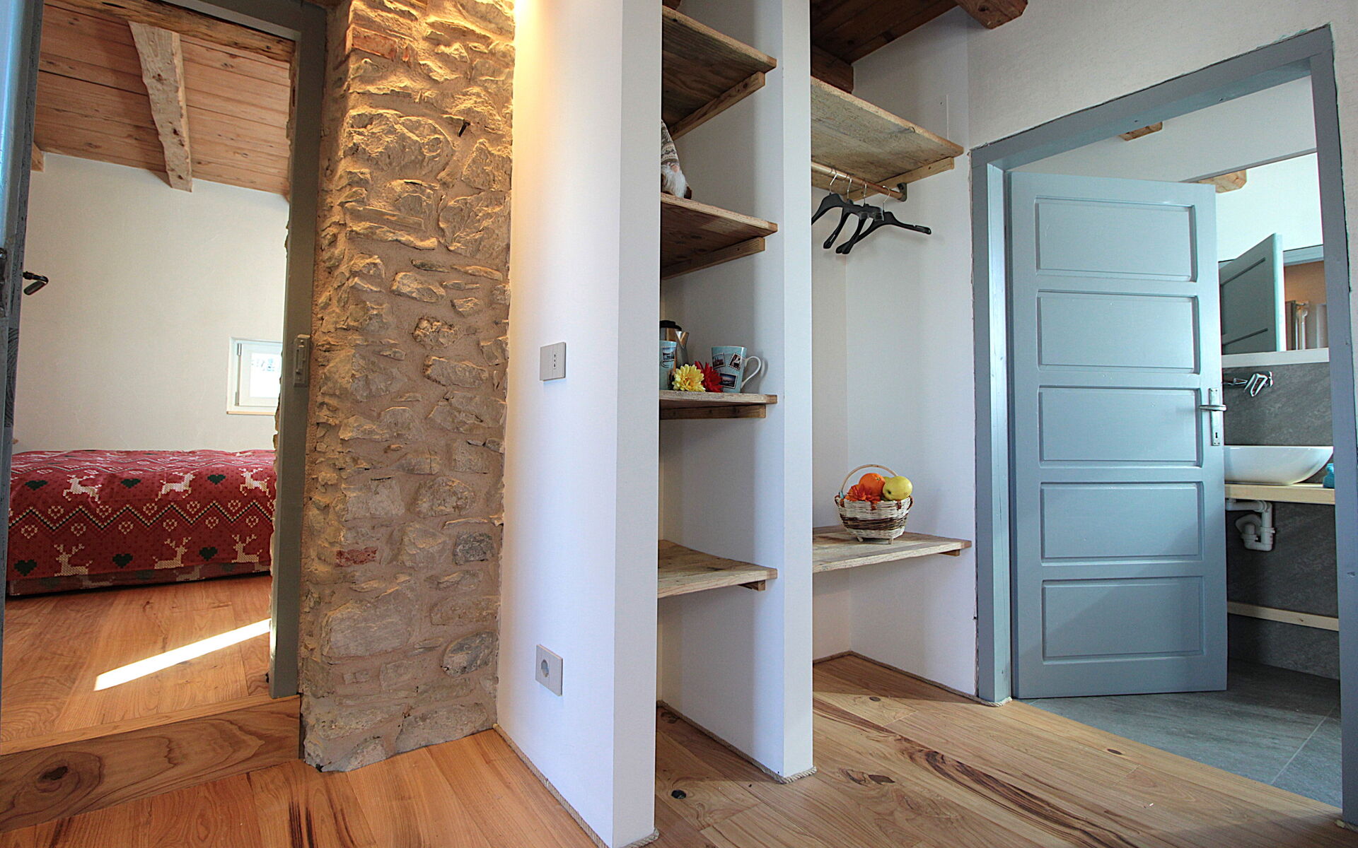 - die Küche , das Esszimmer mit einer zweiten Küche a il larin (eine Feuerstelle, um die man sitzen und über den Tag reden kann), ein Badezimmer mit Dusche und ein Schlafzimmer.