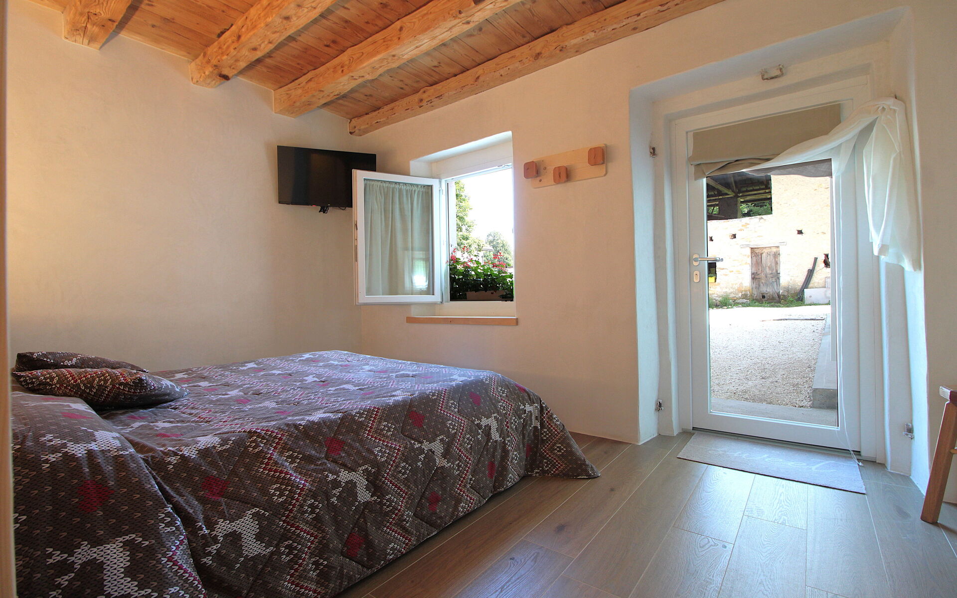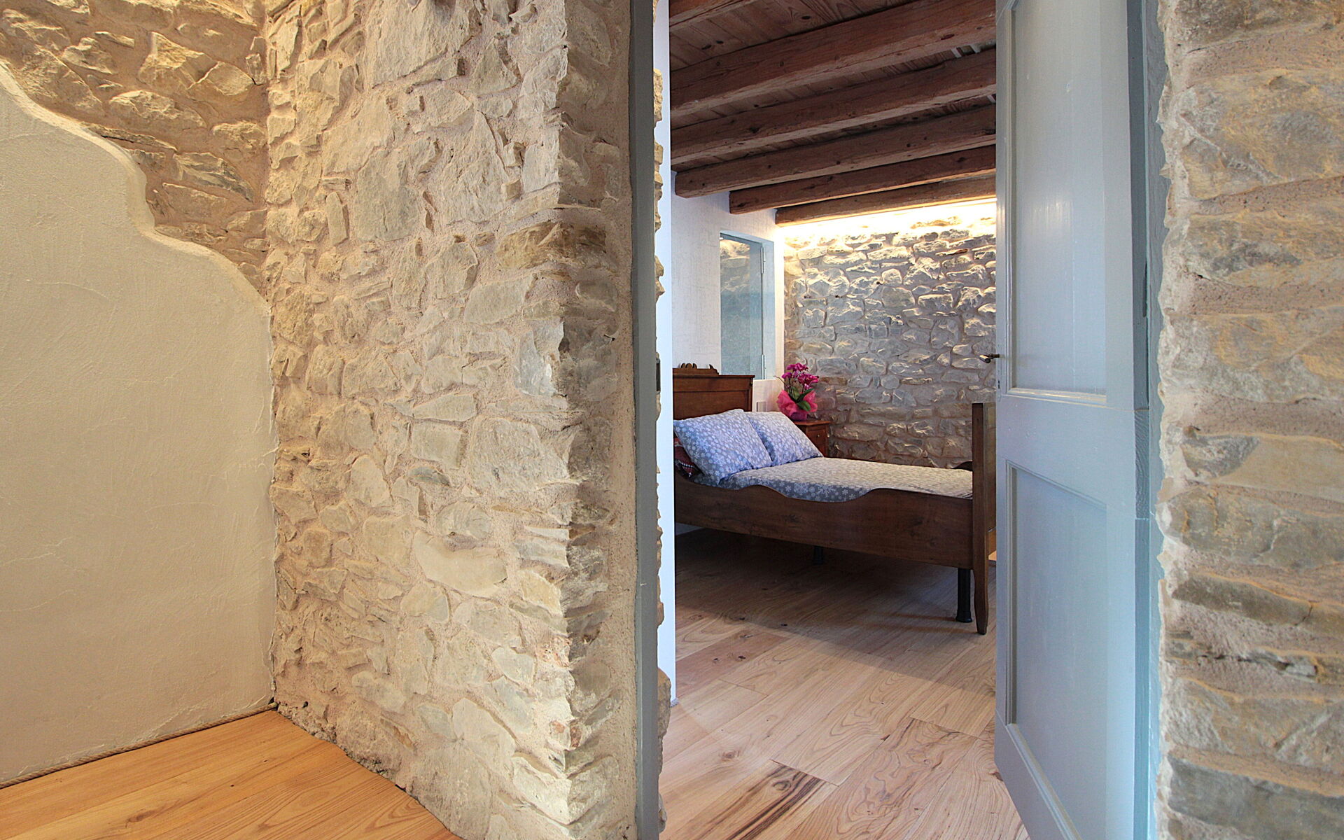- Im ersten Stock gibt es ein Schlafzimmer mit Doppelbett und eine Suite, die aus zwei Zimmern besteht (ein Doppelzimmer und ein Wohnzimmer mit Schlafcouch + Bad mit Dusche).