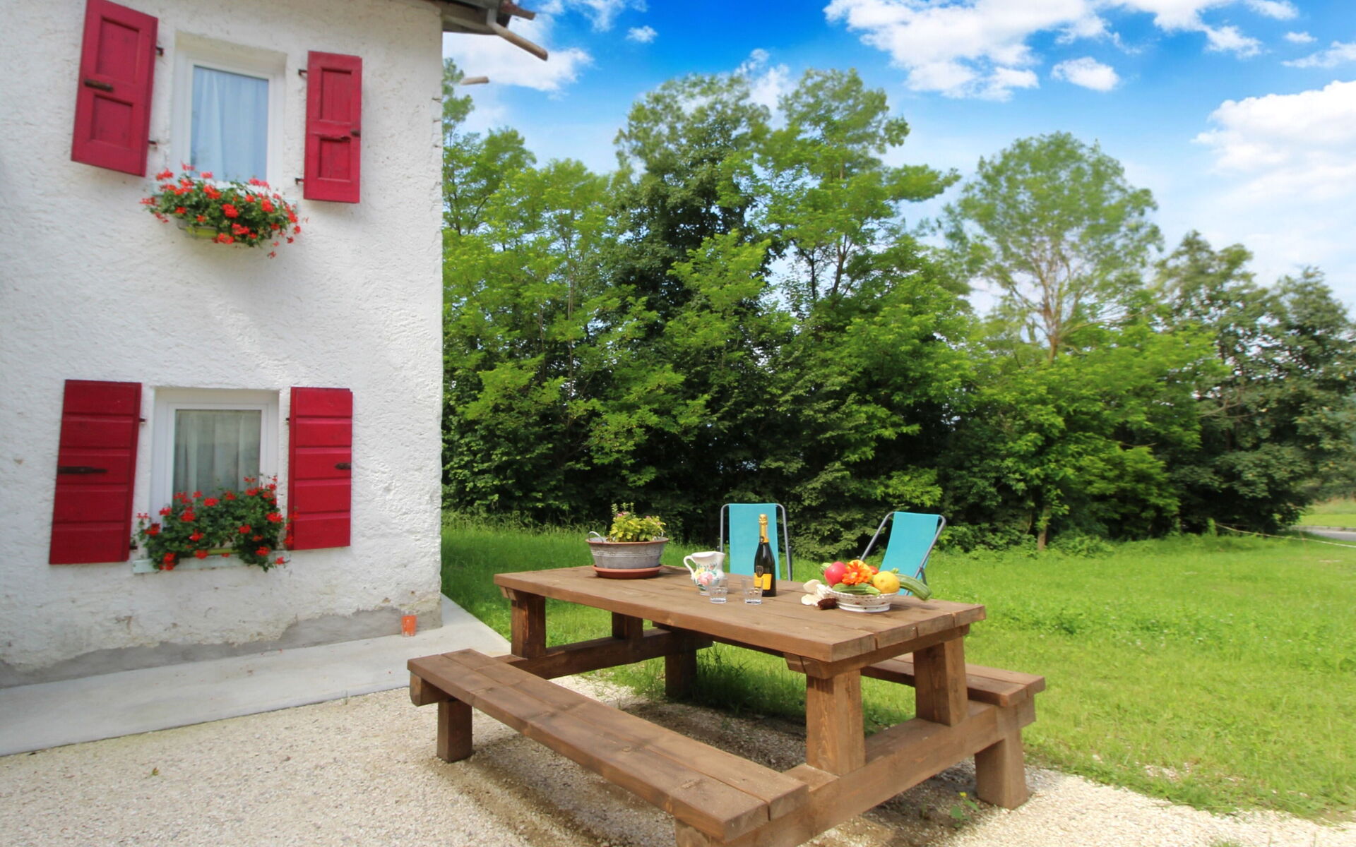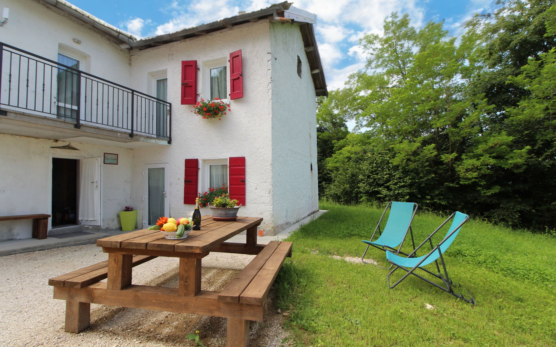 Im Garten, der nur den Gästen zur Verfügung steht, gibt es einen schönen Tisch, an dem man speisen kann. Und wenn Sie keine Lust zum Kochen haben, gehen Sie einfach über die Straße, um eine der Spezialitäten der Hütte zu genießen.