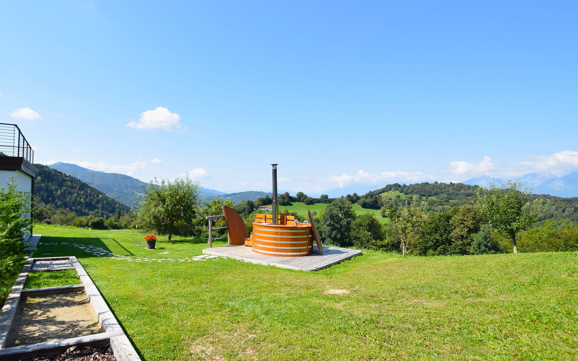 Das Chalet liegt 50 m vom Hotel des Eigentümers entfernt, wo Sie kostenlos Zugang zum Wellness-Center haben und sich zwischen einer finnischen Sauna und einem Heubad entspannen können. Draußen gibt es auch einen Whirlpool, in den Sie eintauchen können, während Sie die herrliche Aussicht auf die Dolomiten von Belluno bewundern, oder einen Ruheraum, in dem Sie sich entspannen und ein gutes Buch lesen können. Wir stellen Ihnen kostenlos 2 E-Bikes zur Verfügung, mit denen Sie die wunderschöne Umgebung erkunden können. Auf Wunsch ist das Frühstück am Morgen inbegriffen, und es besteht auch die Möglichkeit, vor Ort mit der Eigentümerin ein Abendessen gegen Aufpreis zu vereinbaren.
