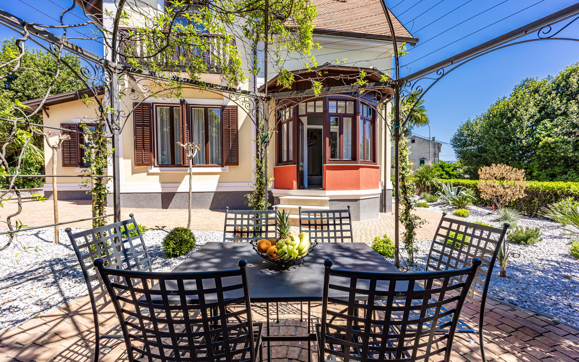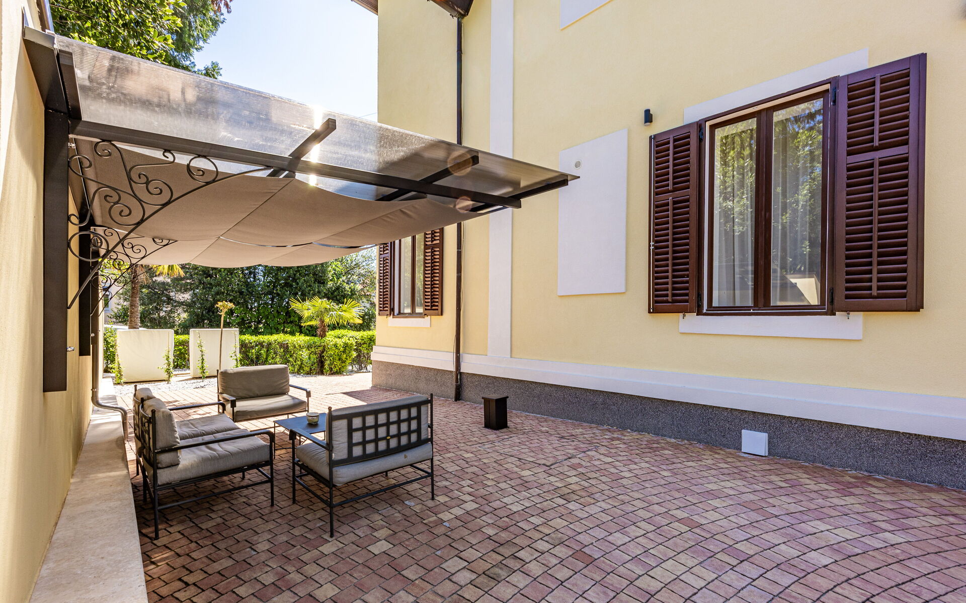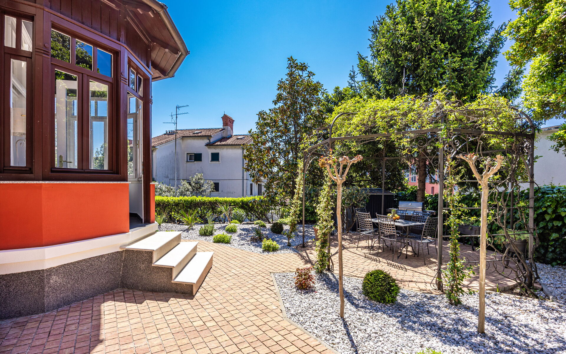 Auf vier Ebenen verteilt, beherbergt die Villa zwei unabhängige Wohneinheiten, jede mit ihrem eigenen Stil und ihrer eigenen Atmosphäre. Besonders hervorzuheben ist das charmante Apartment Nia im Erdgeschoss, das sich durch den direkten Zugang zum Garten und zu einer privaten Terrasse mit Blick ins Grüne der Anlage auszeichnet – ein seltenes Privileg im Zentrum von Opatija.