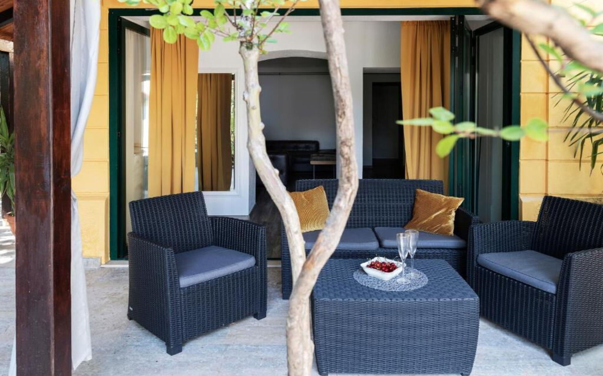 L'appartement se compose d'une chambre, d'une cuisine, d'une salle de bains et d'un salon avec un grand espace extérieur équipé. Il peut accueillir jusqu'à 4 personnes, ce qui est parfait pour les familles ou les couples.