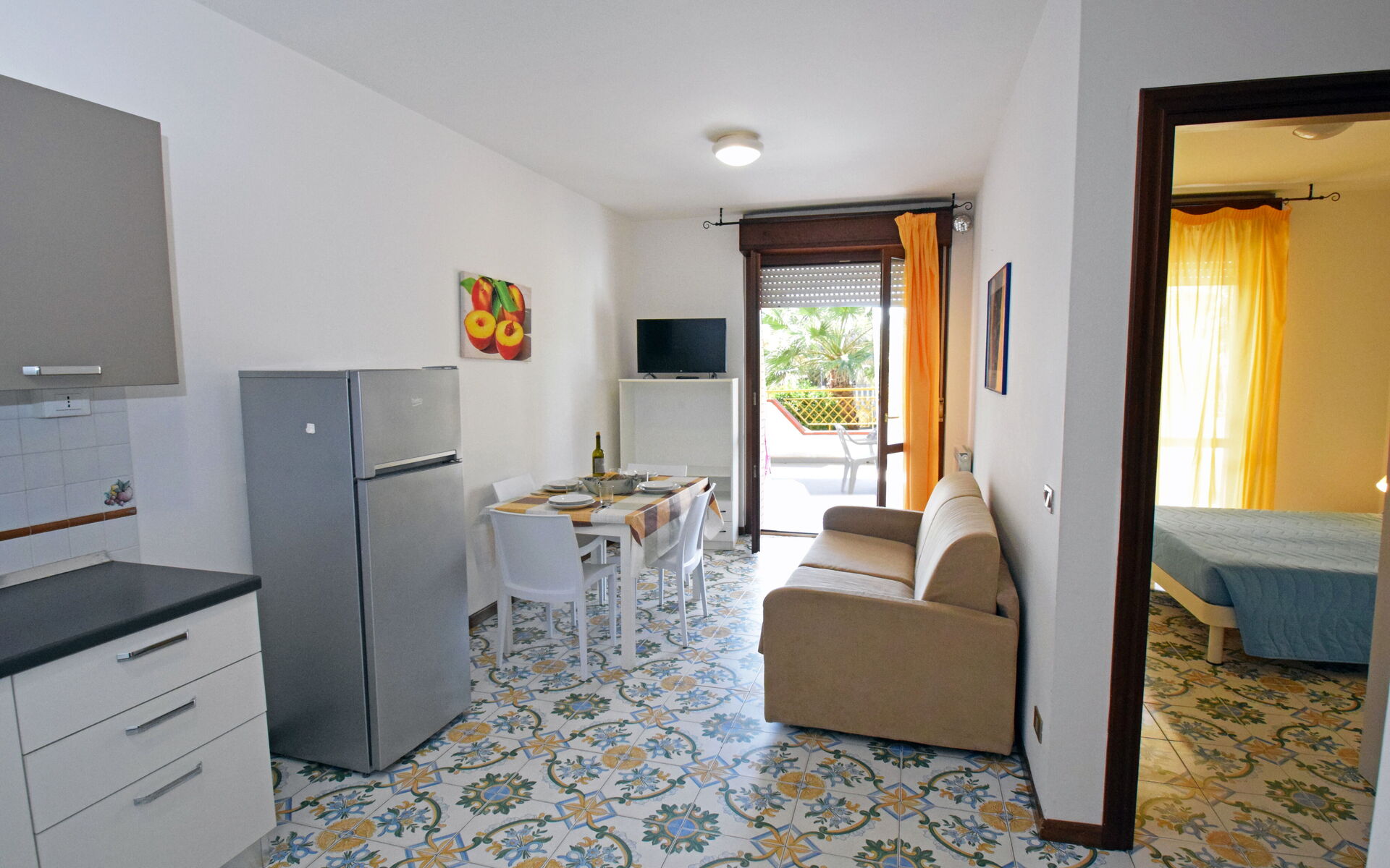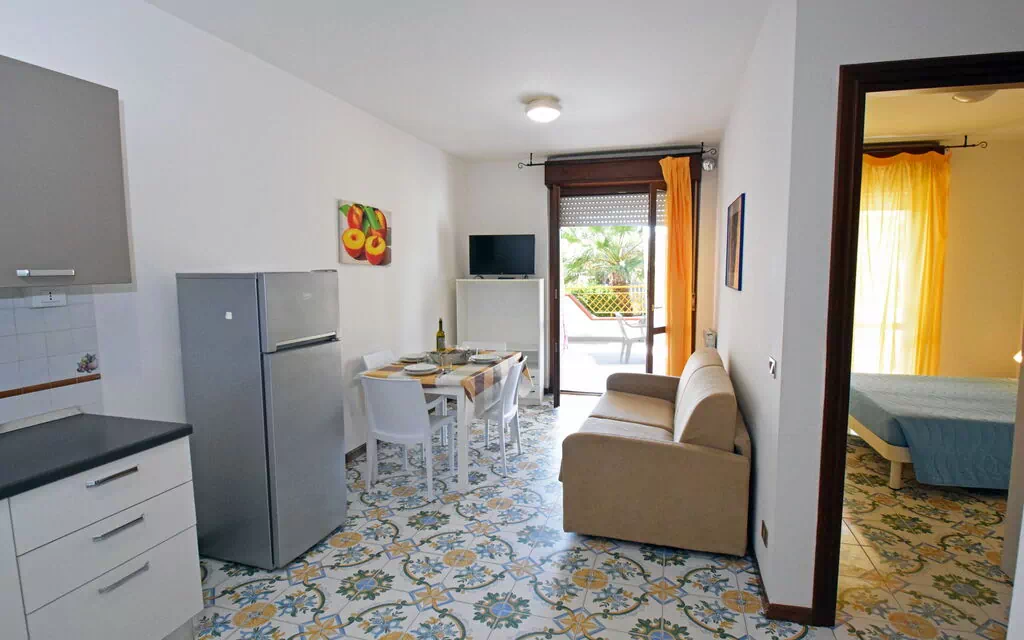 Appartements meublés de façon moderne avec kitchenette, salle de bain privée, balcon ou, dans certains cas, jardin.
