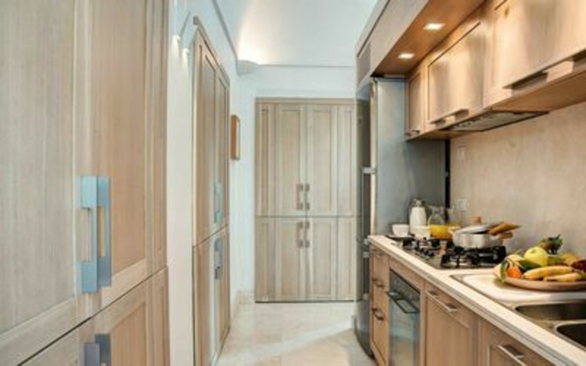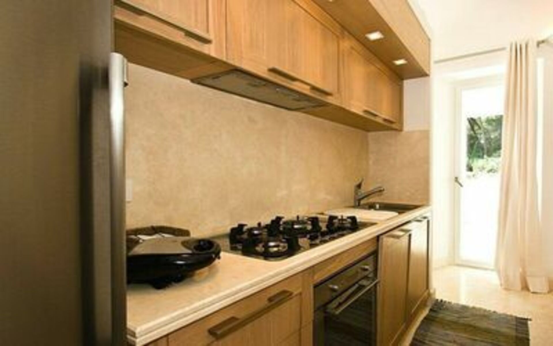 Si vous préférez dîner en plein air avec une magnifique vue sur la mer, profitez de la grande terrasse décorée d’une table en marbre et équipée de stores automatiques. Pour les passionnés de cuisine, la cuisine compacte, située à côté de la salle à manger, est entièrement équipée avec tous les ustensiles et appareils nécessaires, notamment une plaque de cuisson à gaz à 5 feux, un four, un micro-ondes, un réfrigérateur/congélateur et un lave-vaisselle.