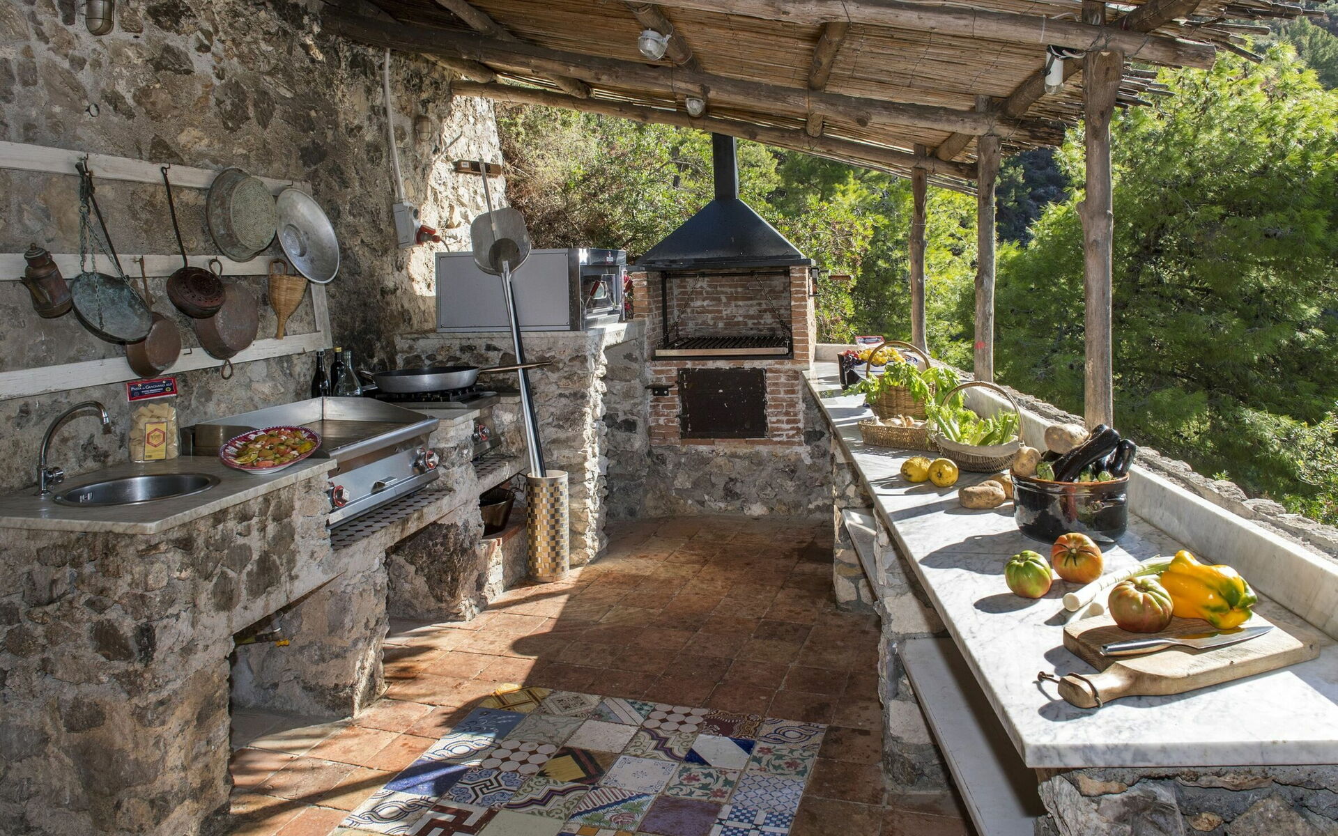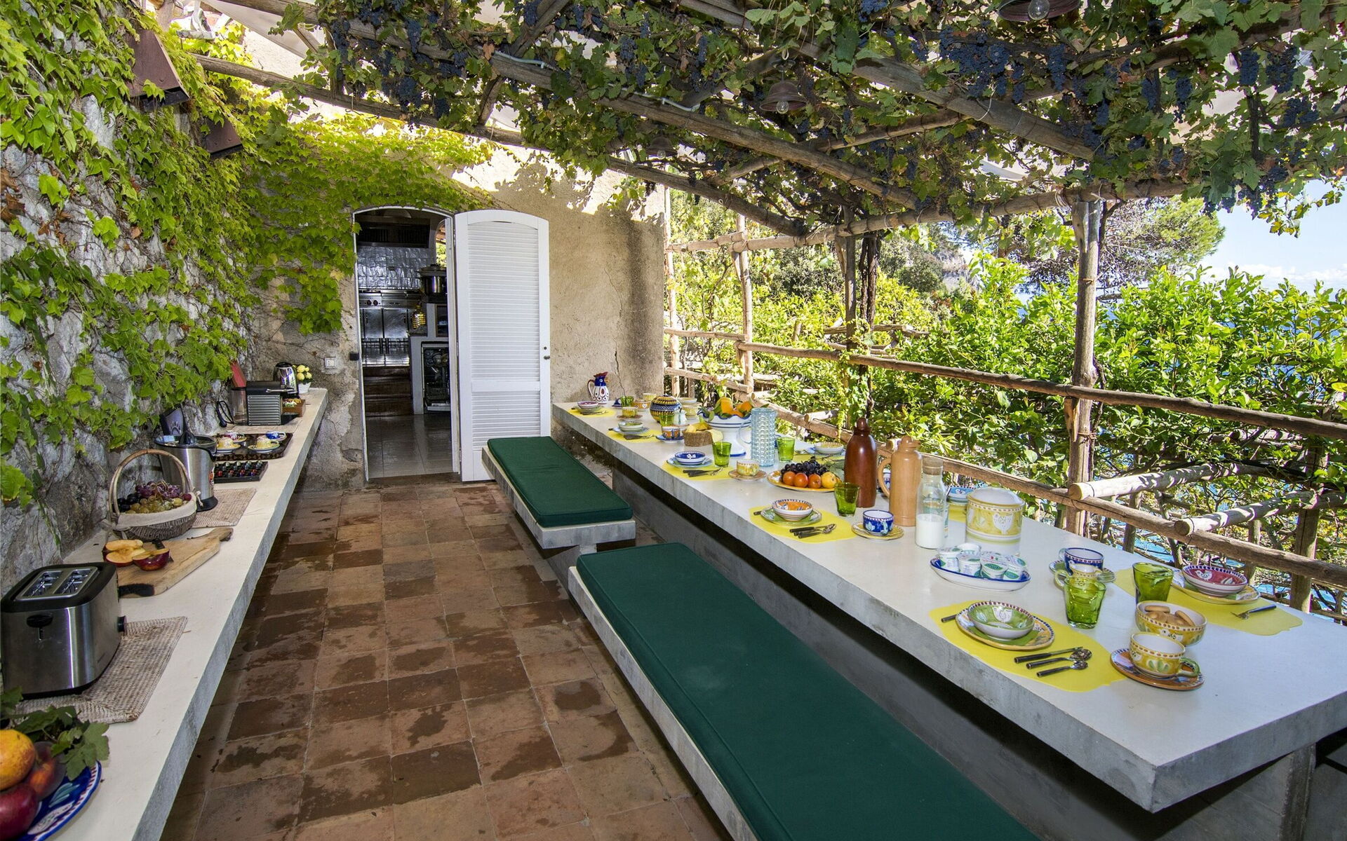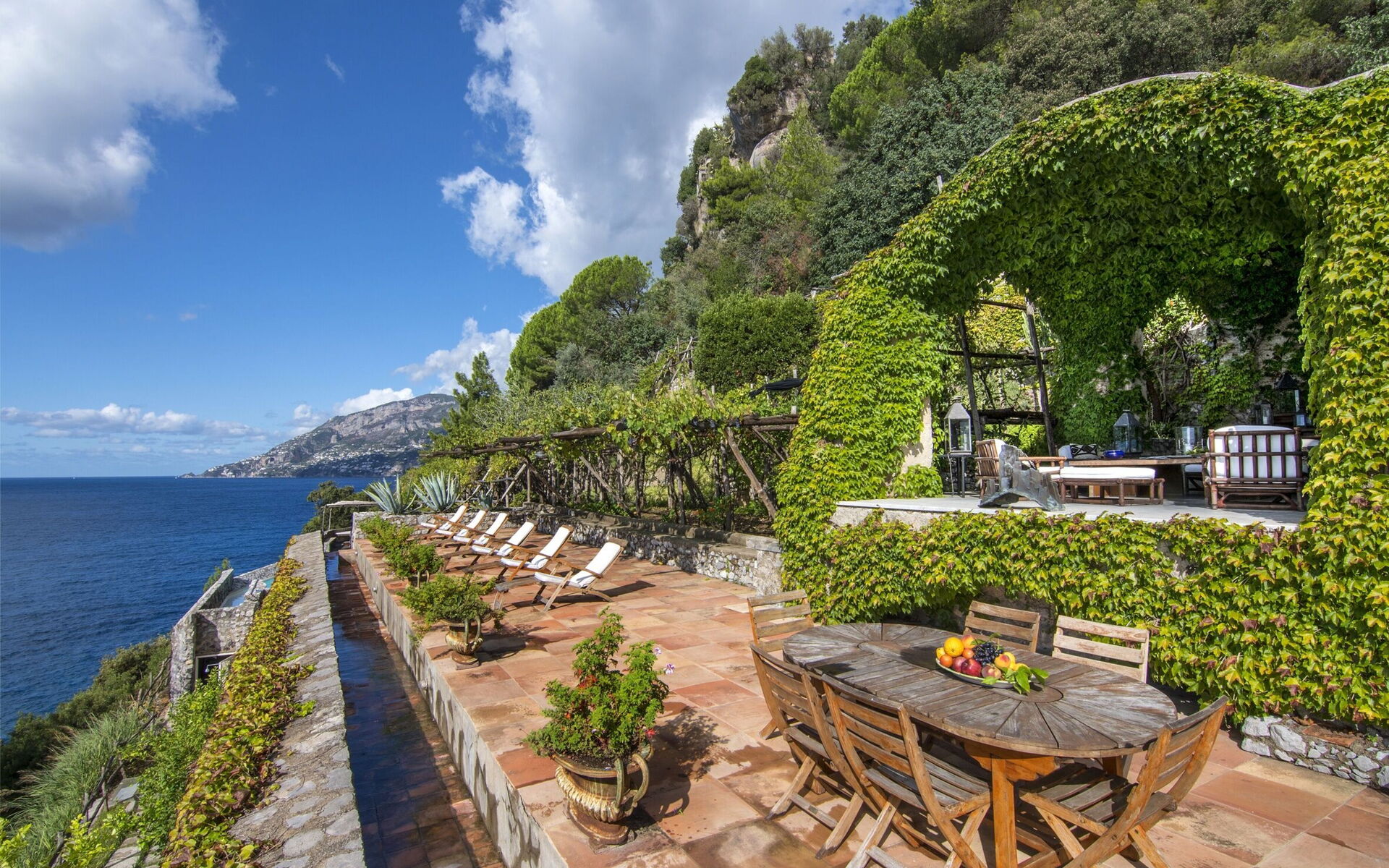 La villa est entourée de citronniers et de pylônes chargés d'agrumes. Un chemin mène de la villa à une crique rocheuse, incluse dans la propriété et pour l'usage privé des invités, tandis que pour ceux qui préfèrent profiter de l'eau et de la vue d'une plus grande hauteur, l'une des terrasses abrite une eau salée panoramique ingénieusement excavée piscine dans la paroi rocheuse. Ses hôtes auront l'usage exclusif d'une fantastique piscine de 20 mètres de long et 4 mètres de large, avec de l'eau de mer qui semble plonger dans les eaux bleues de la côte amalfitaine, ainsi qu'un jardin privé verdoyant. Enfin, il y a aussi une salle de gym dans la structure.
