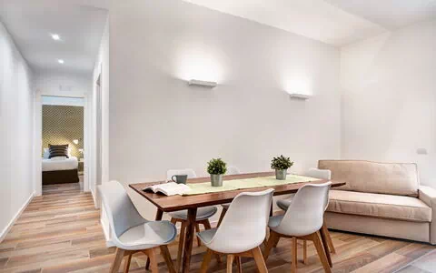 Sorrento Golden Apartment peut accueillir jusqu'à huit personnes et dispose de trois chambres doubles / lits jumeaux, chacune avec salle de bains privative et d'un confortable canapé-lit pliant. Les spacieuses salles de douche attenantes sont dotées de douches à l'italienne équipées de douches à effet pluie et à main réglables, de toilettes et d'un lavabo de conception moderne. Pour ceux qui veulent une détente totale, la chambre principale offre une baignoire dans la chambre afin que vous puissiez prendre un long bain apaisant, une serviette et rouler dans le lit.