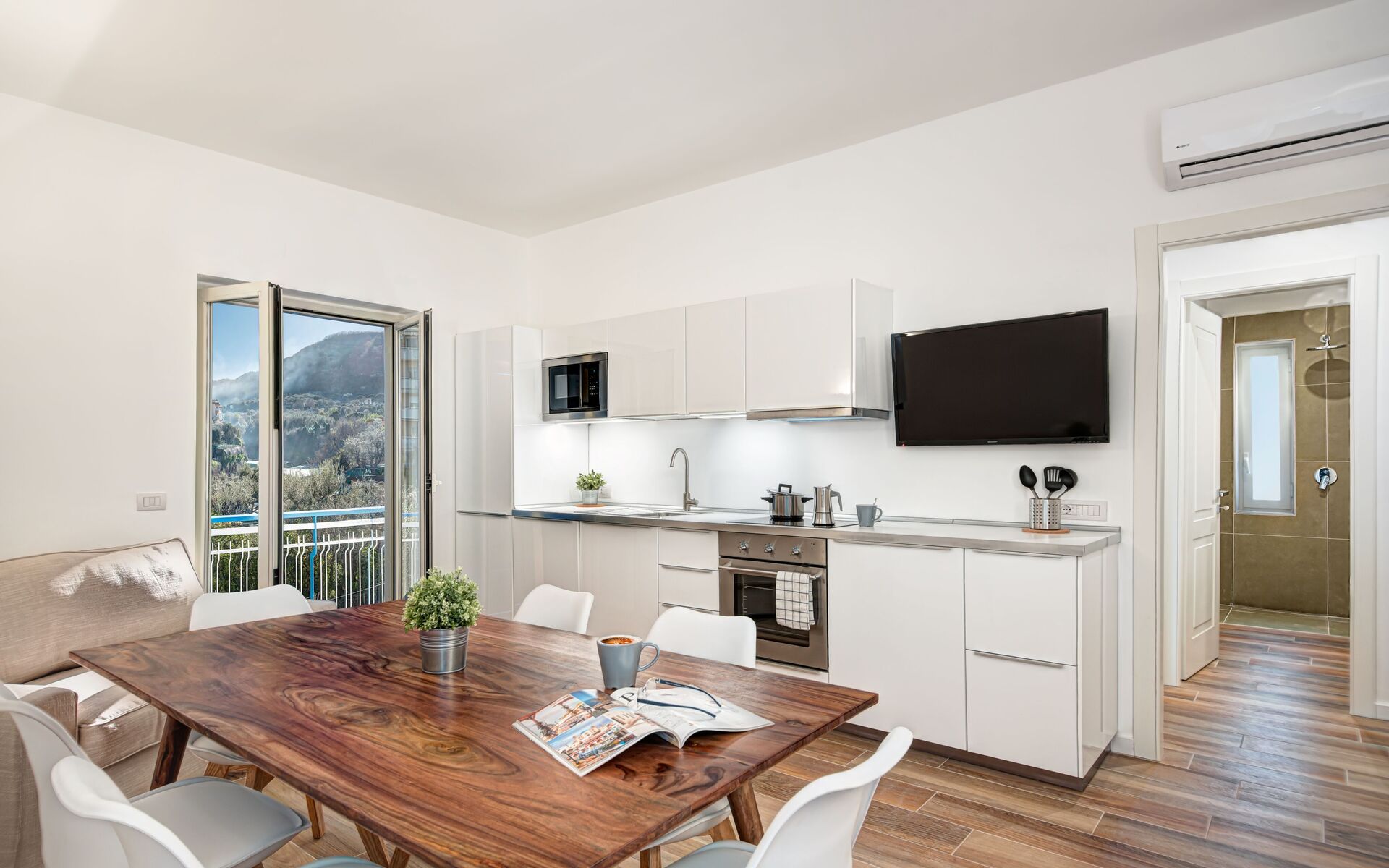 L'appartement est soigneusement approvisionné avec une gamme complète de produits de salle de bains de luxe Prija, d'aromathérapie saisonnière et de linge de lit Andrea Caprai à 800 fils, faisant de votre séjour au Sorrento Golden Apartment une expérience vraiment luxueuse.