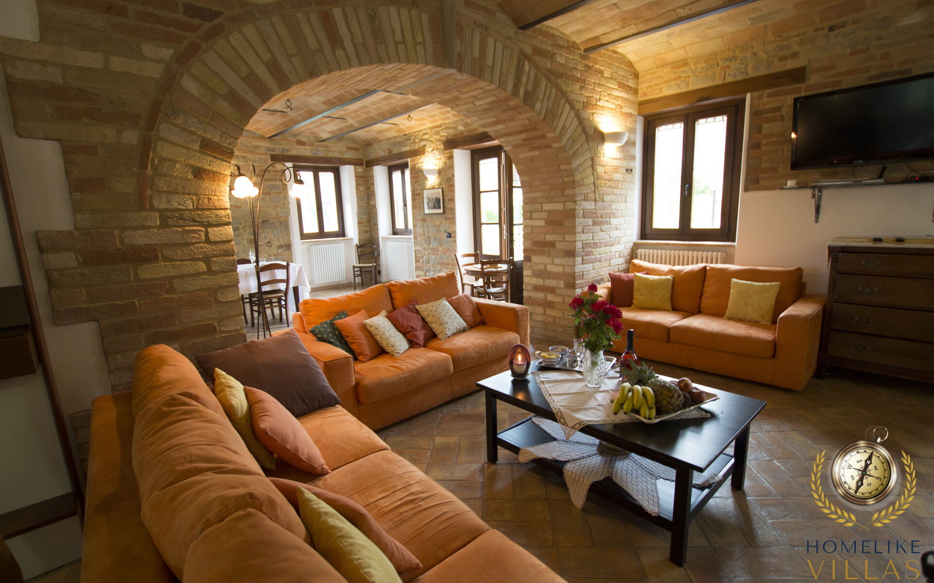 Les six chambres de la Villa, pouvant accueillir confortablement jusqu'à 18 personnes, sont grandes et lumineuses et sont équipées de salles de bain privées et de tous les autres conforts. La structure entière est construite avec des briques et des pierres apparentes, des détails et des finitions en bois et fer forgé. Dans les espaces extérieurs, il y a plusieurs espaces de détente, un espace barbecue avec four à bois attenant et une aire de jeux pour les enfants. A l'extérieur également, accessible par un escalier raffiné, il y a une belle piscine entourée d'un patio pour bronzer. Tout autour, il y a des oliviers centenaires et d'autres arbres ornementaux.