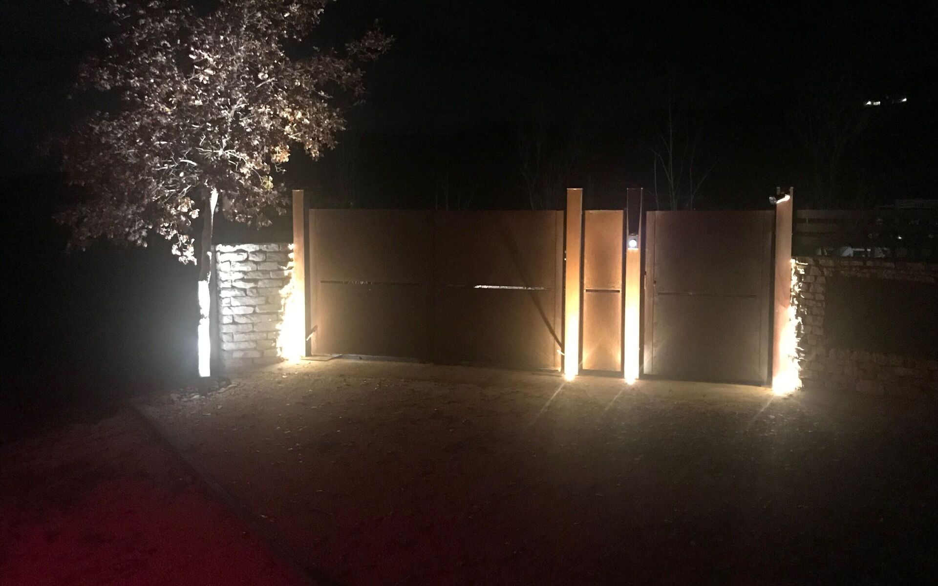 À l'intérieur de la propriété, juste après le portail d'entrée. Il est recouvert d'un auvent pour mettre la voiture à l'abri du soleil ou de la pluie.