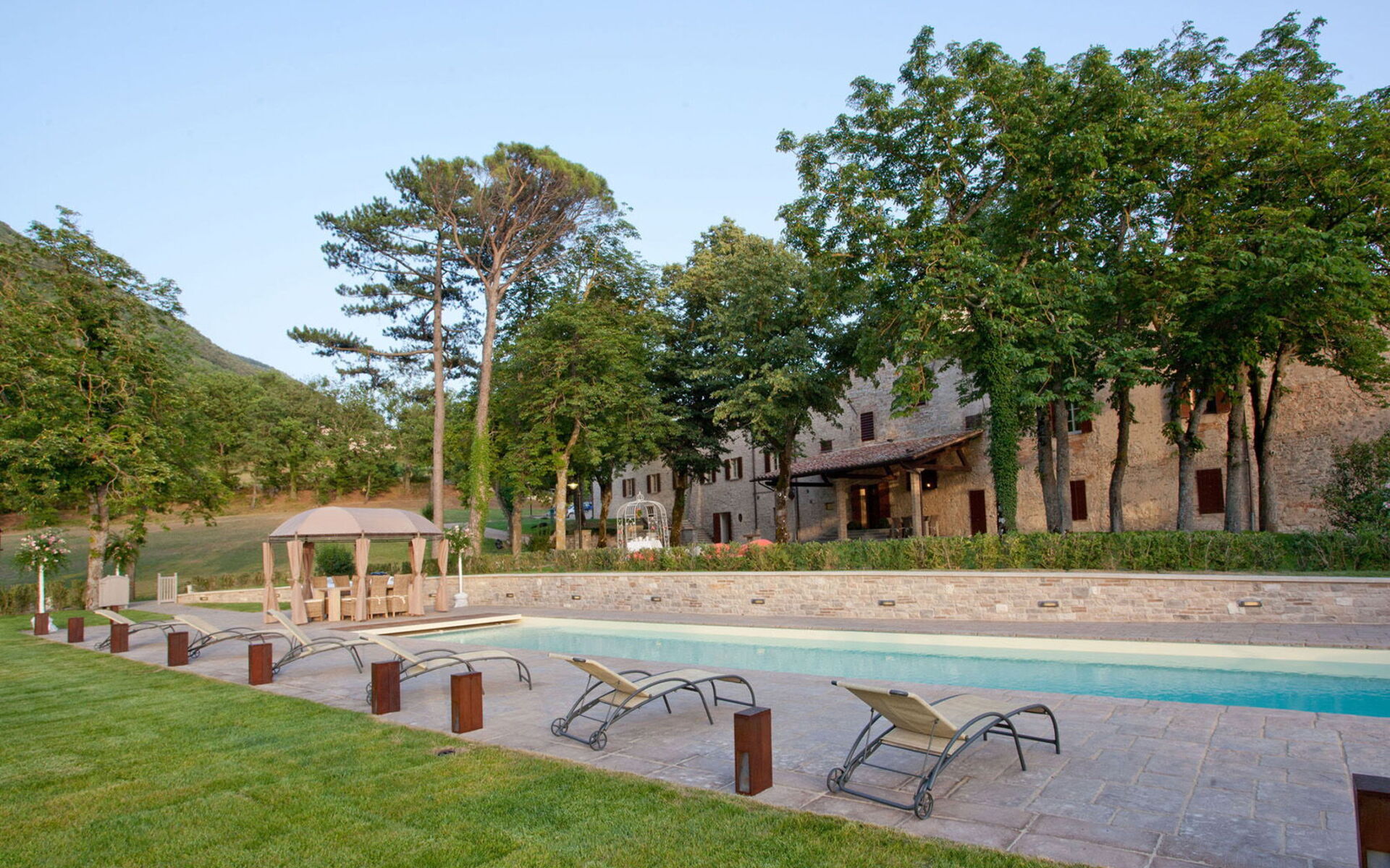 Meuble de jardin, Douche, pavillon, Internet WiFi, Piscine, 6 Chaise longue, table à manger