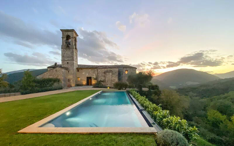 Remarquez l'extraordinaire église du XIe siècle ornée de fresques, qui offre un cadre parfait pour les mariages et les événements spéciaux.