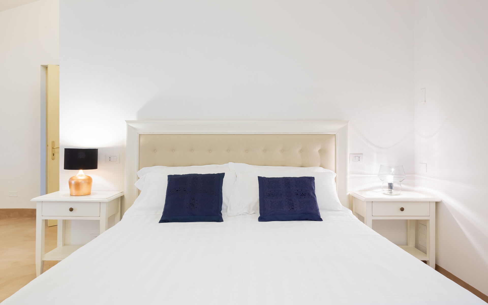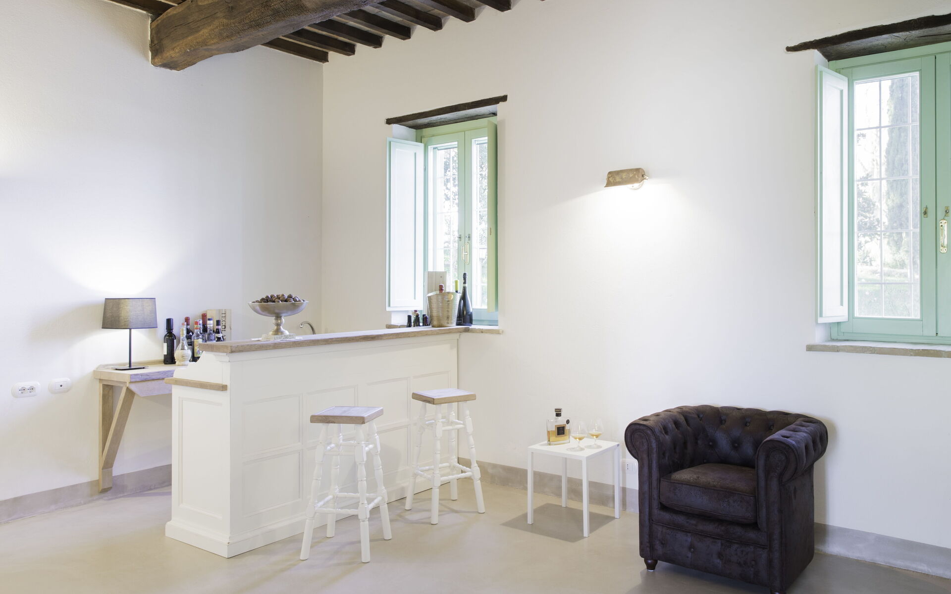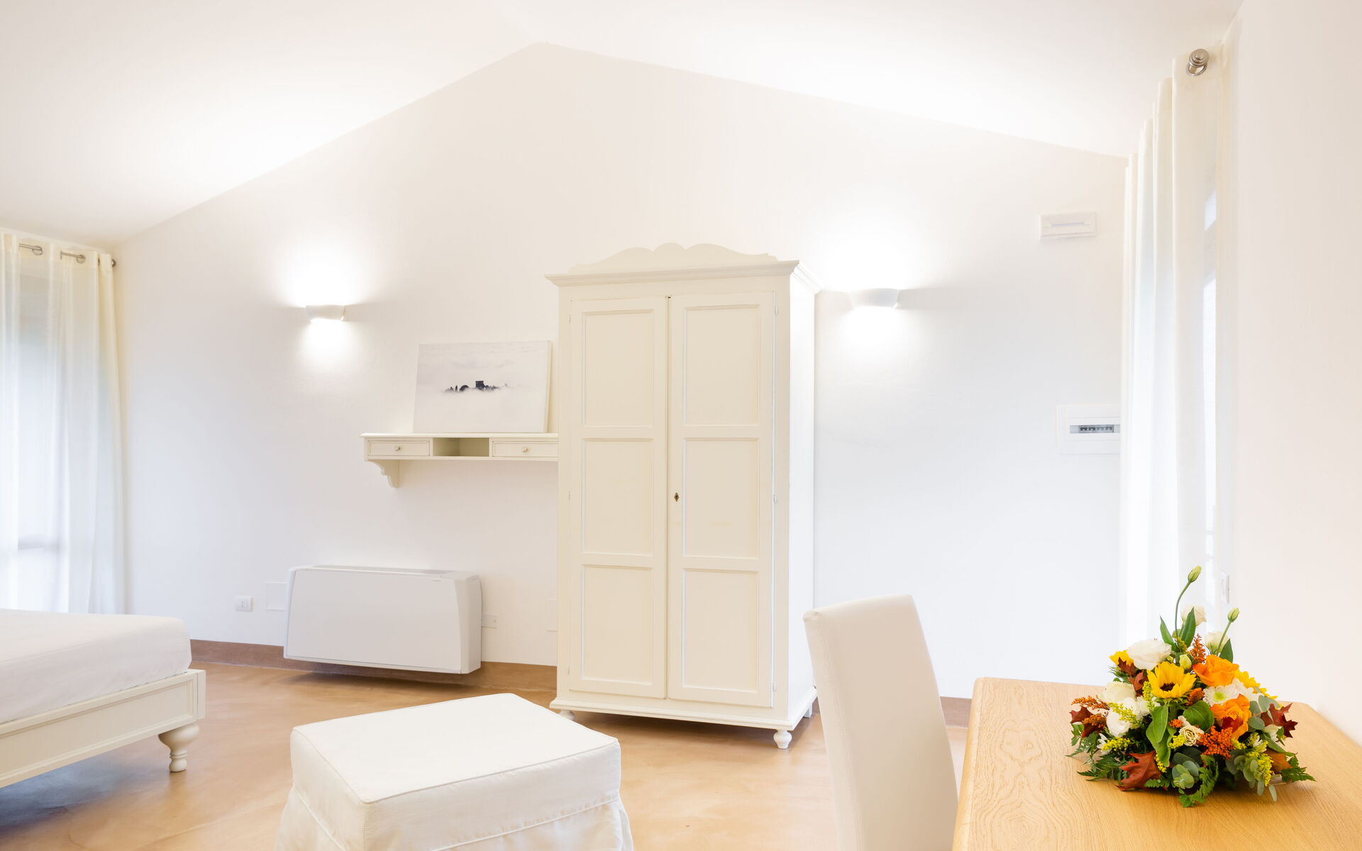 Au deuxième étage, il y a deux suites indépendantes composées de grandes chambres doubles avec salle de bain privée et de pièces à vivre avec kitchenette.