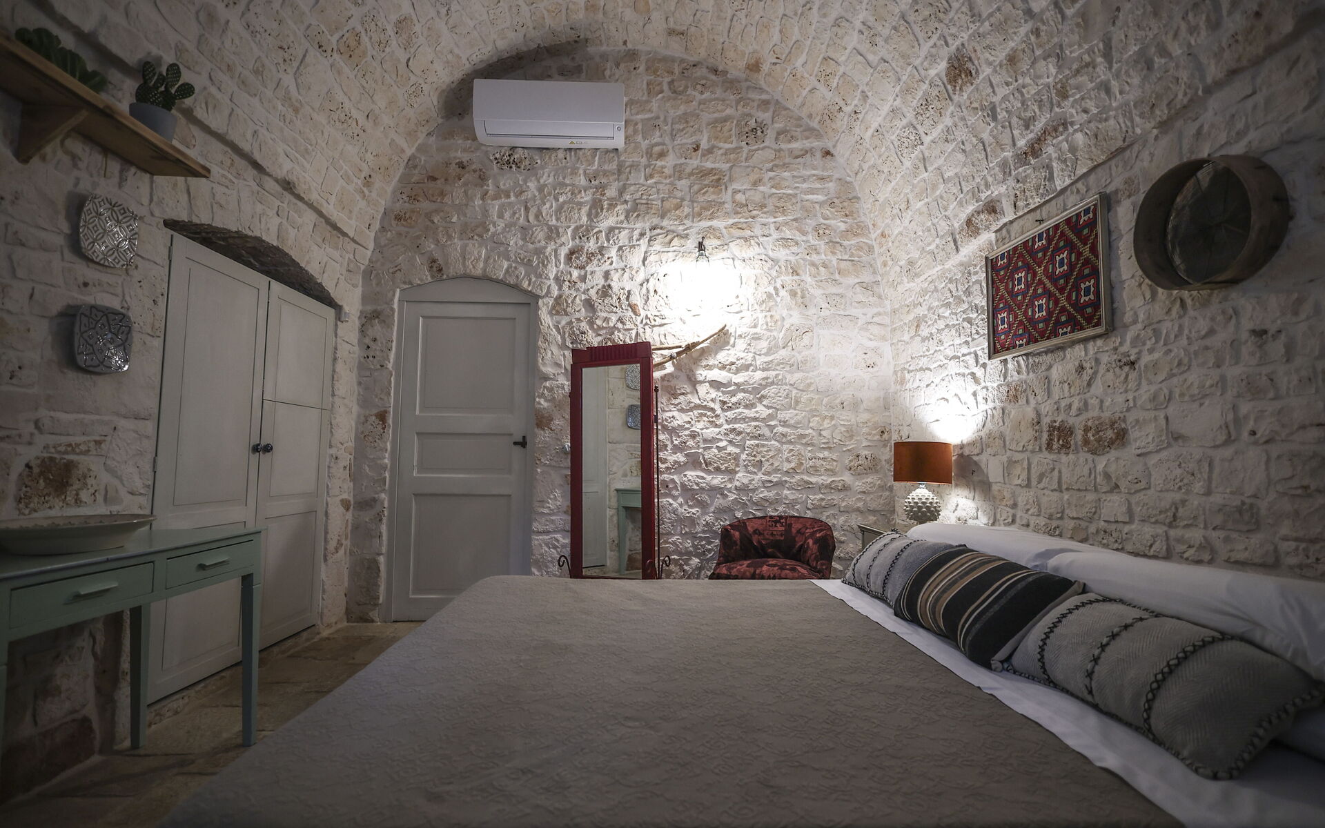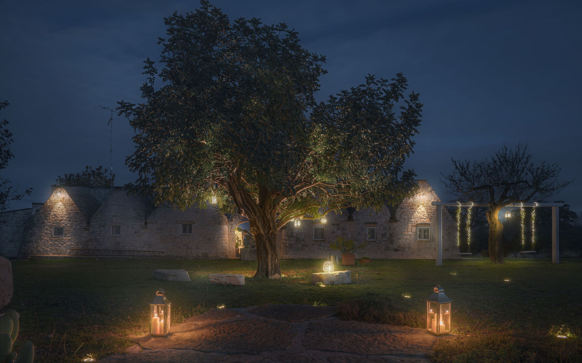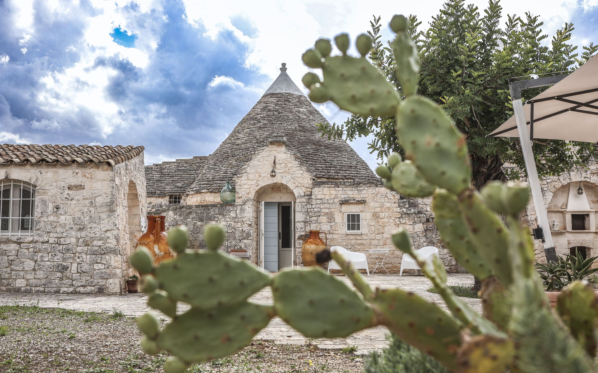 Trulli Suites Monopoli est un ravissant ensemble de trulli du XVIIIᵉ siècle avec piscine, niché dans la campagne des Pouilles, au cœur d’un paysage naturel composé d’oliviers centenaires, de caroubiers et d’arbres fruitiers. Un véritable havre de paix, idéal pour ceux qui recherchent détente, authenticité et charme, à quelques minutes de Monopoli.