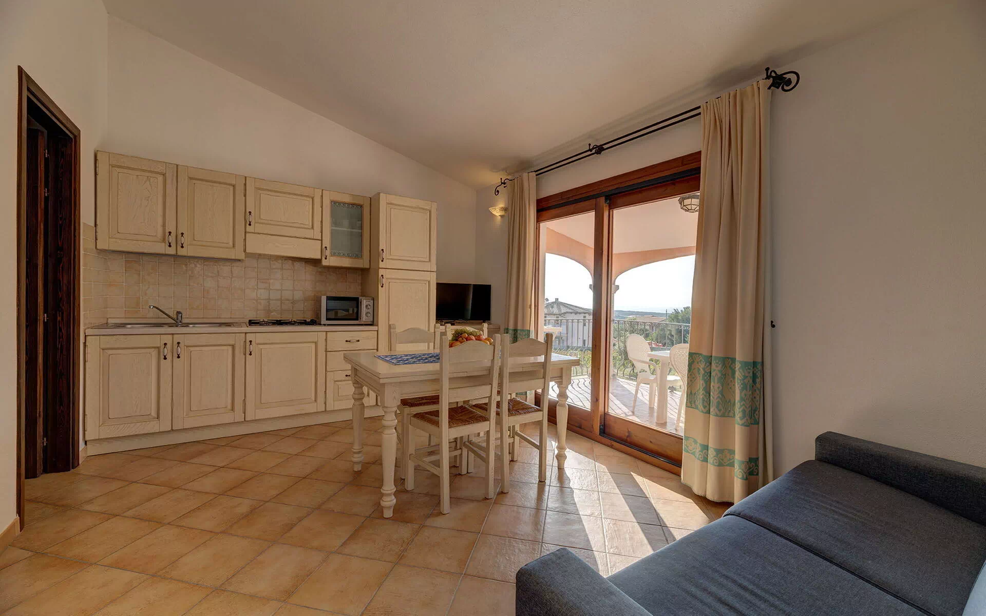 L'appartement dispose d'un salon avec kitchenette et canapé-lit double, d'une chambre double, d'une salle de bain avec douche. L'air conditionné est disponible dans le salon, l'internet wifi. Balcon ou patio équipé. Bien que les appartements soient du même type, ils peuvent différer en termes d'ameublement et d'équipement. Une pénalité de 50,00 euros est prévue pour le non nettoyage de la kitchenette et une autre de 50,00 euros pour le non traitement des déchets. machine à café à capsules (seules les capsules vendues à la réception peuvent être utilisées)