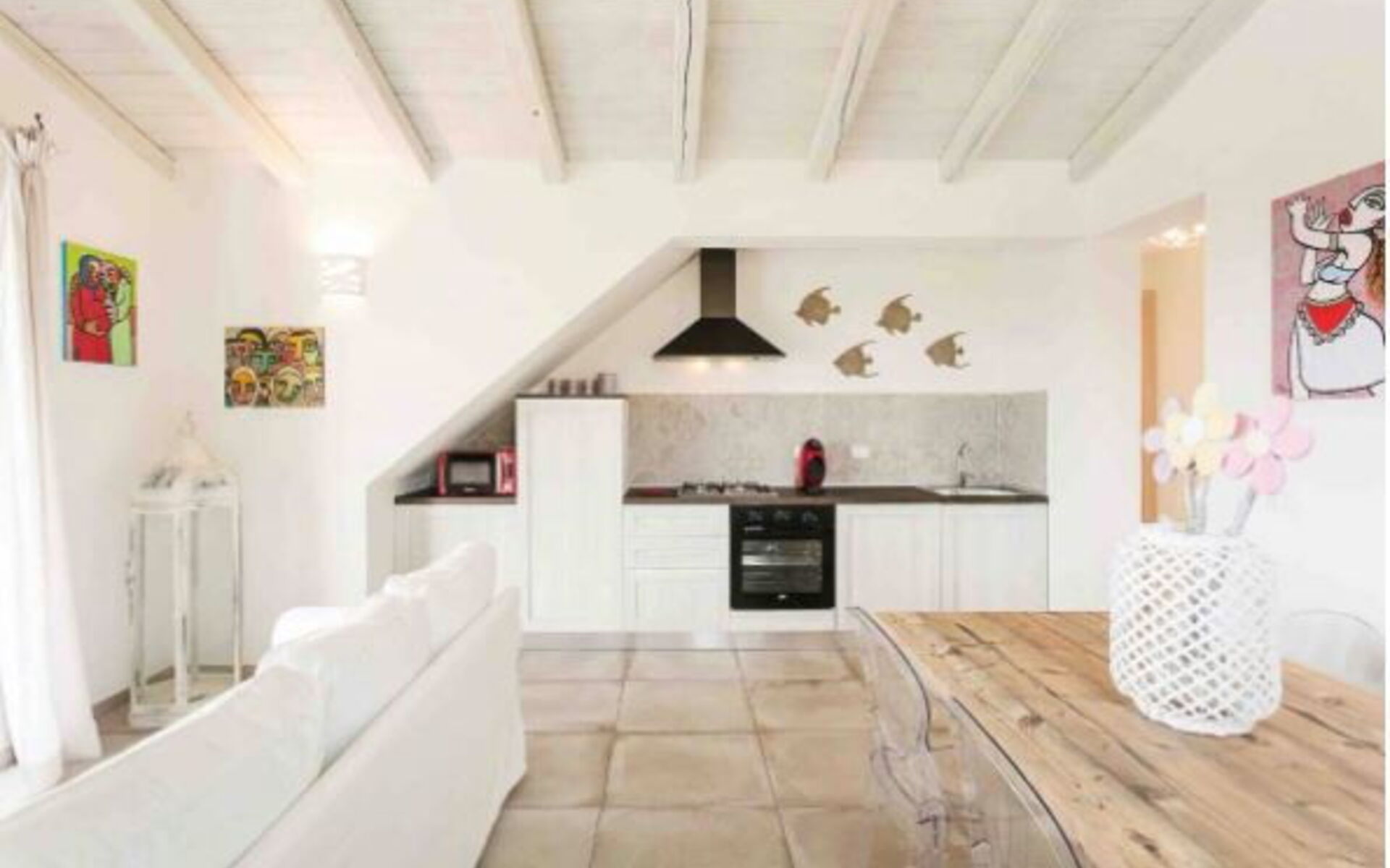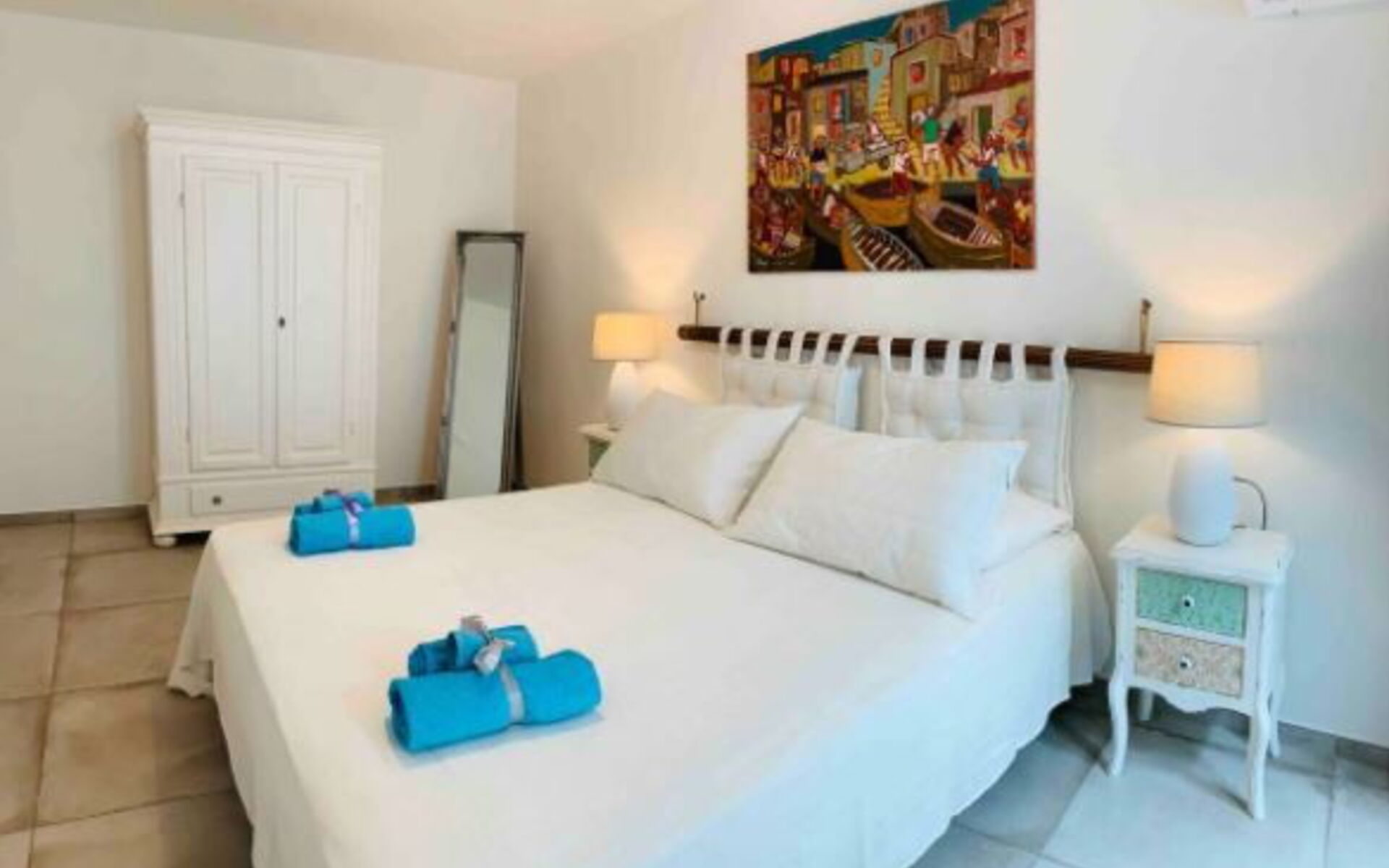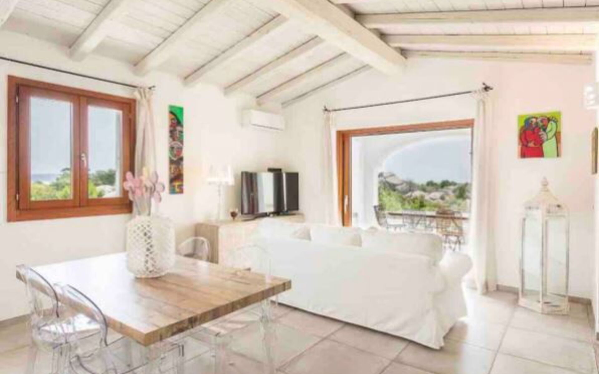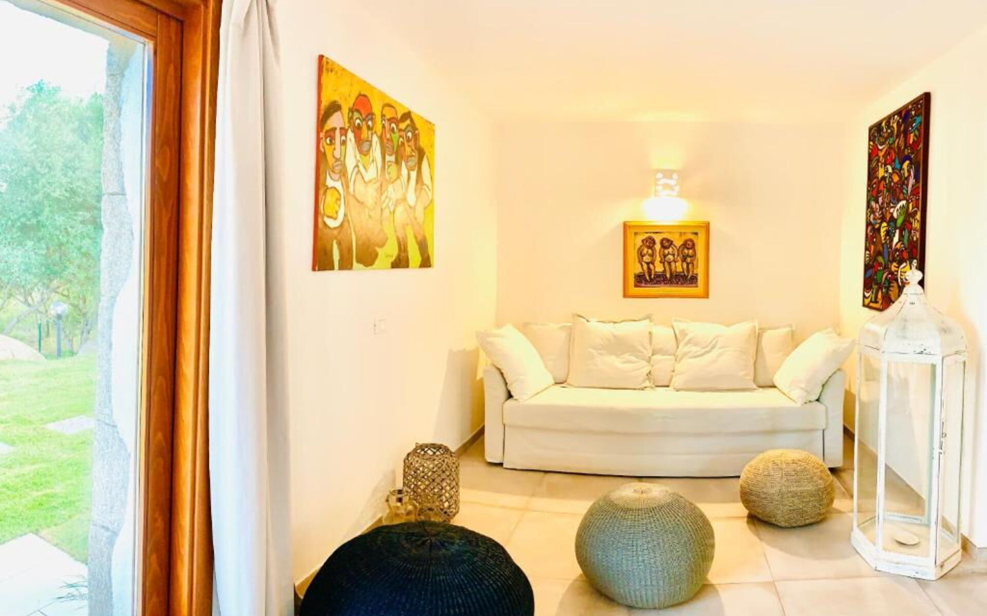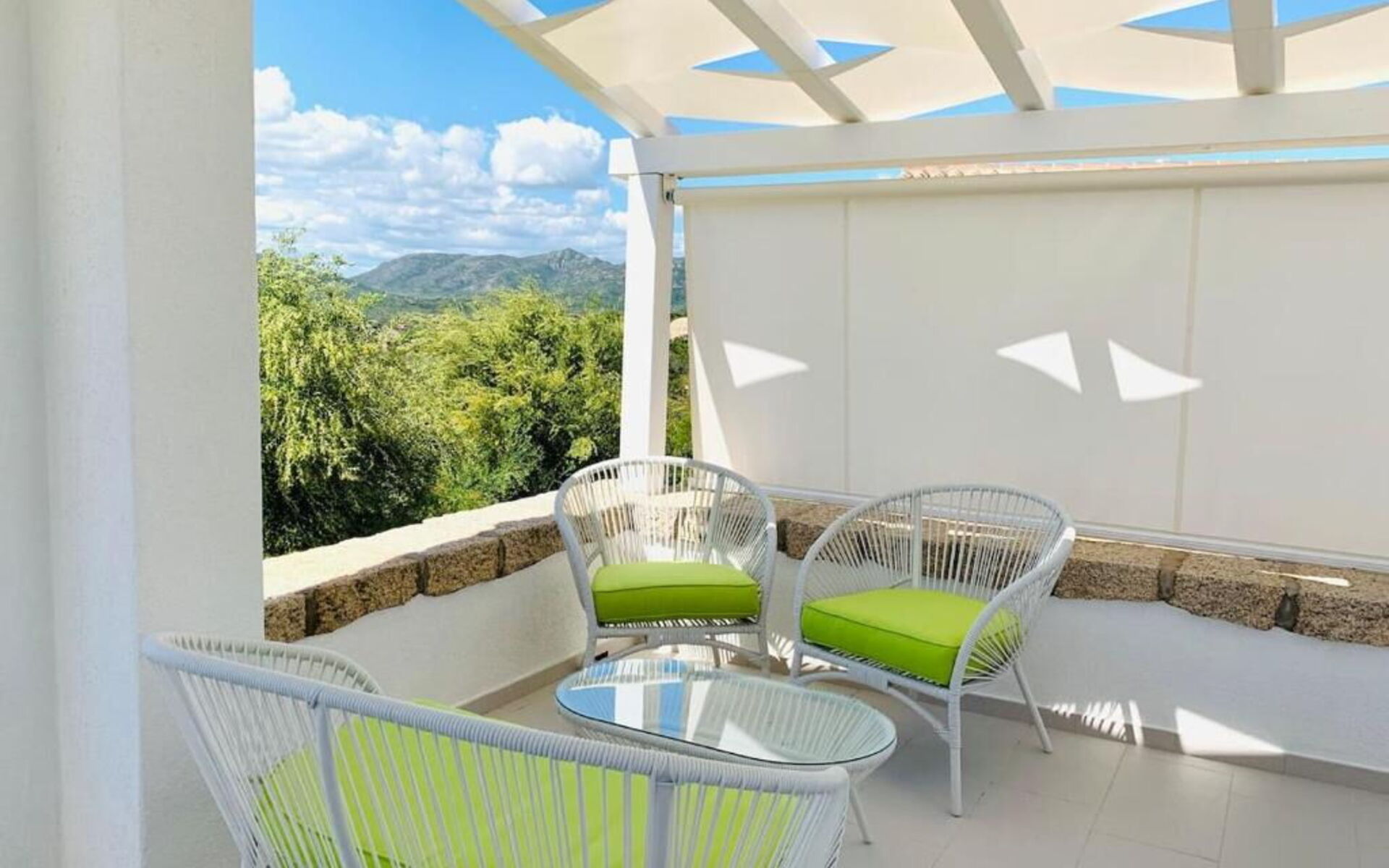 Mobilier raffiné et raffiné, également inspiré de la tradition de l'île, la maison vous permettra de passer d'agréables moments de détente jusque dans la grande véranda, où vous pourrez manger confortablement assis ou vous allonger sur les canapés pour un cocktail ou un apéritif. Particulièrement lumineux et accueillants sont les deux salons avec des canapés blancs et de grandes portes-fenêtres qui donnent le sentiment de pouvoir laisser entrer le soleil même à l'intérieur de cette résidence pleine de charme et d'élégance.