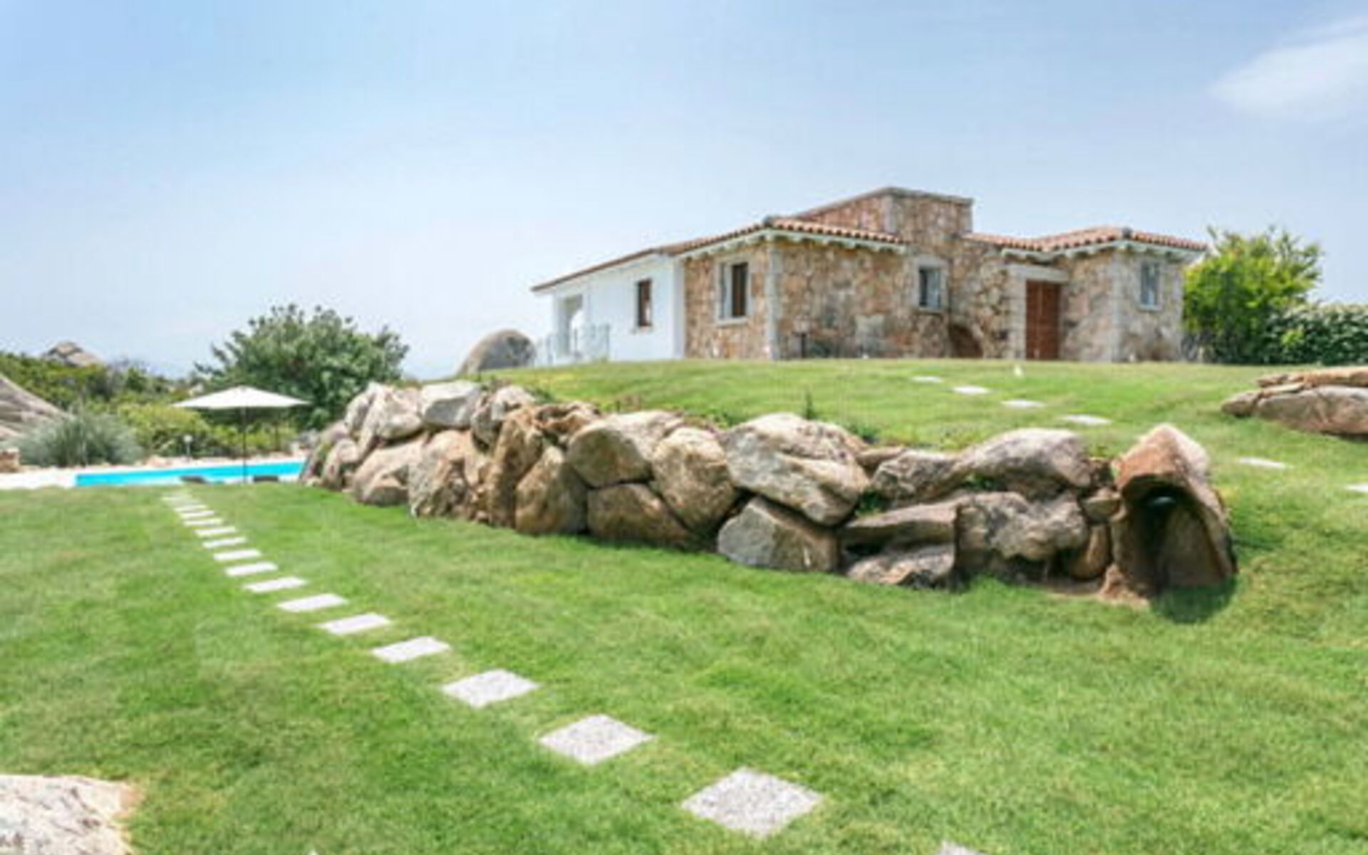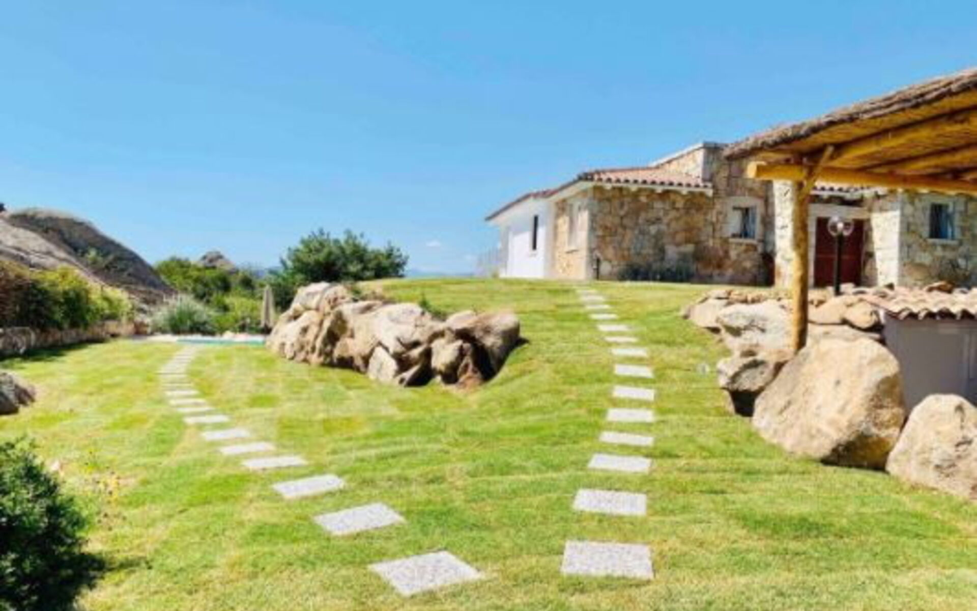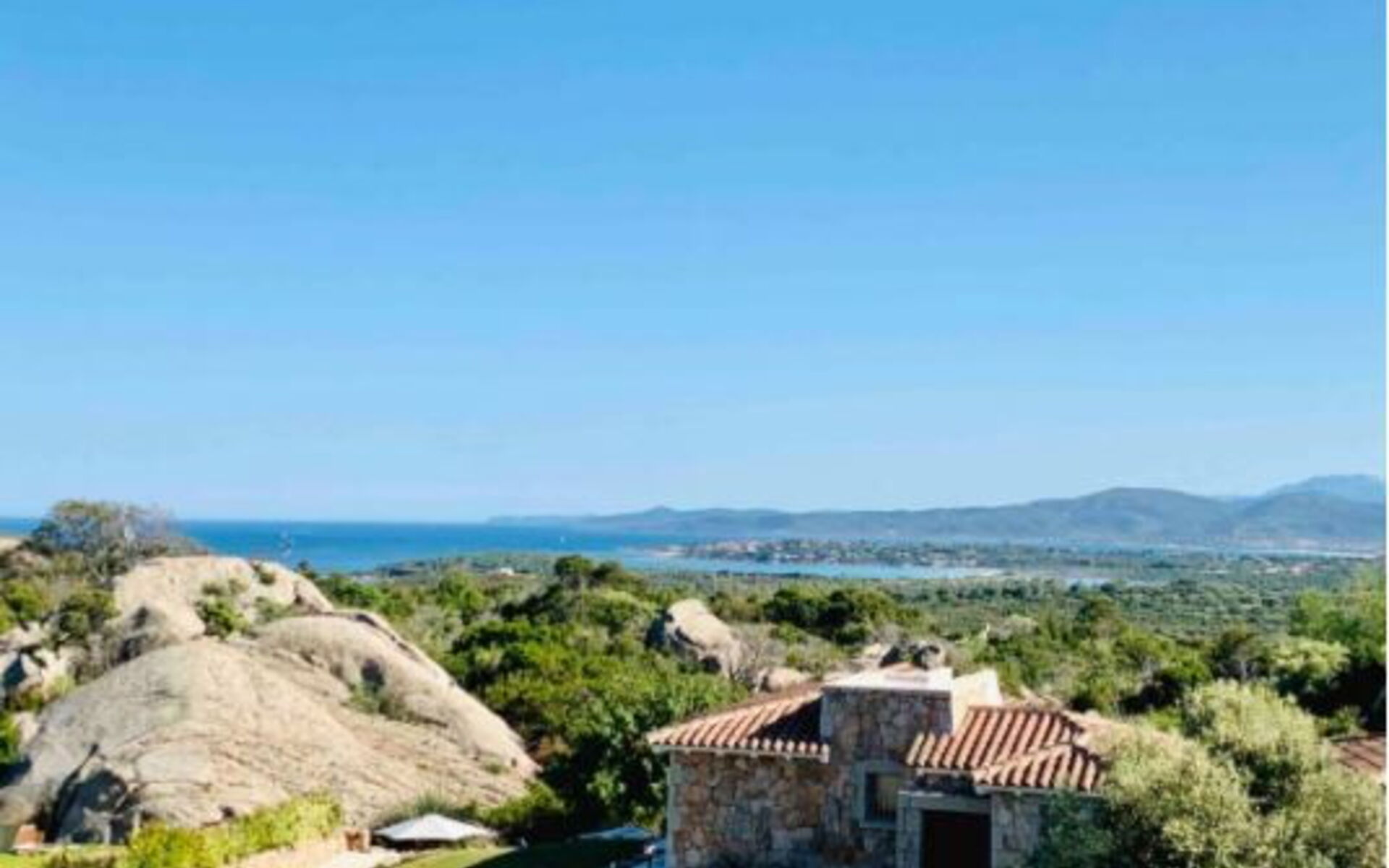 La maison surplombe l'une des plus belles mers d'Italie, dans un contexte de grand charme dû à la présence de beaucoup de verdure faite de maquis méditerranéen, d'oliviers et de myrtes mais aussi de rochers de granit monumentaux, des chemins parmi lesquels se perdre avec plaisir. Dehors, il y a aussi un solarium carrelé, équipé de chaises longues et de parasols, et d'un espace barbecue.