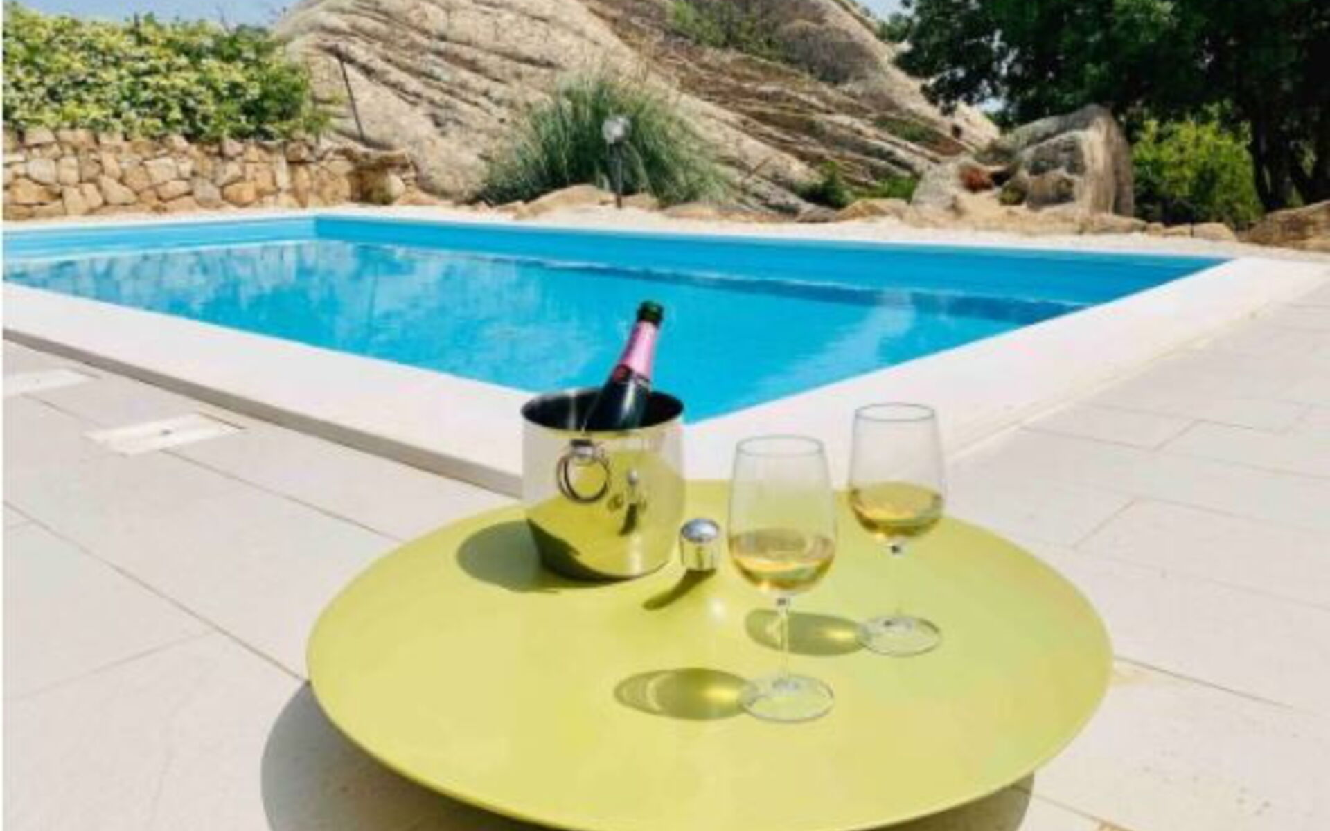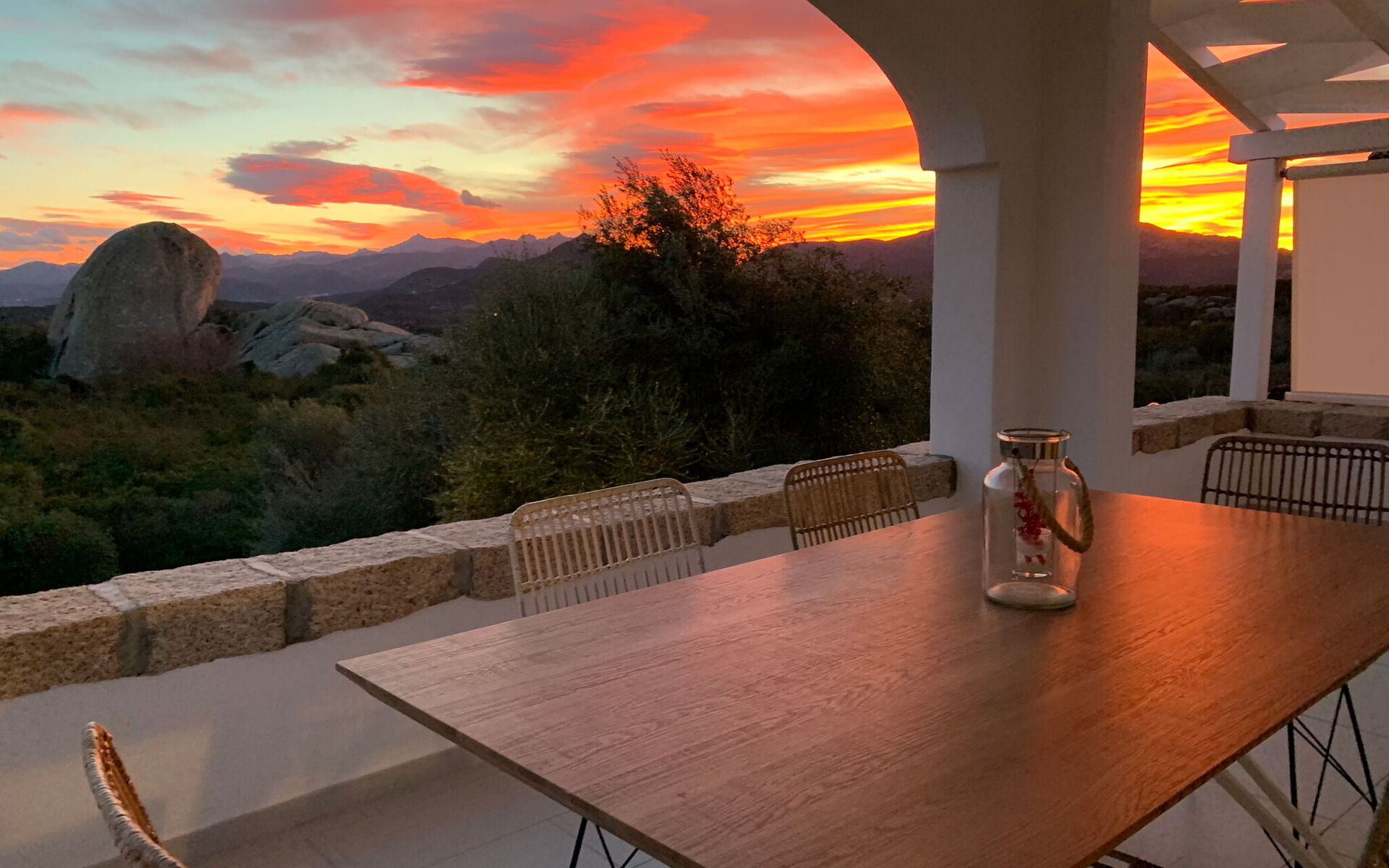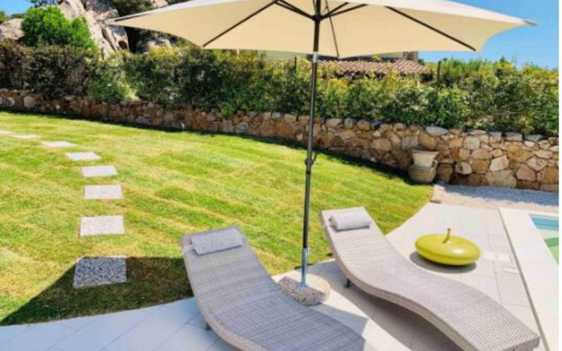 La maison surplombe l'une des plus belles mers d'Italie, dans un contexte de grand charme dû à la présence de beaucoup de verdure faite de maquis méditerranéen, d'oliviers et de myrtes mais aussi de rochers de granit monumentaux, des chemins parmi lesquels se perdre avec plaisir. Dehors, il y a aussi un solarium carrelé, équipé de chaises longues et de parasols, et d'un espace barbecue.