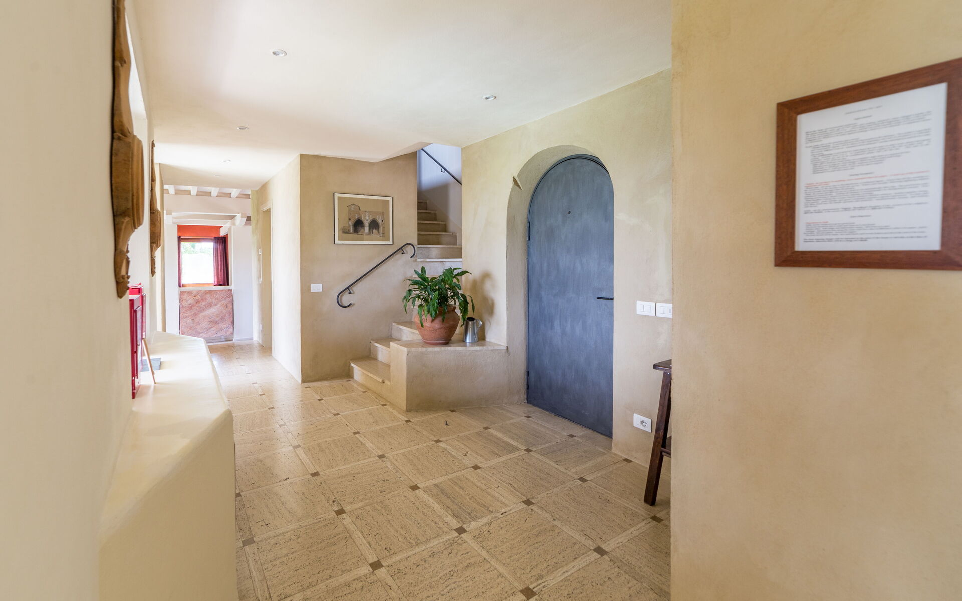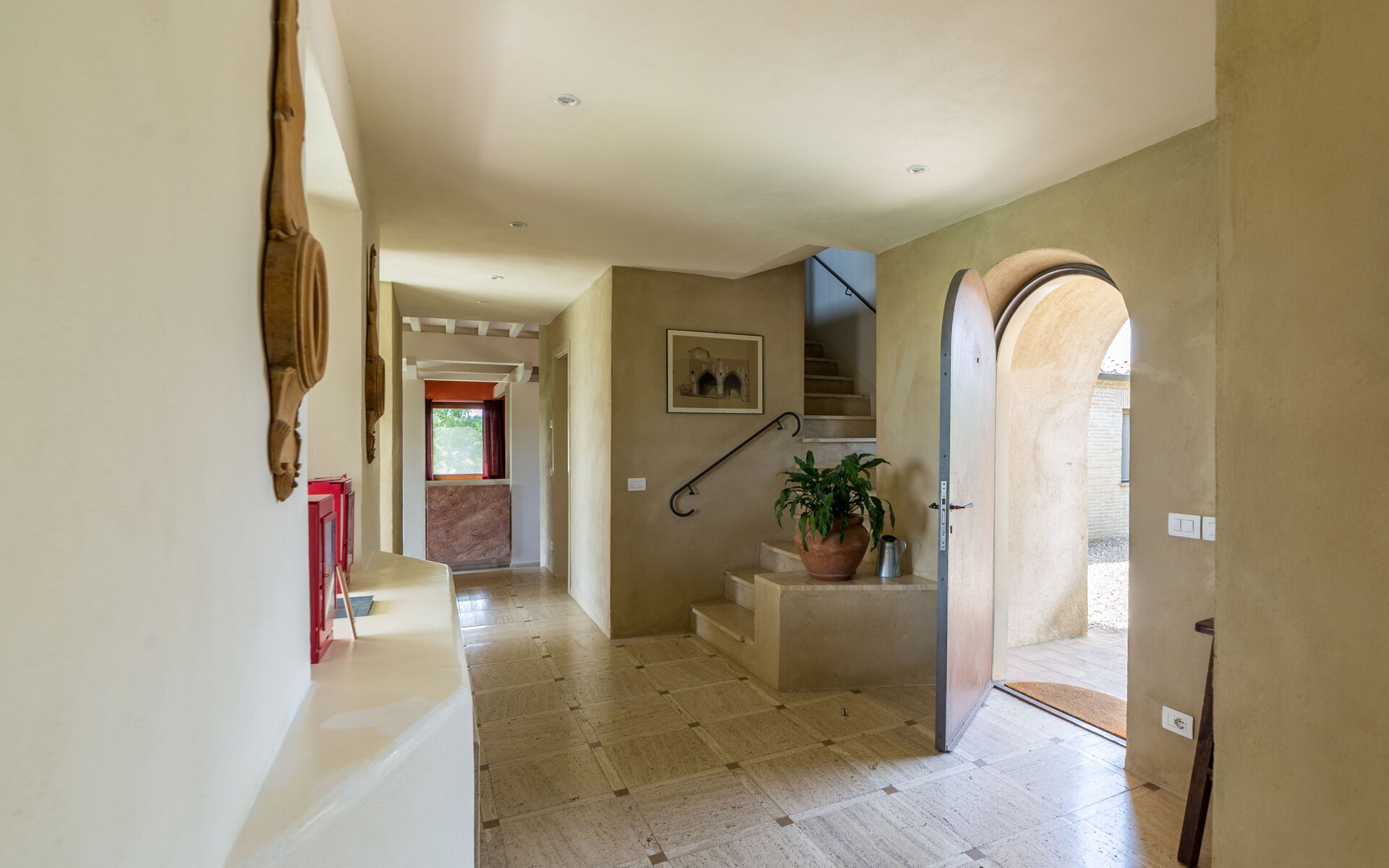 La structure se présentera devant vous, dans la grande cour d'entrée qui sert de parking, dans toute sa splendeur même si vous découvrirez toute sa beauté du côté opposé, où la façade s'ouvre sur trois loggias typiques surmontées d'un structure similaire également au premier étage.